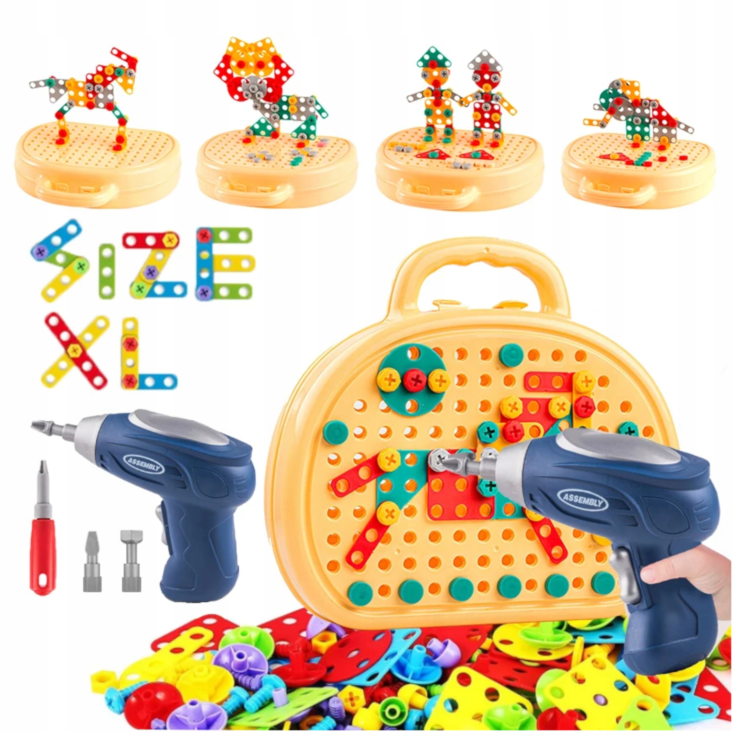 Klocki konstrukcyjne układanka śrubokręt wkrętarka zestaw miś