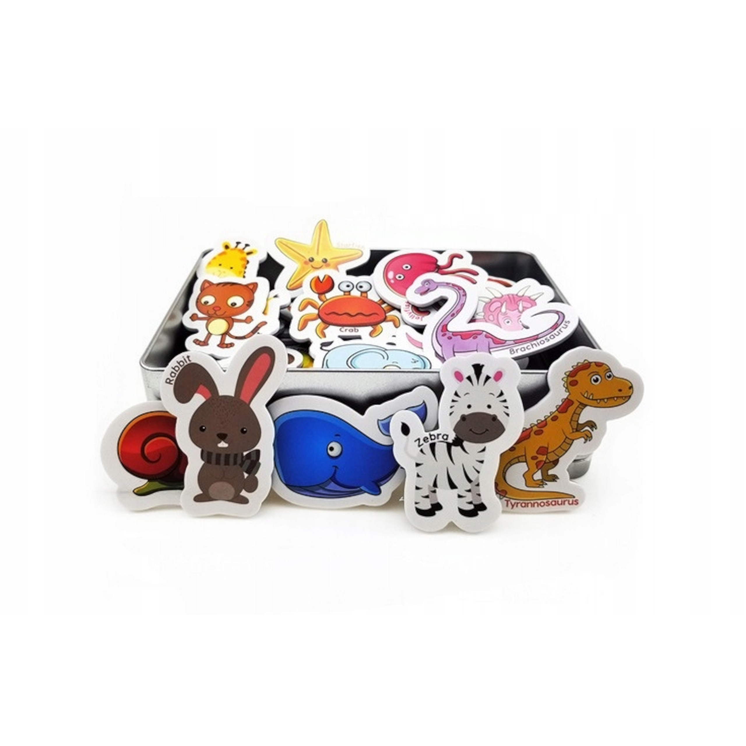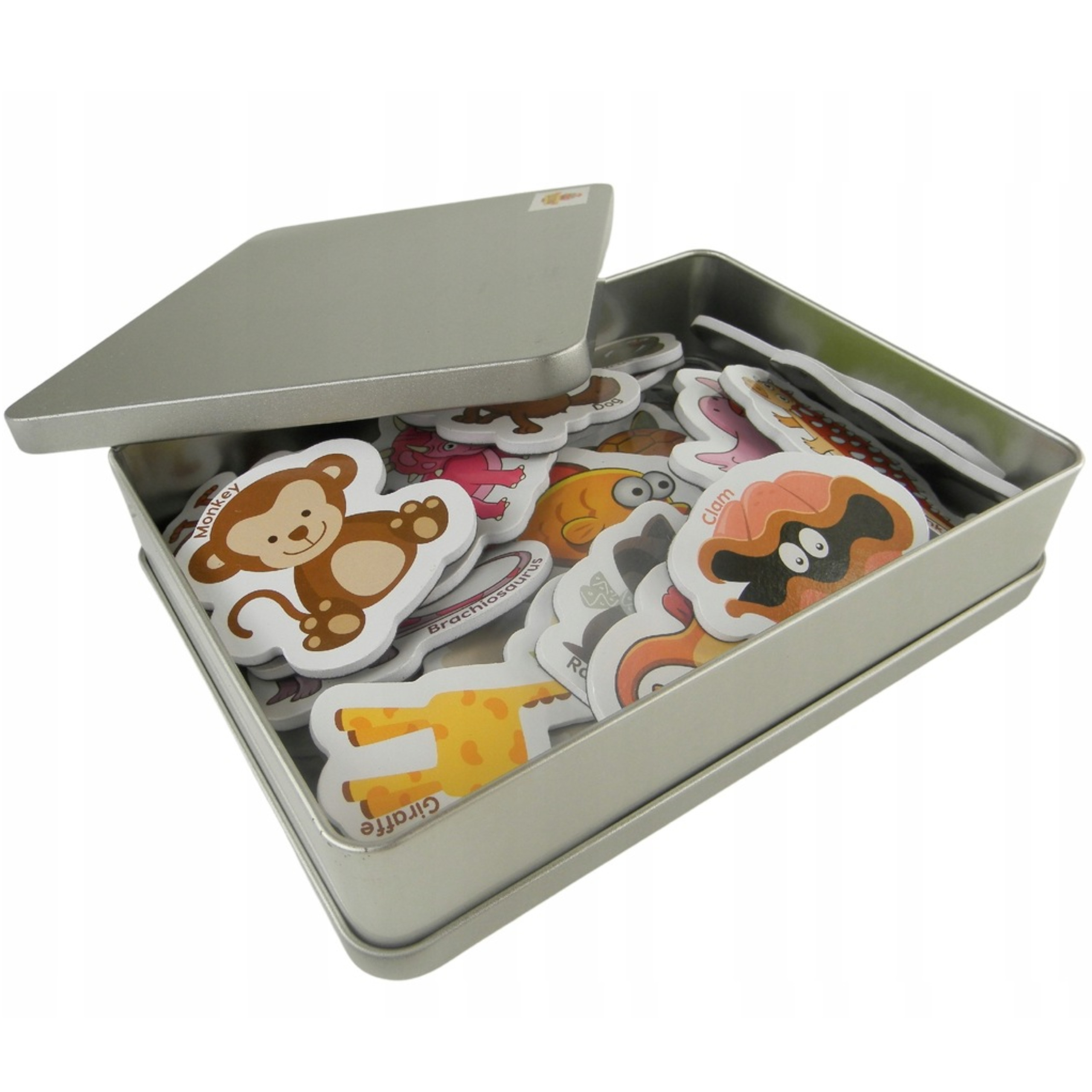 - Metalowe pudełko, puszka, organizer. Magnesy zwierzątka zapakowane są w metalową, zamykaną puszkę. Głównie służy ona do przechowywania akcesoriów jako organizer, ale może również służyć do przyczepiania magnesów. Taka forma opakowania pozwala na zabranie zabawki wszędzie ze sobą, nawet w podróż, do samochodu, samolotu lub pociągu i zajmie Twoje dziecko na długi czas.