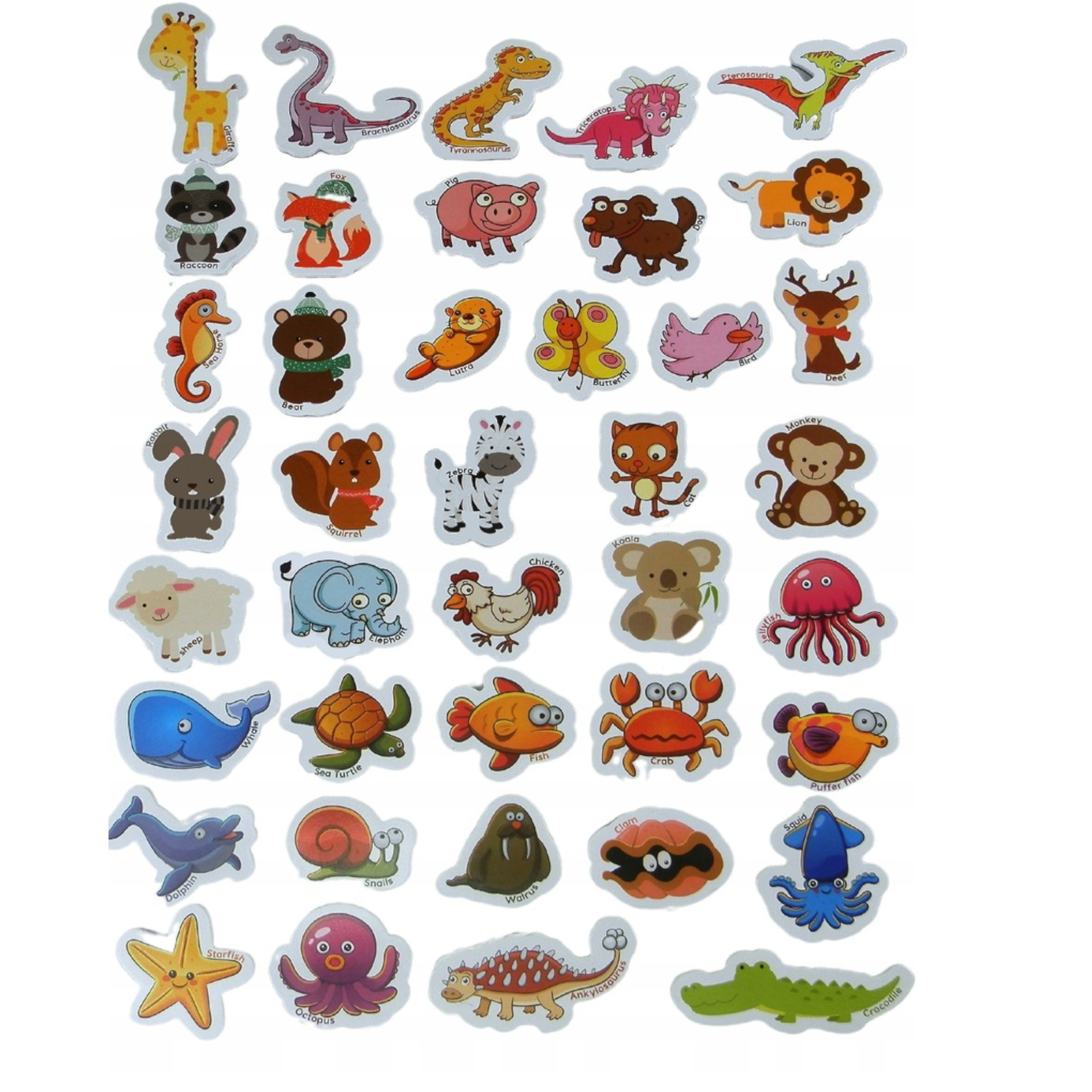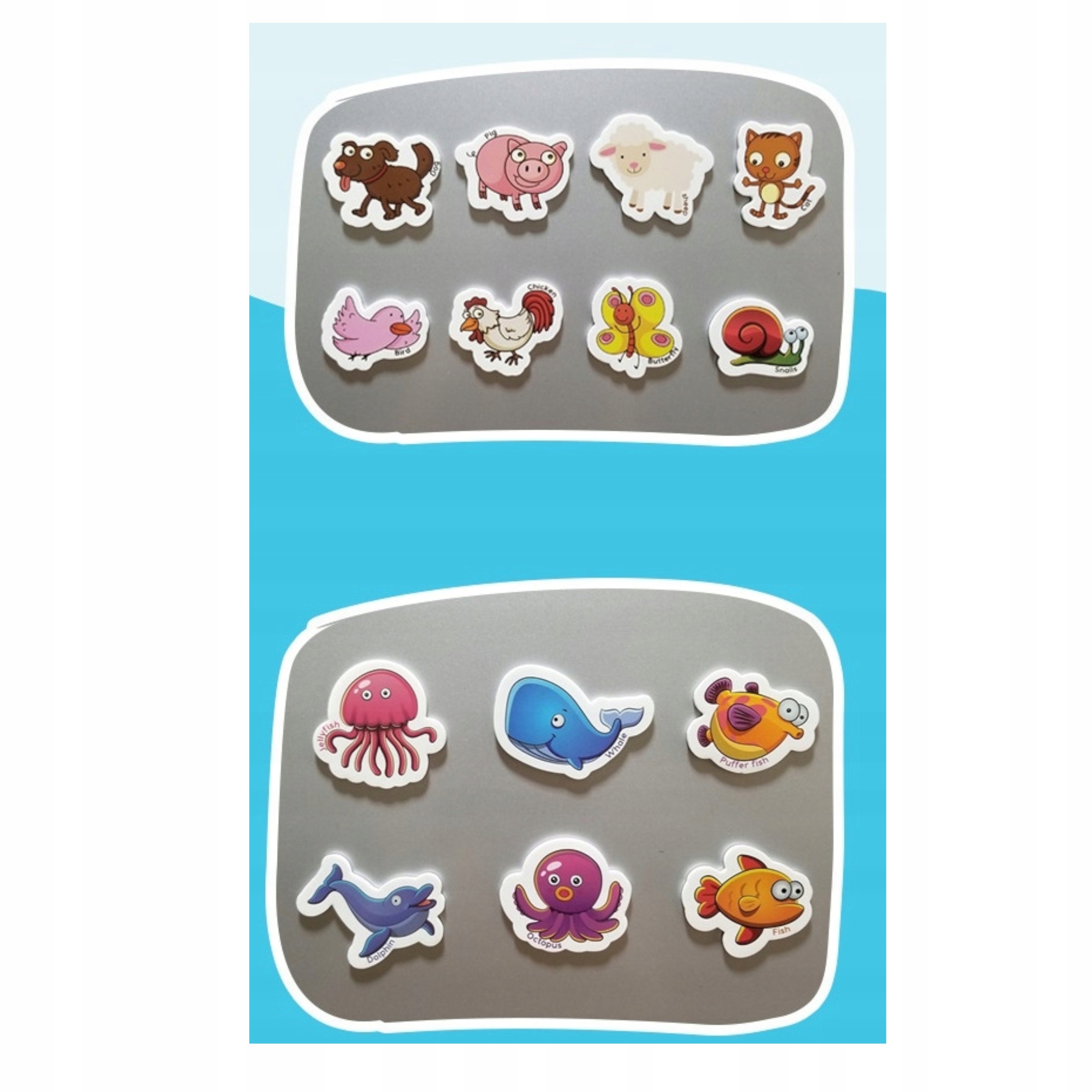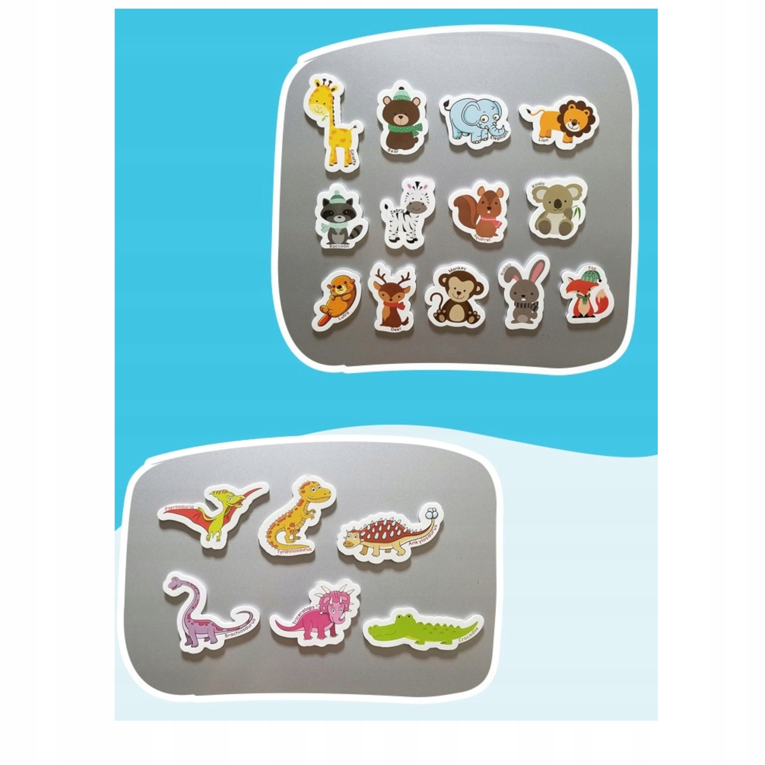 - Uczy języka angielskiego. Każdy magnes ze zwierzątkiem podpisany jest angielską nazwą tego zwierzątka. Świetny sposób na naukę angielskiego poprzez zabawę.