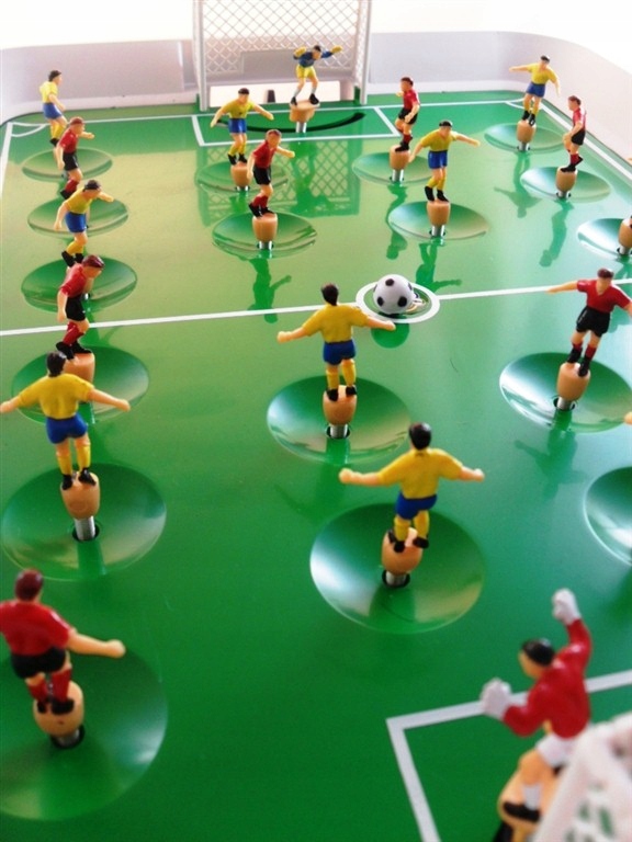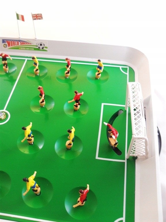 Prezentowany model jest dużym zestawem — składa się z boiska i dwóch pełnych drużyn, liczących po jedenastu zawodników w każdej. Figurka bramkarza jest aktywna, dlatego dla urozmaicenia zabawy można nim poruszać, by sprytnie bronił bramki. Zapraszając do zabawy kilka osób, można zaaranżować prawdziwy turniej piłkarski czy Mistrzostwa Świata.
