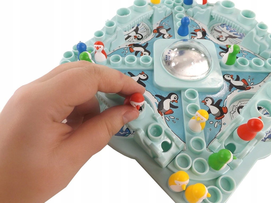 Przeżyj emocjonującą przygodę na Antarktydzie z grą Pingwinki na lodzie! Wyścig pingwinków to emocjonująca gra rozwijająca zdolności manualne, logiczne rozumowanie oraz stwarzająca warunki do niezwykłej towarzyskiej zabawy, która pochłonie całą rodzinę.