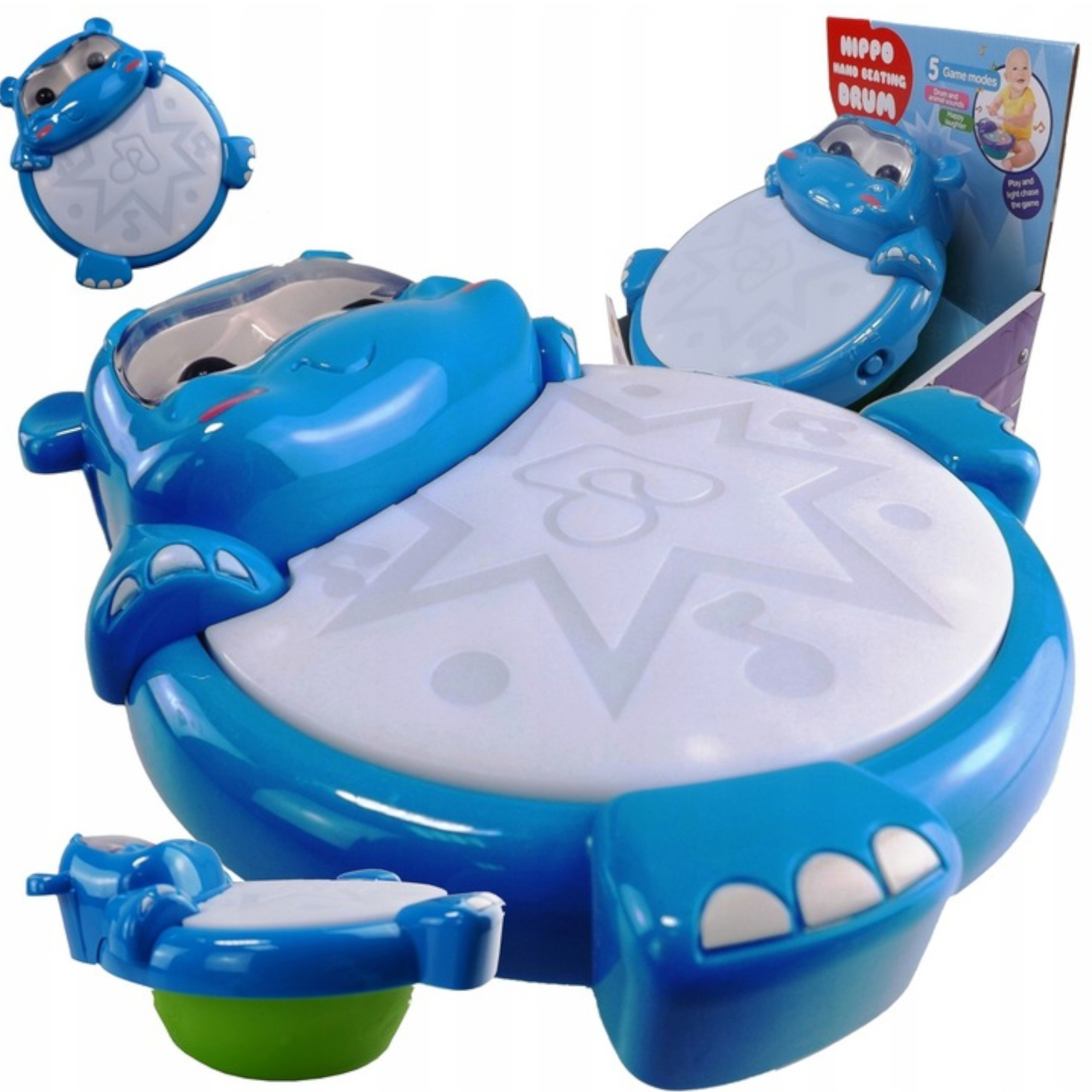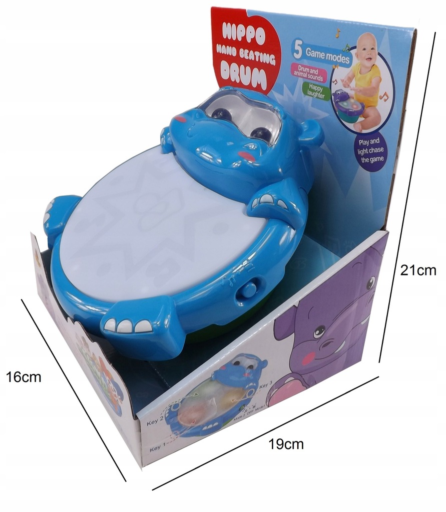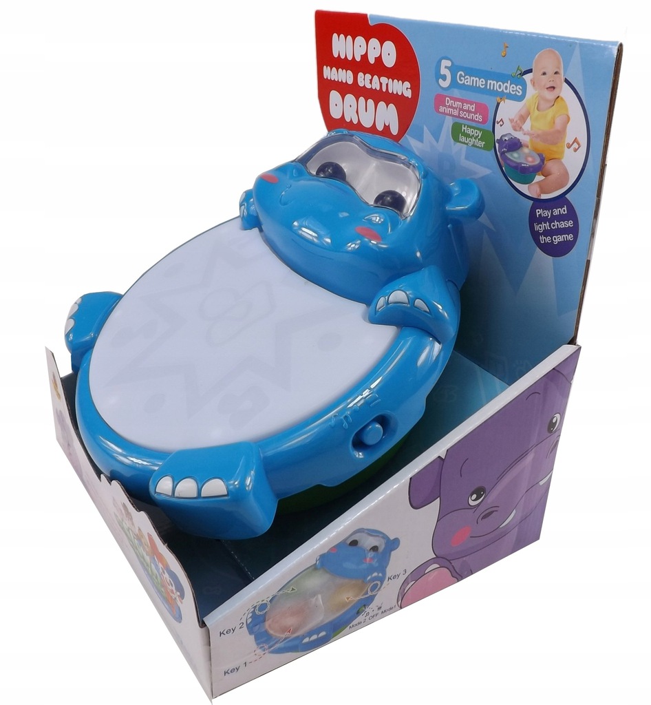 Zabawka interaktywna bębenek hipopotam dźwięk światła