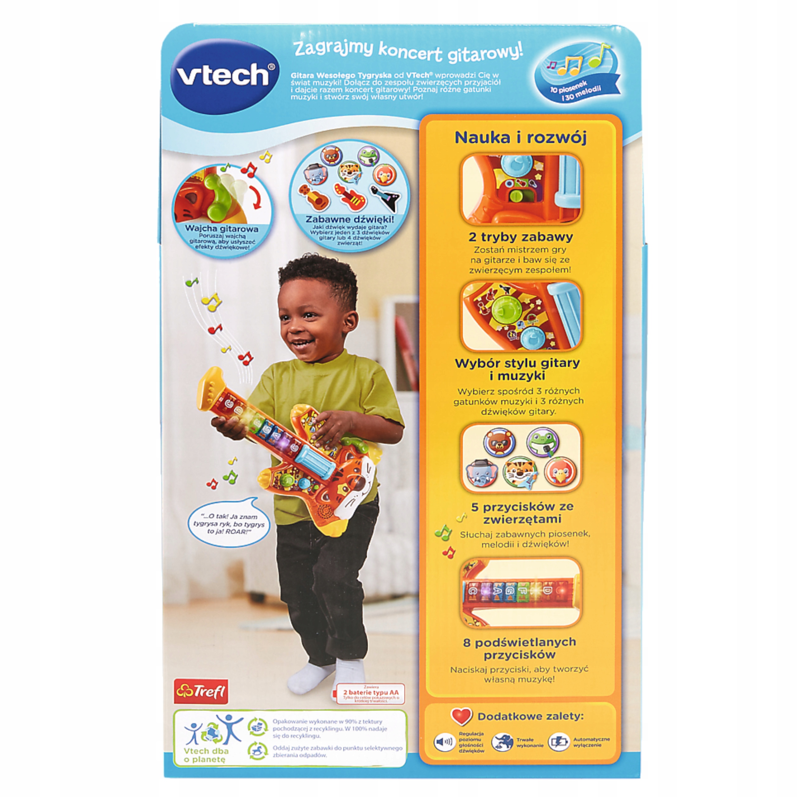 Gitara Wesołego Tygryska interaktywna melodie piosenki Vtech Trefl