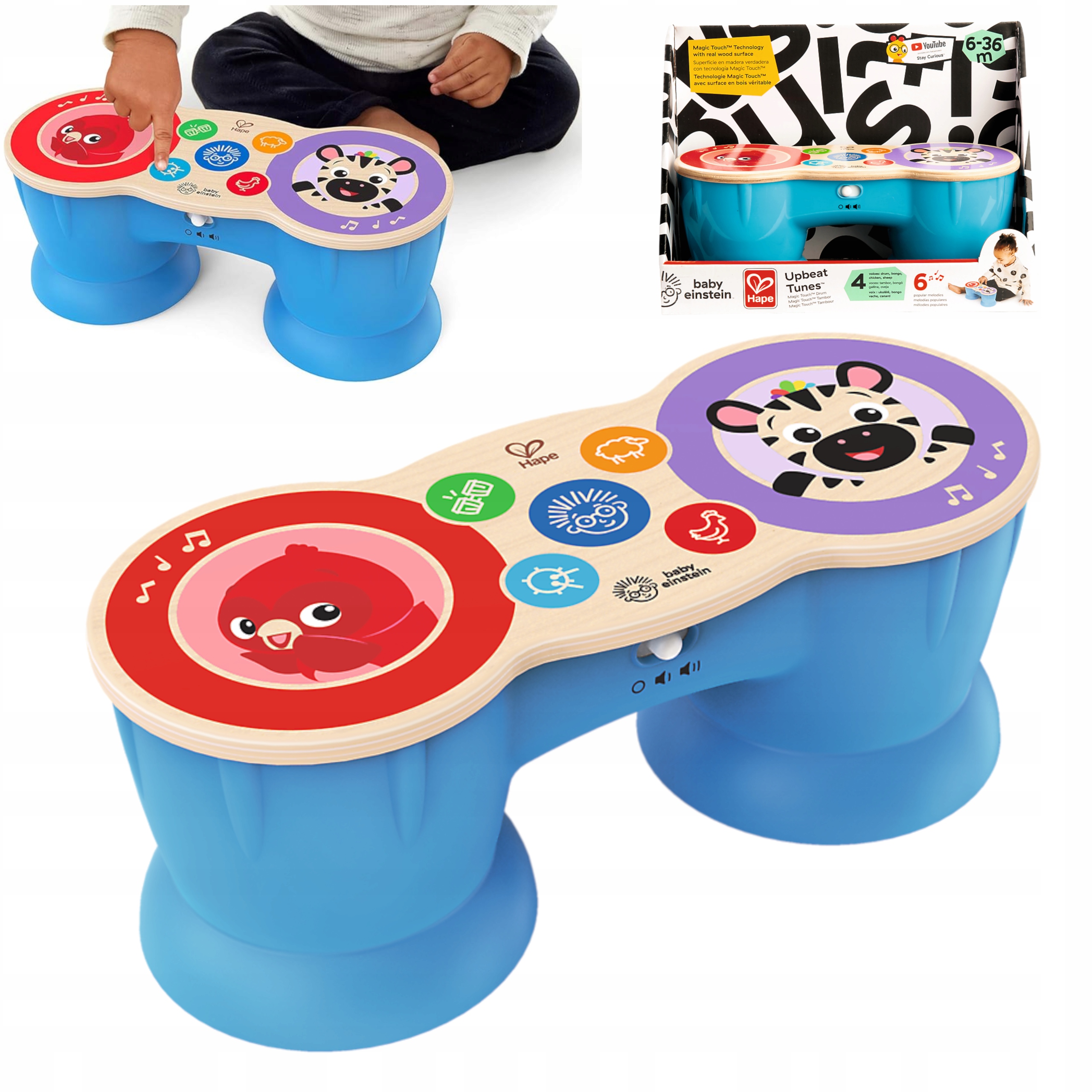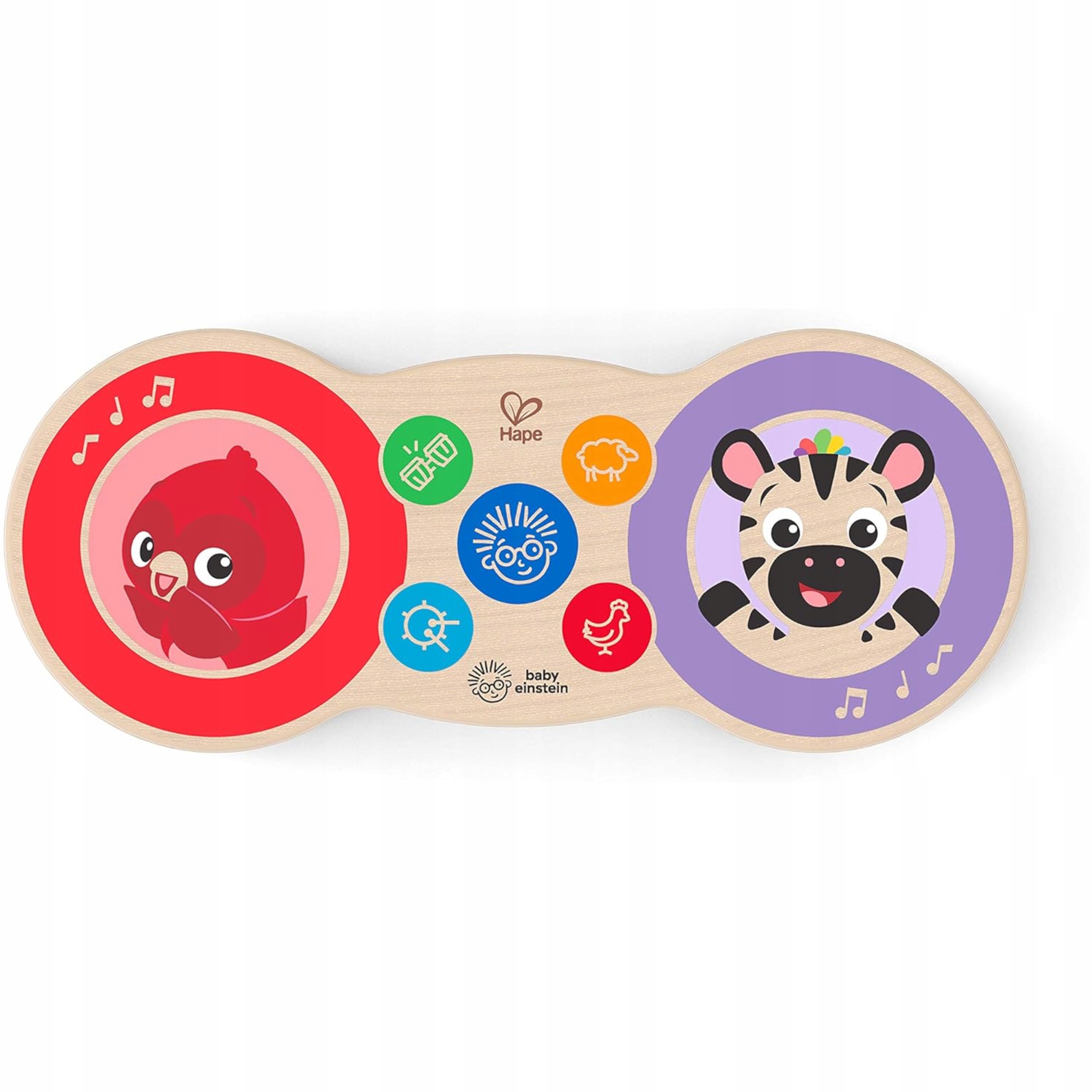 Magiczne dotykowe bębenki HAPE to drewniana zabawka wysokiej jakości która łączy naturalne drewno z dotykowymi przyciskami.