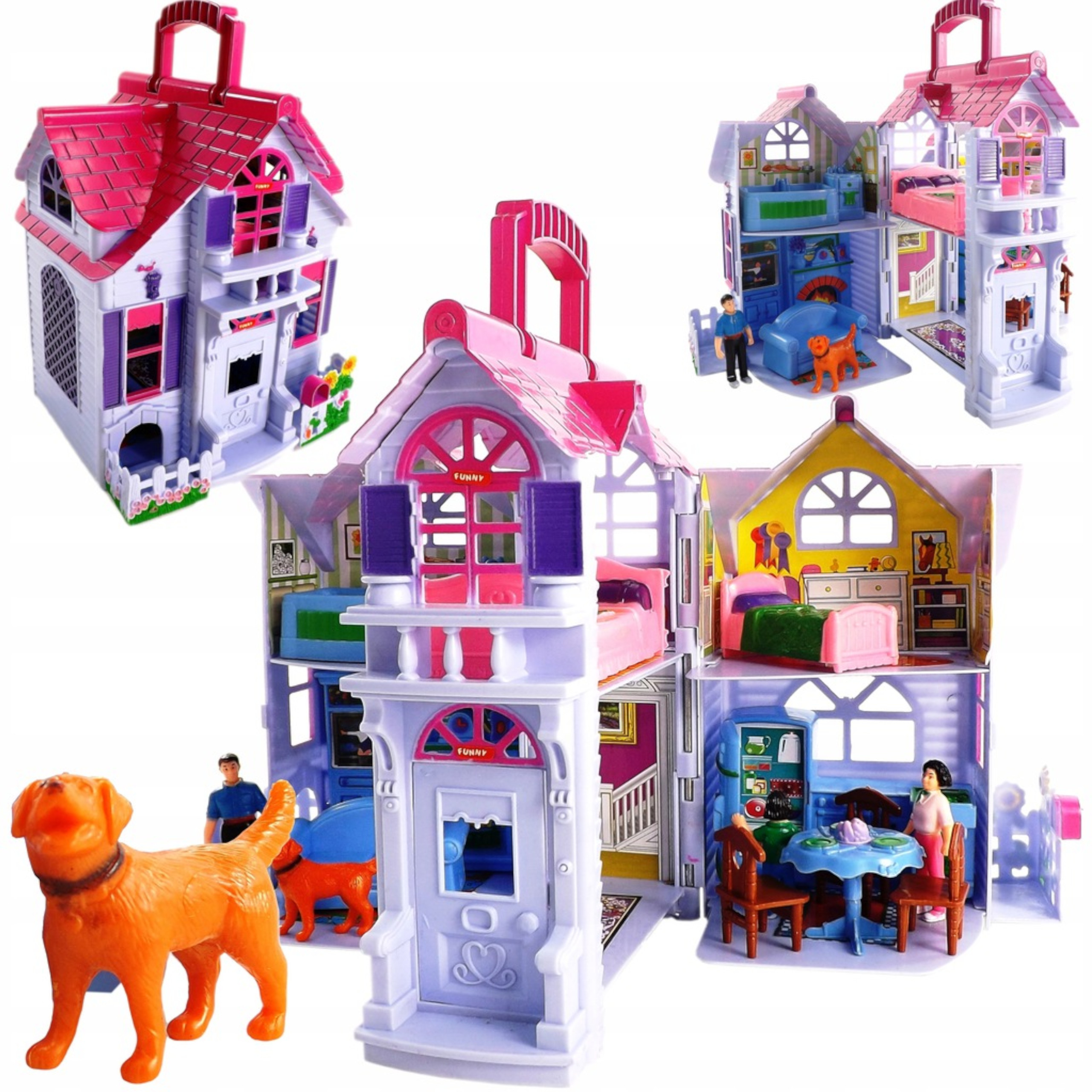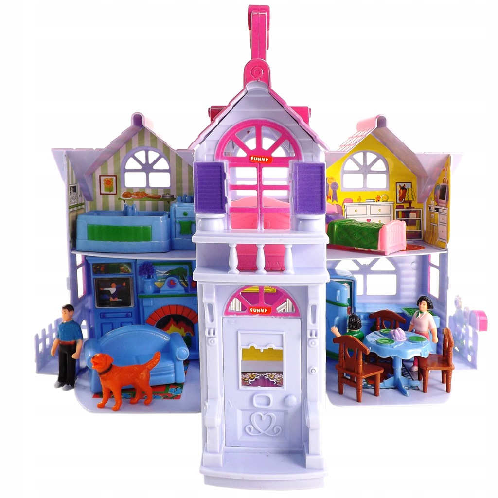 Domek dla lalek 3 Lalki pies rozkładany F611