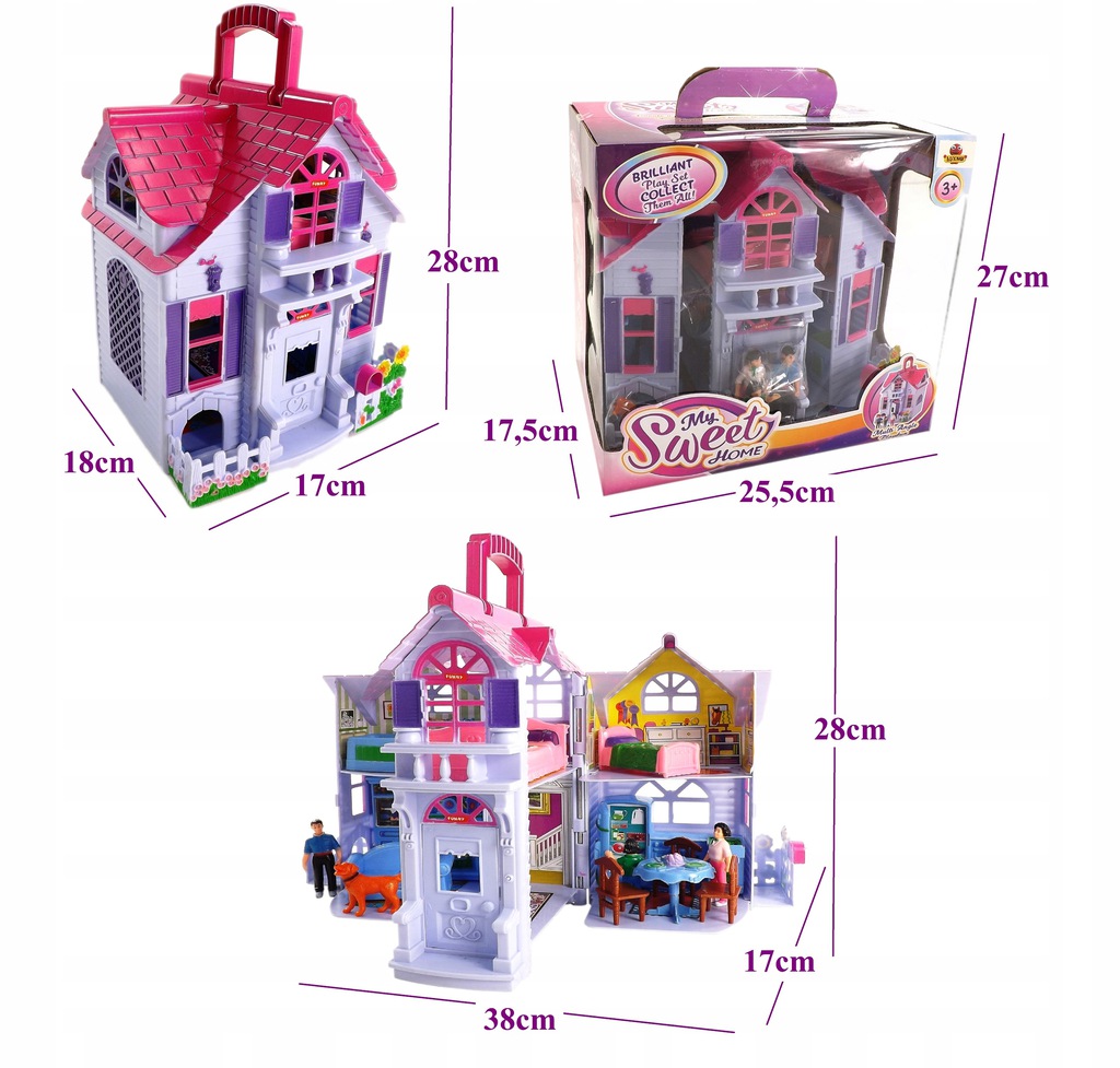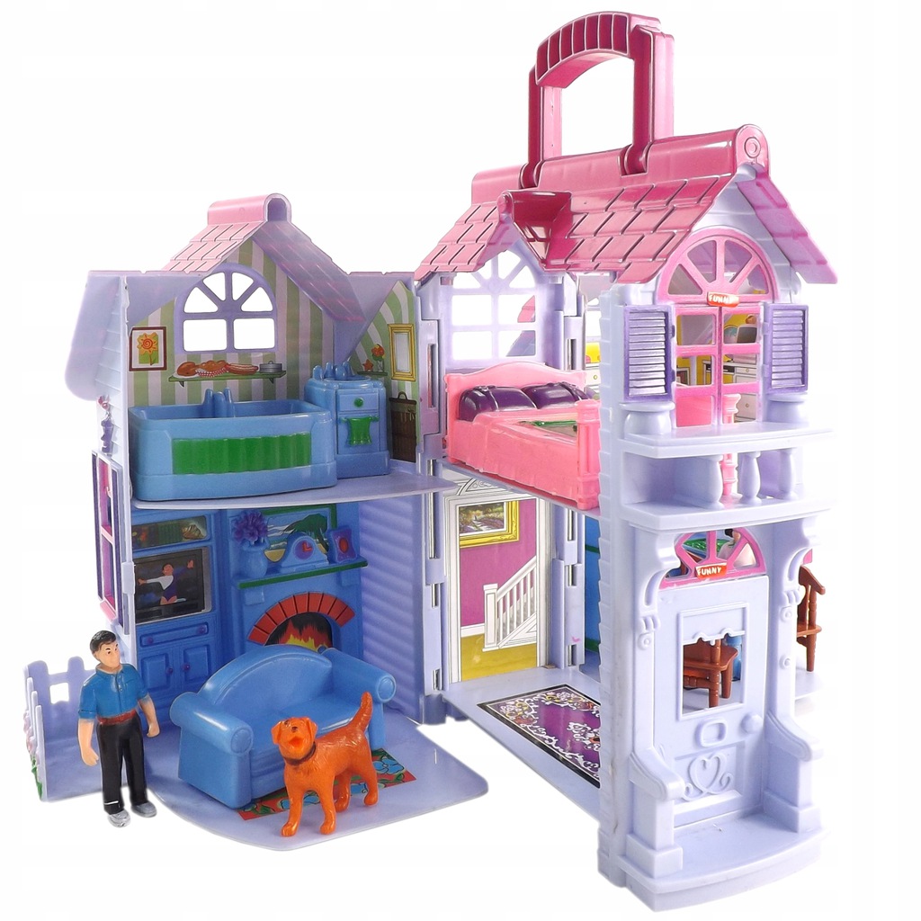 DOMEK DLA LALEK 3 LALKI PIES ROZKŁADANY NA DWIE STRONY