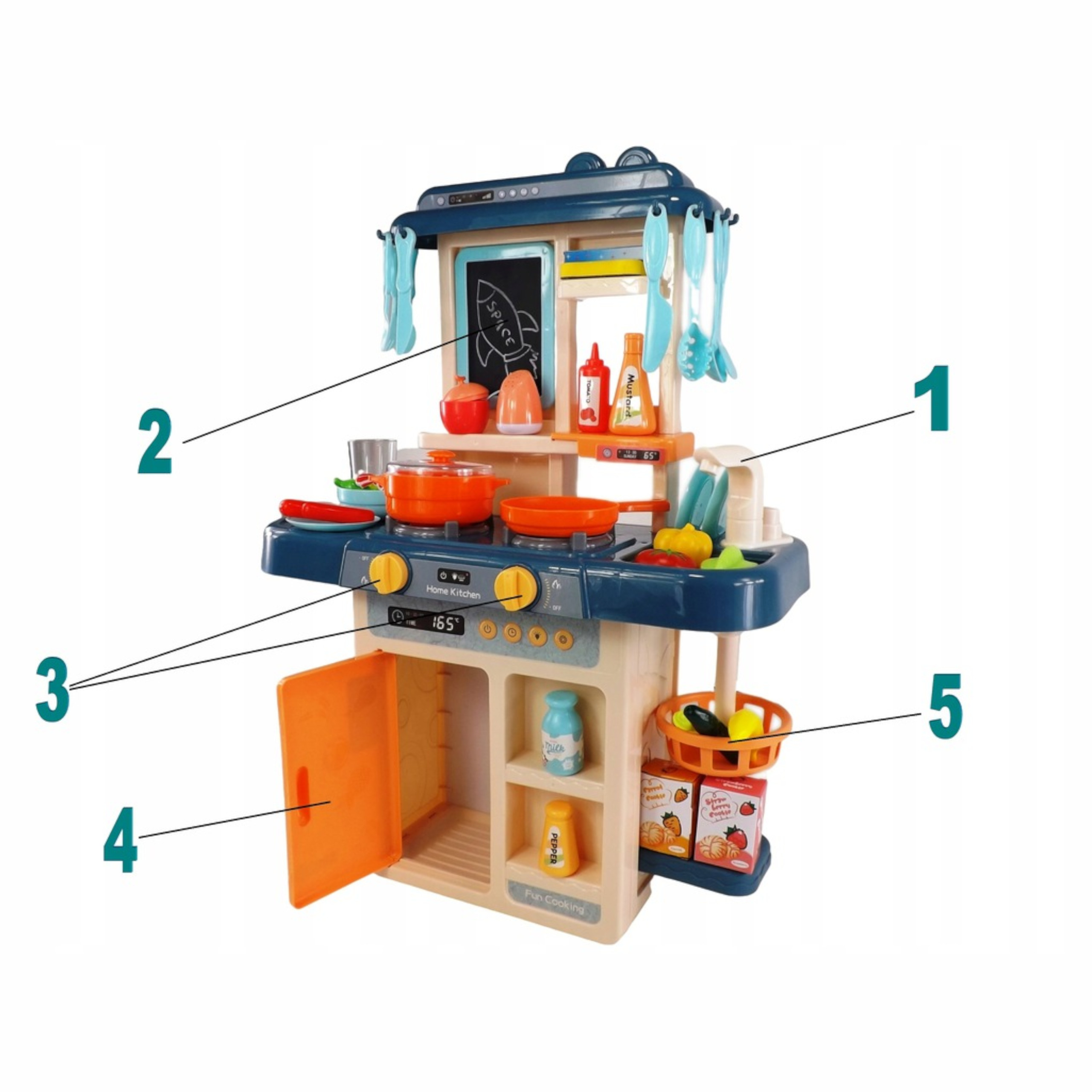 Przedstawiana przez nas kuchenka rozwija fantazje dziecka sprawiając mu przy tym dużo zabawy. Twoje dziecko może poczuć się jak prawdziwy szef kuchni, gotując lubiane przez siebie potrawy.
