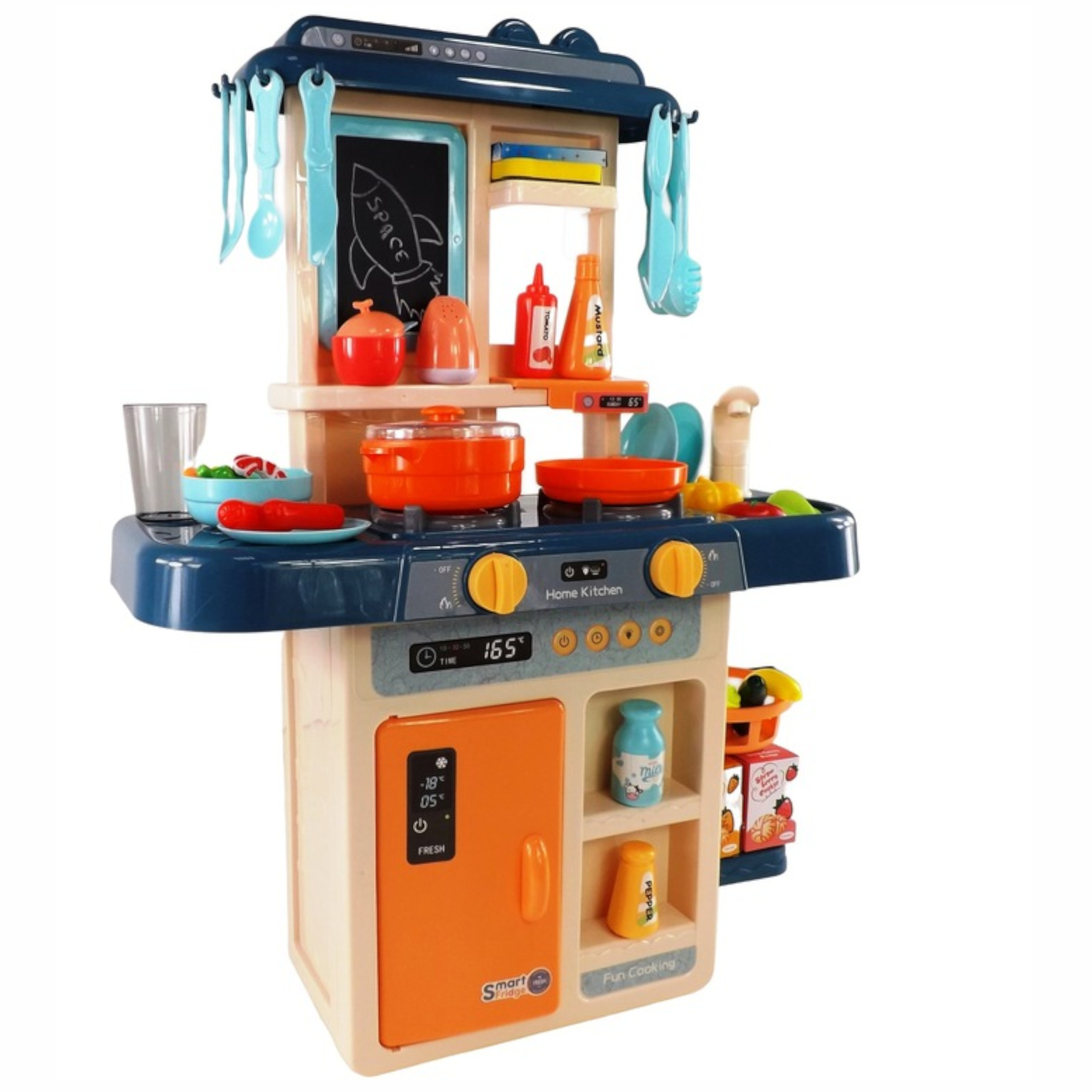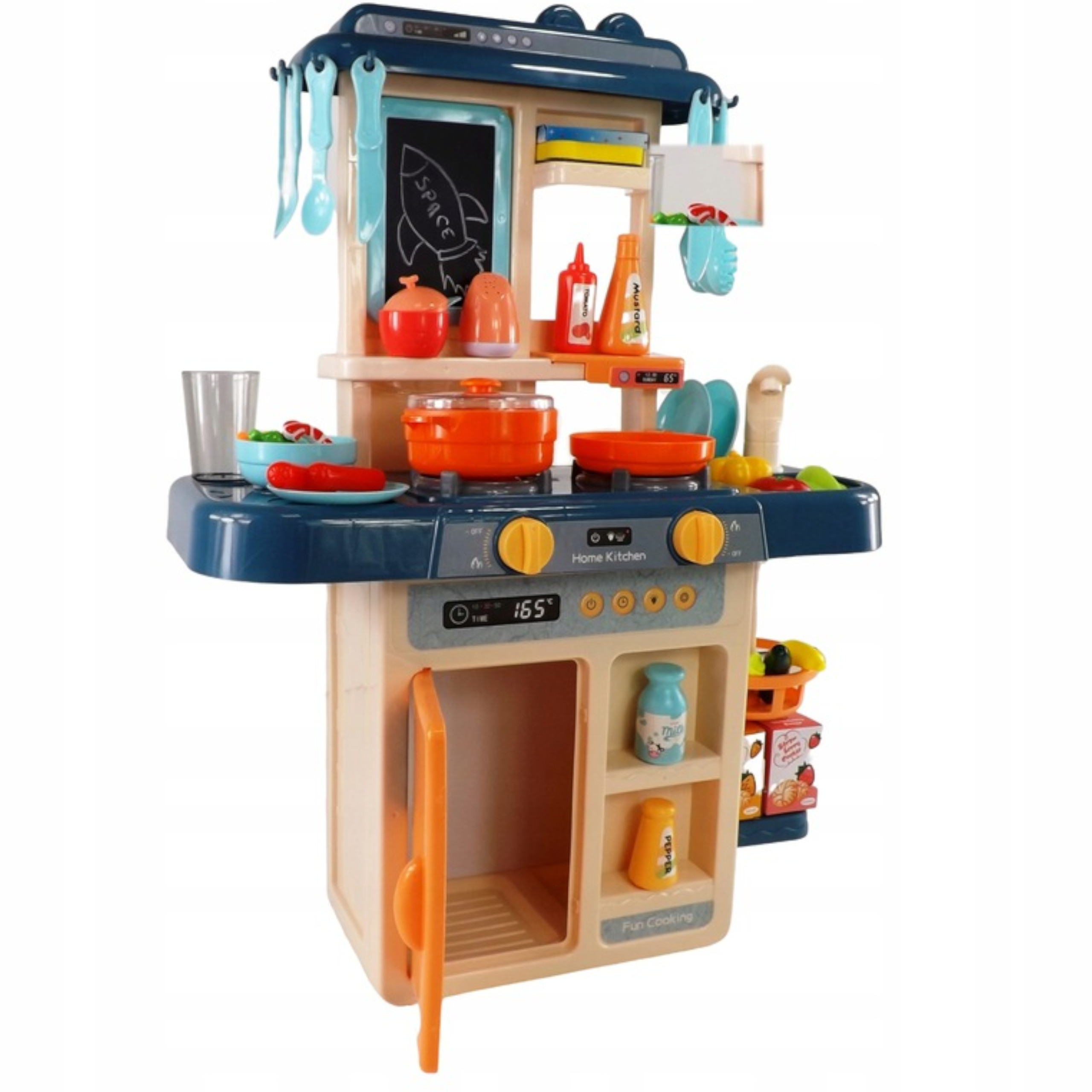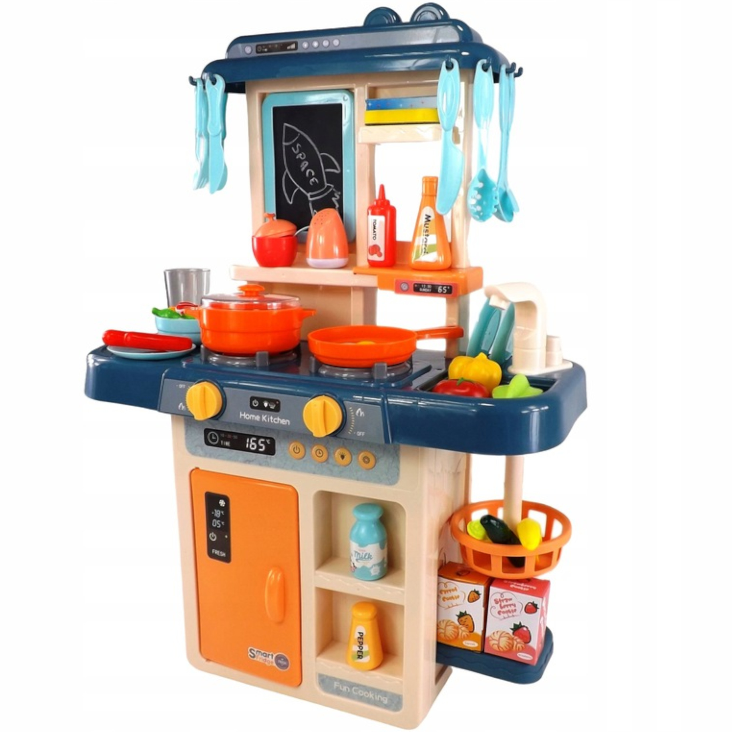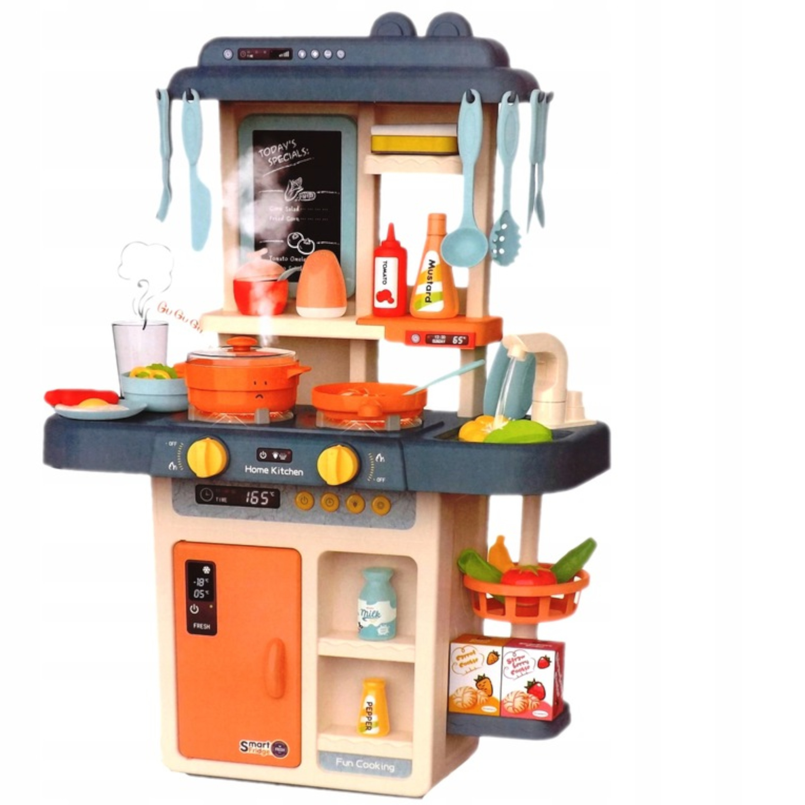 W zestawie znajdziesz mnóstwo elementów, które nie tylko uradują malucha, ale także rozwiną jego zdolności manualne. Nasza kuchnia to nieodłączny element wyposażenia każdego młodego kucharza.