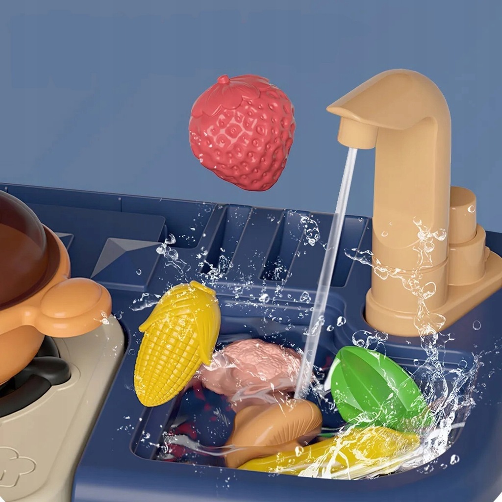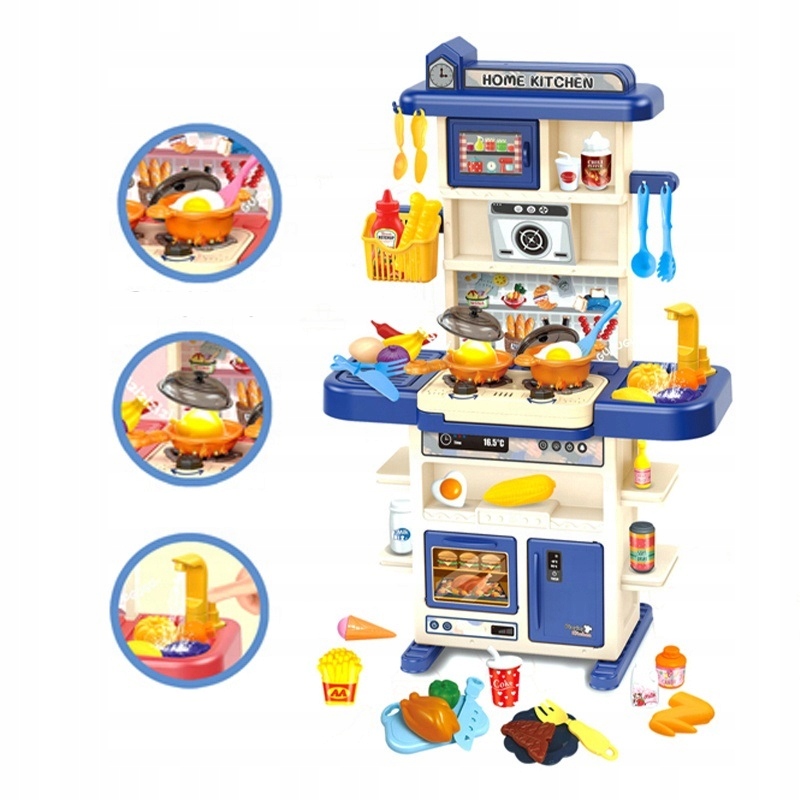 Kuchnia dla dzieci palniki para kran z wodą lodówka artykuły domowe gotowanie
