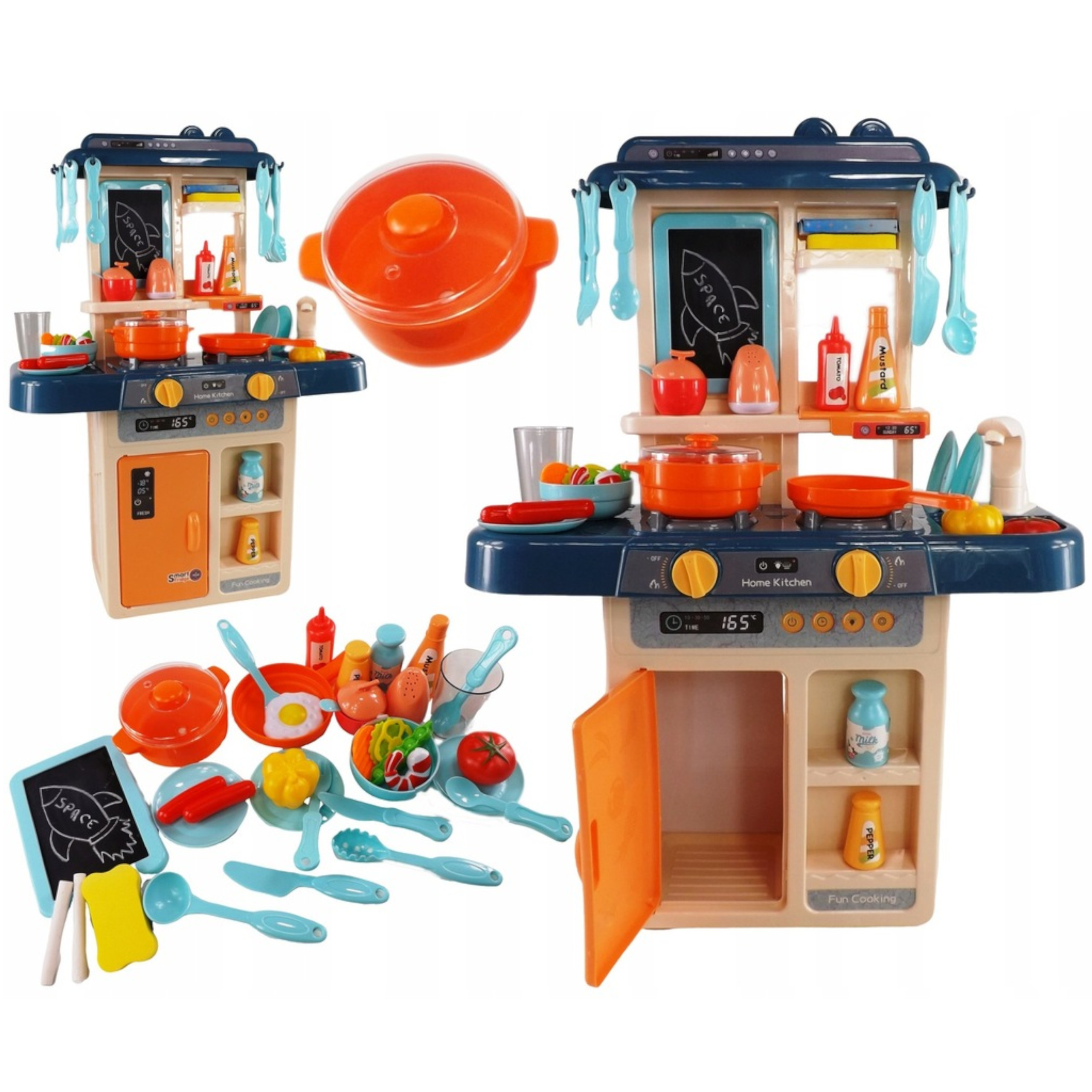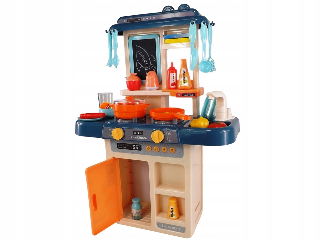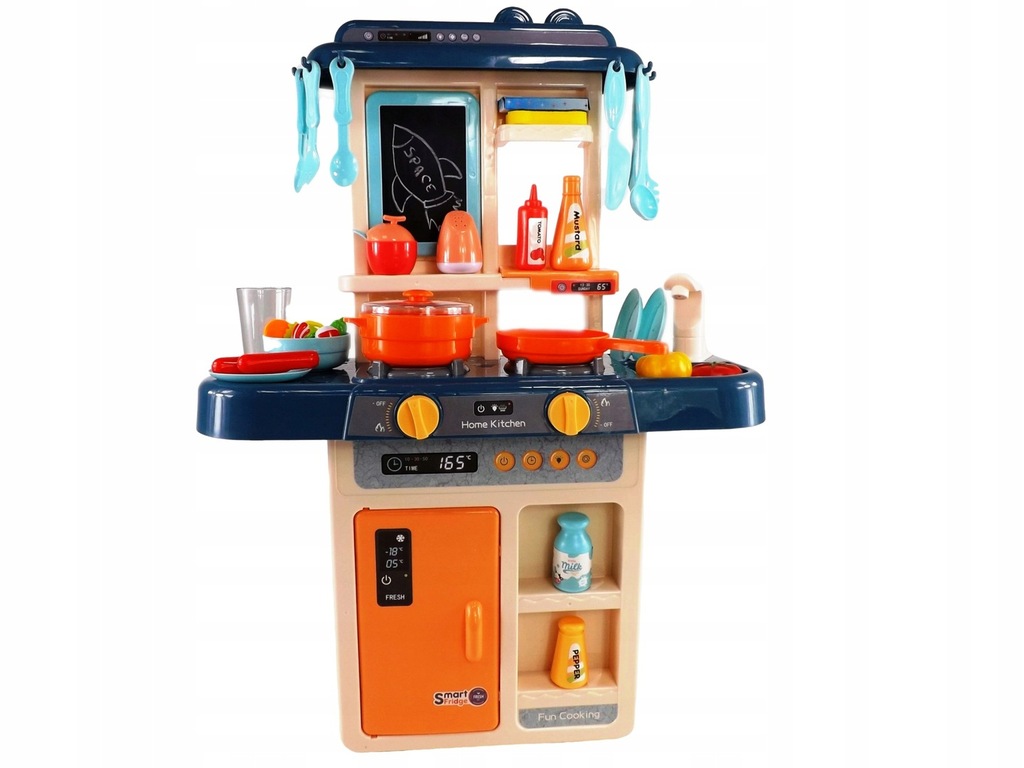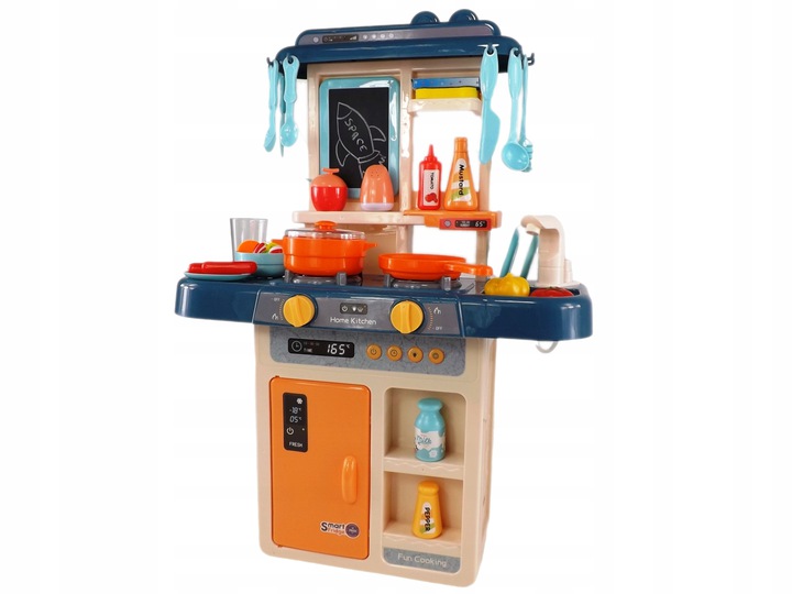 Kuchnia dla dzieci palniki para kran z wodą lodówka artykuły domowe gotowanie niebiesko pomarańczowa 36 elementów