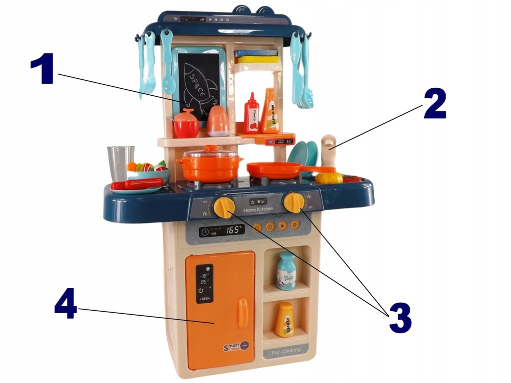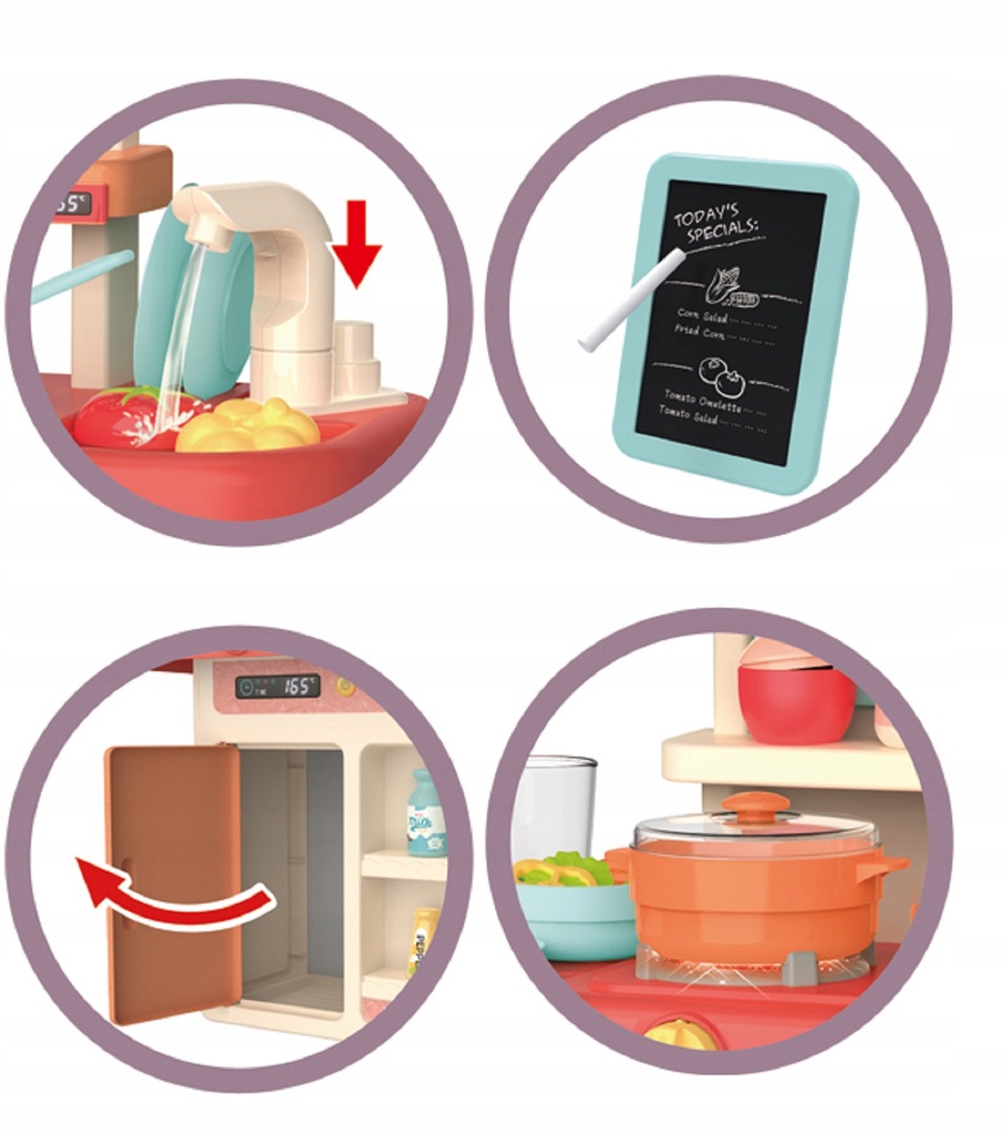 Przedstawiana przez nas kuchenka rozwija fantazje dziecka sprawiając mu przy tym dużo zabawy. Twoje dziecko może poczuć się jak prawdziwy szef kuchni, gotując lubiane przez siebie potrawy.