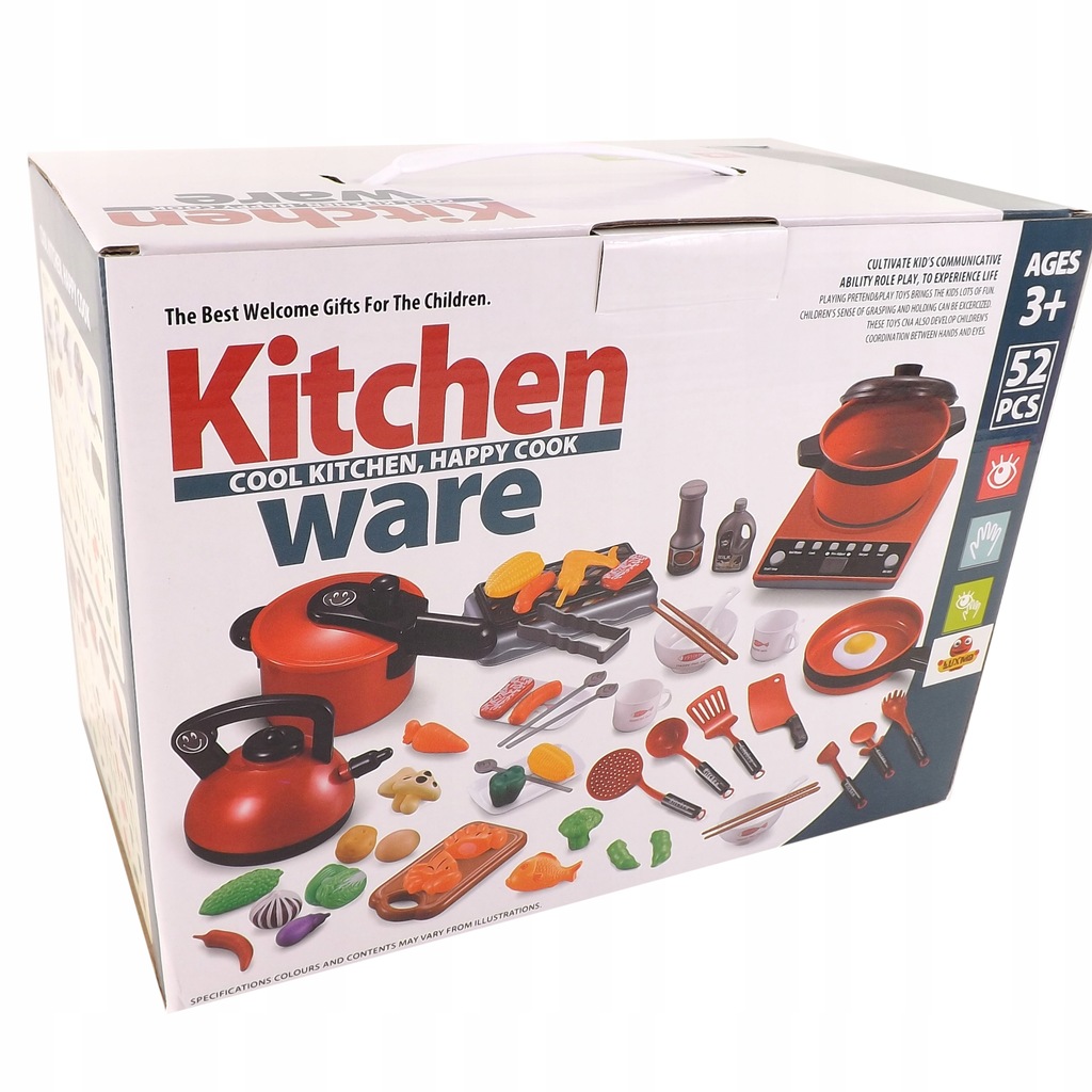 Świetna jakość, rzeczywiste odwzorowanie oraz kolory najpopularniejszych zestawów kuchennych przeniosą Twoje dziecko w świat gotowania ! Dzięki temu dziecko będzie utożsamiało się z rodzicami, ponieważ jego zestaw wygląda jak prawdziwe garnki i akcesoria kuchenne ! J