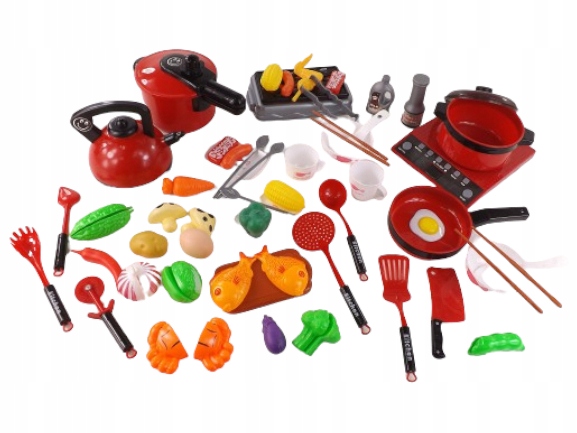 BARDZO DUŻE AKCESORIA KUCHENNE ZESTAW GARNKI CZAJNIK KUCHENKA KUCHNIA 52 ELEMENTY