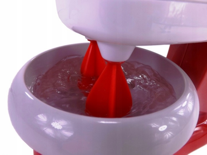 Mikser pracuje jak prawdziwy, ma obrotowe mieszadełka.