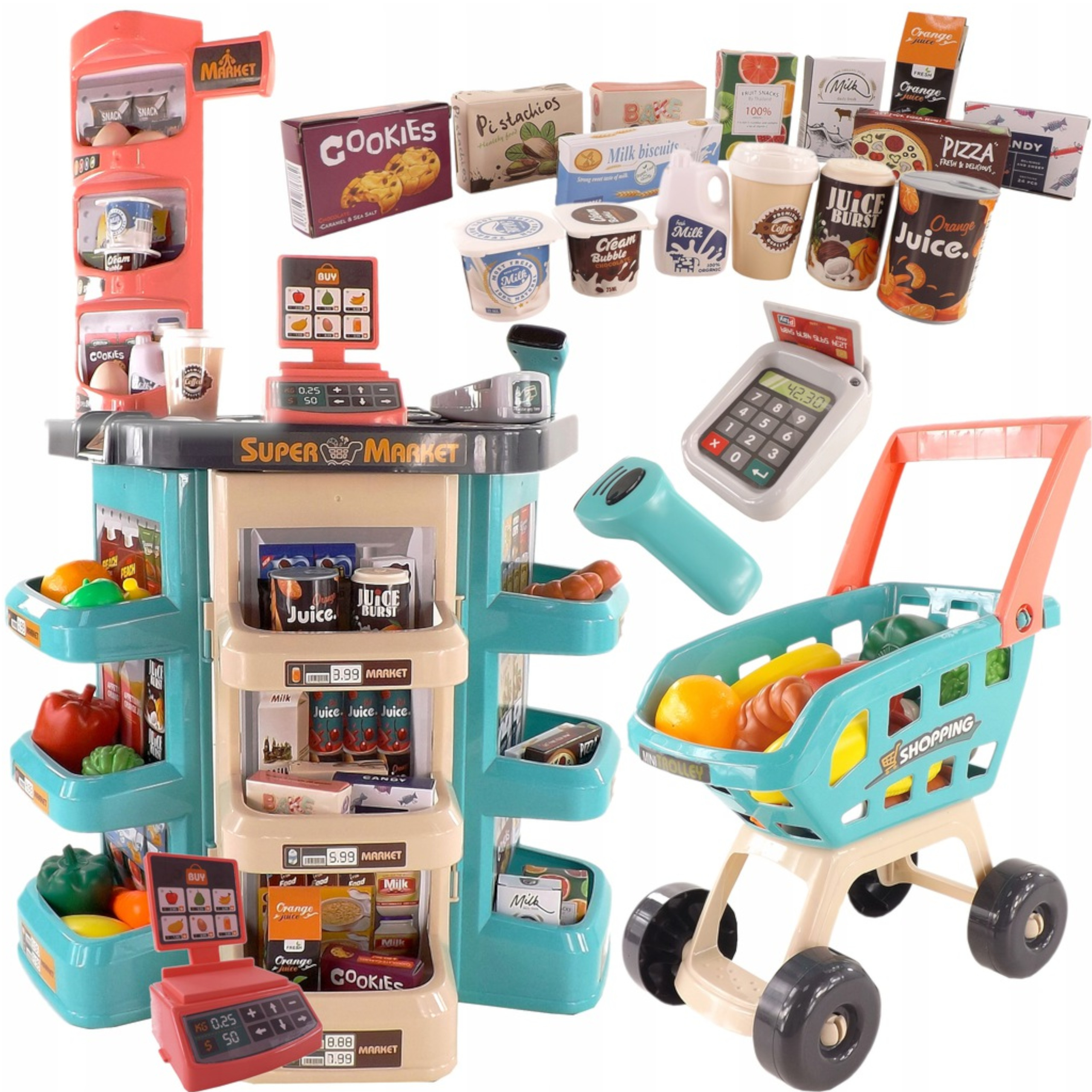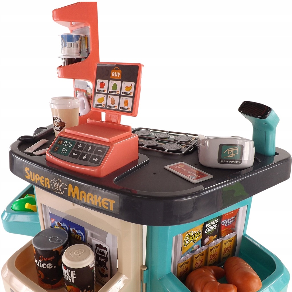 Supermarket wózek na zakupy kasa waga czytnik produkty spożywcze owoce warzywa zabawka dla dzieci 668-76