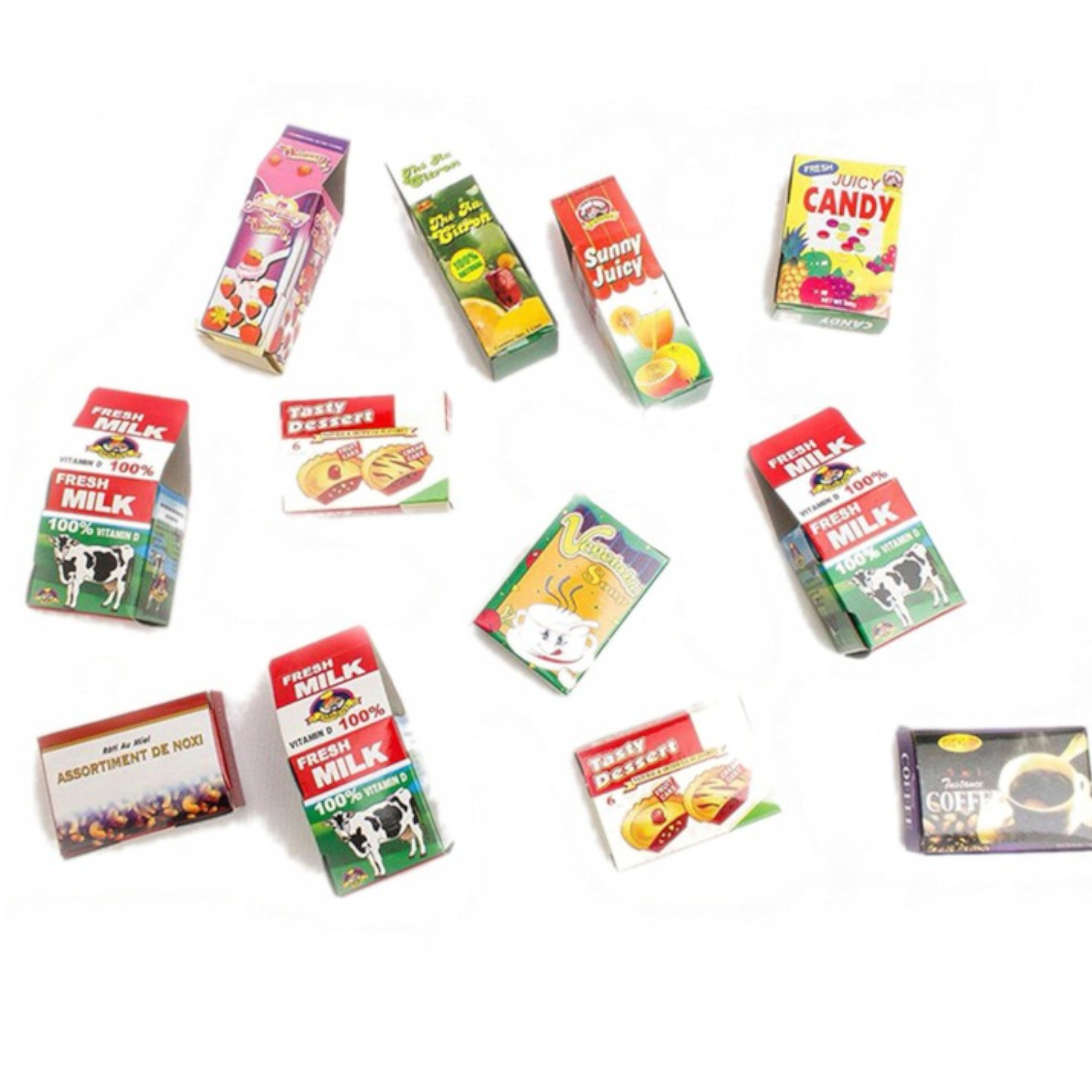 - 12 kartoników imitujących artykuły spożywcze