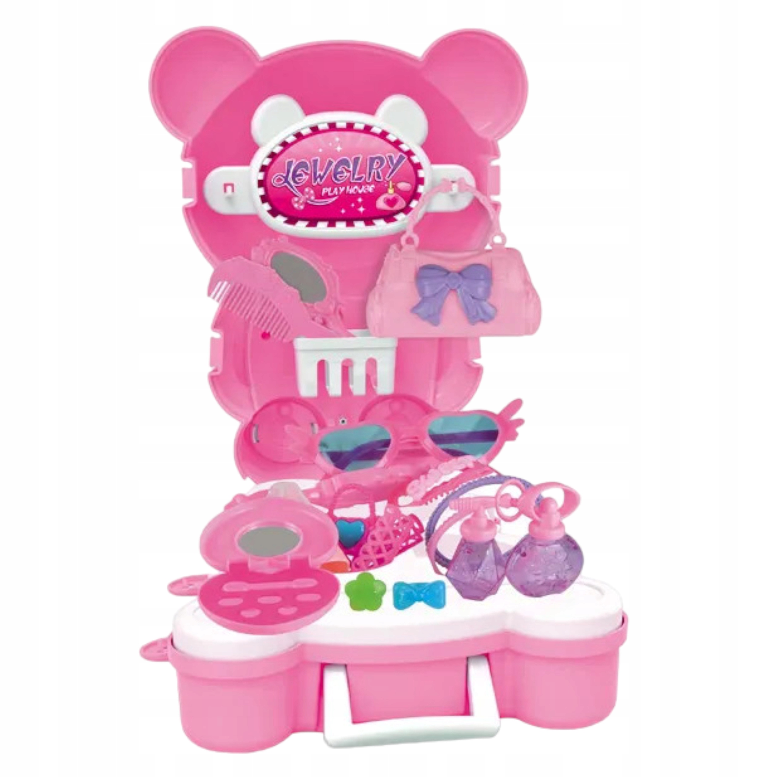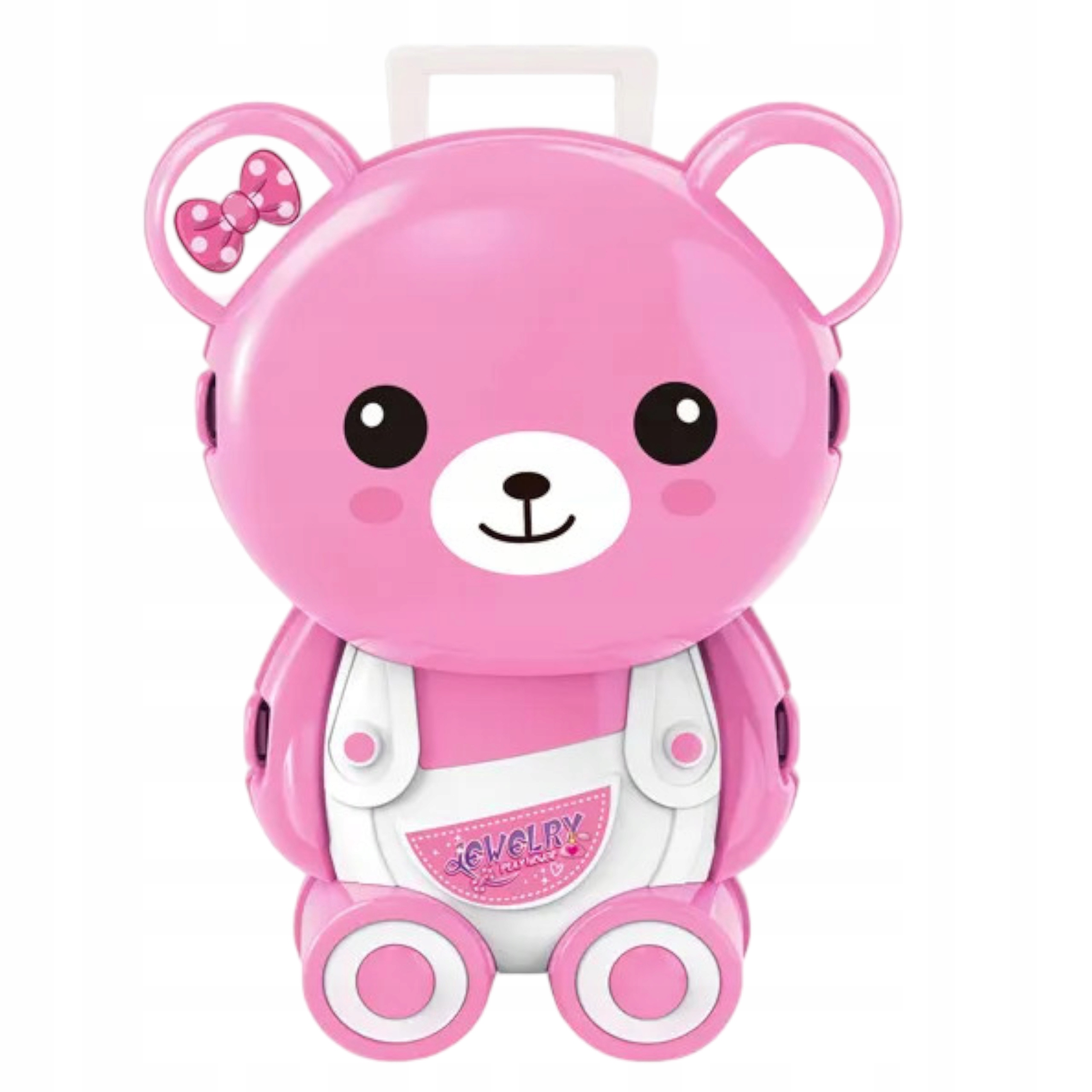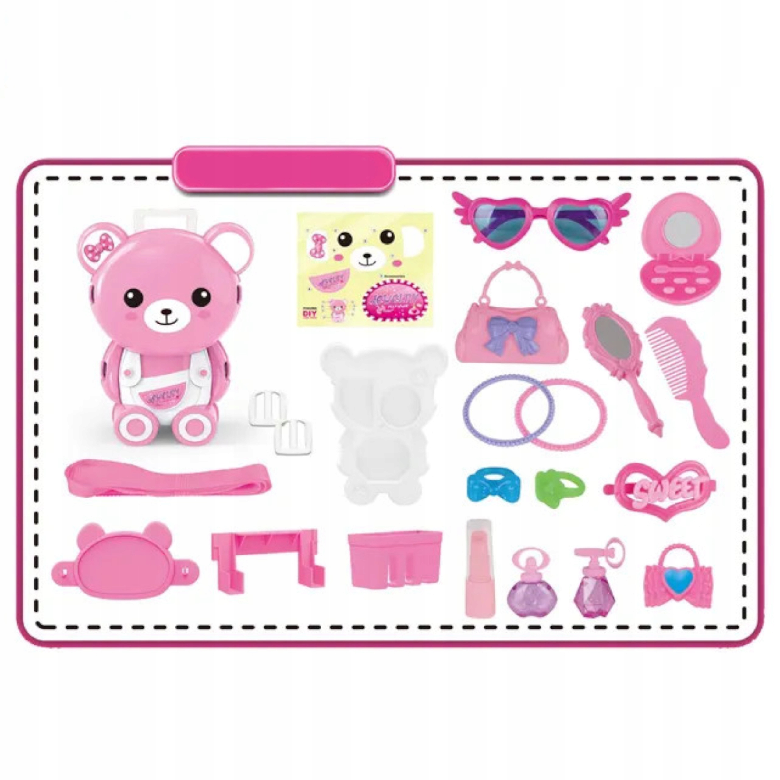 Toaletka dla dziewczynki w plecaku o kształcicie ślicznego różowego misia to praktyczny i uroczy dodatek, który pozwoli maluchowi dbać wszędzie o swój wygląd. Ten mały, przenośny zestaw make-upu jest idealny dla małych dam, które uwielbiają się malować, czesać i wyrażać swój własny styl.