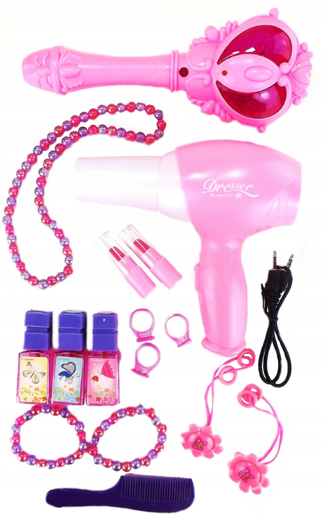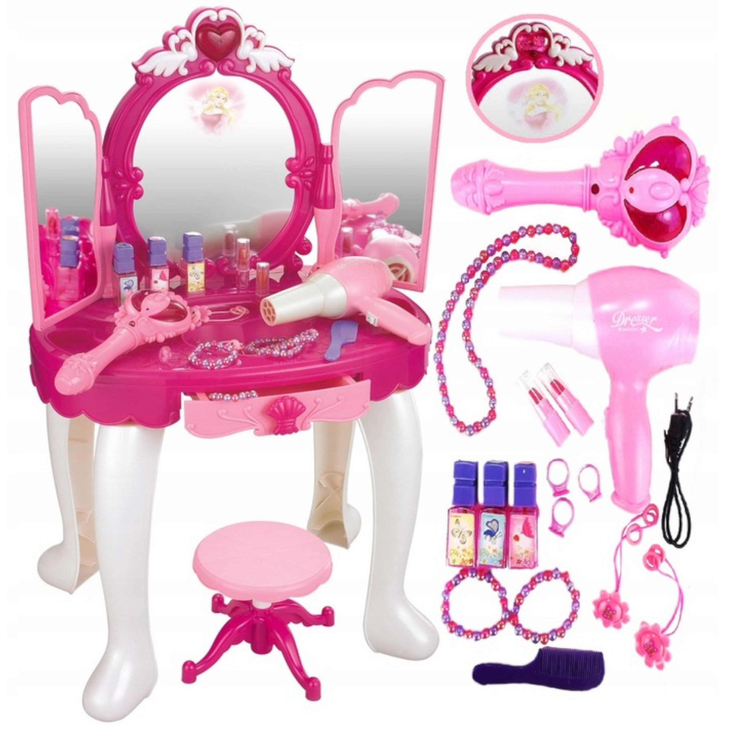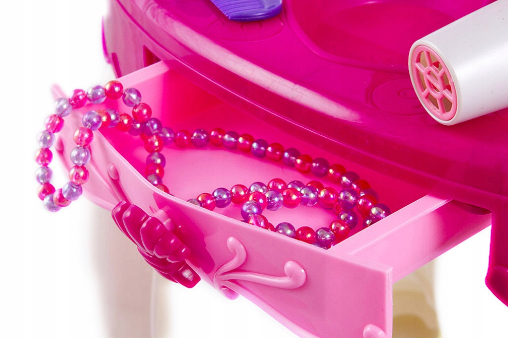 Toaletka z lustrem magiczna różdżka krzesełko mp3 hologram suszarka grzebyk akcesoria różowa