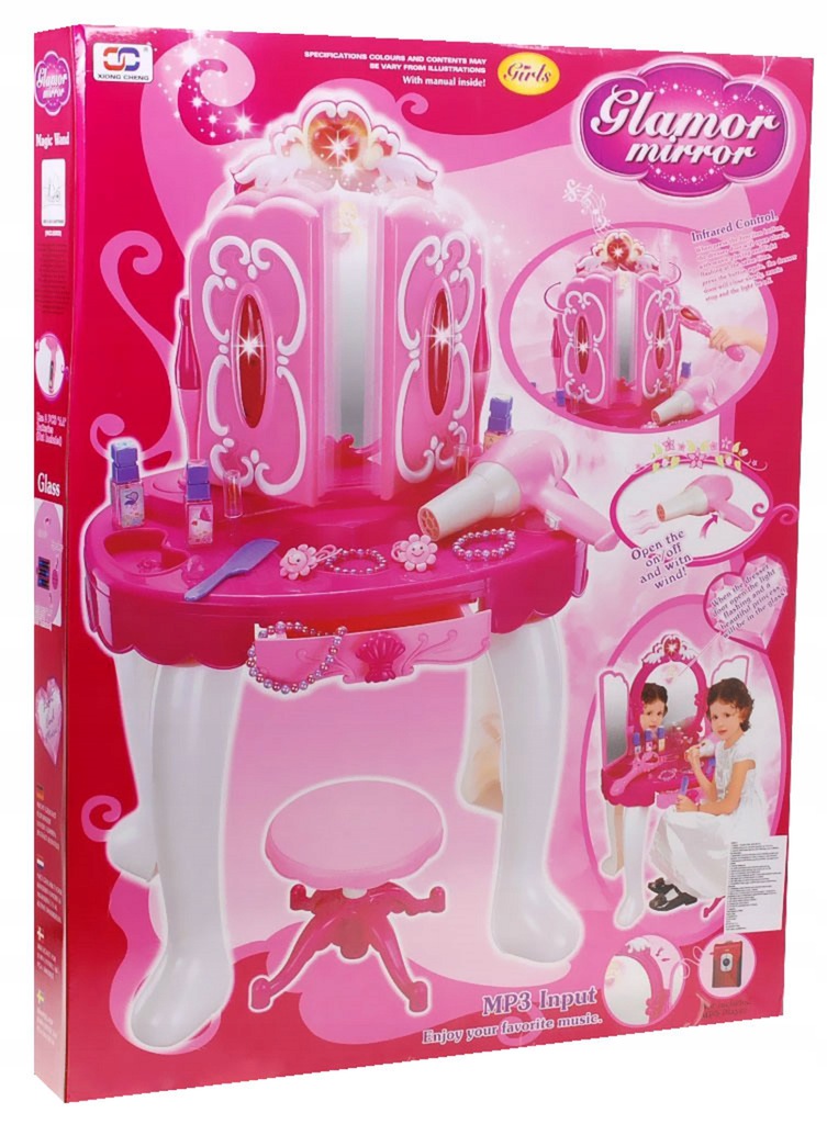- stolik z lusterkiem wyposażony szufladki oraz gniazdo MP3, lampkę i melodyjki