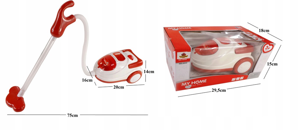 ODKURZACZ DLA DZIECI NA BATERIE INTERWAKTYWNY DŹWIĘKI ŚWIATŁA DZIAŁA JAK PRAWDZIWY 3213C