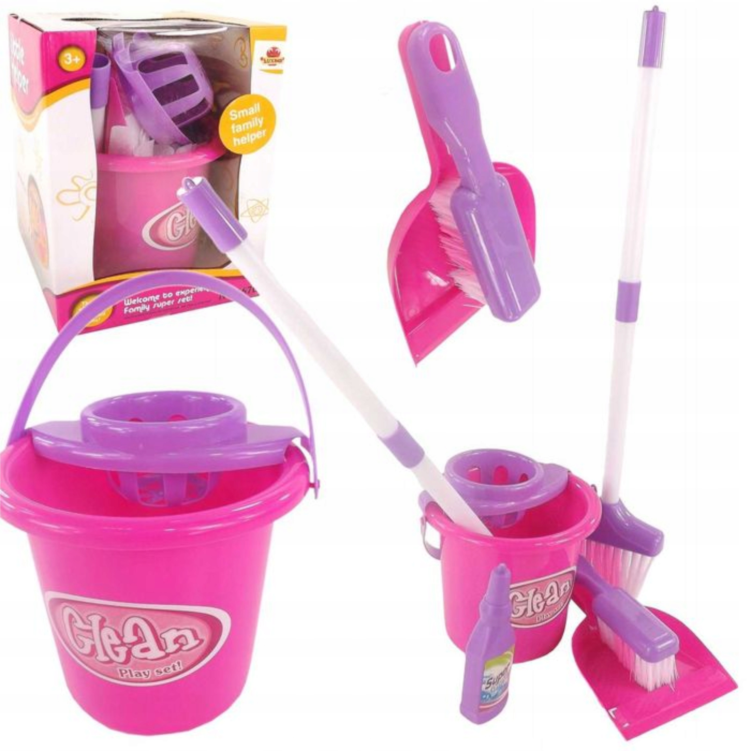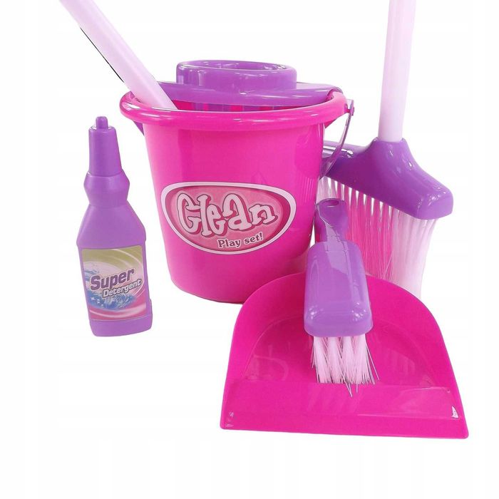 Zestaw do sprzątania dla dzieci wiaderko mop zmiotka płyn