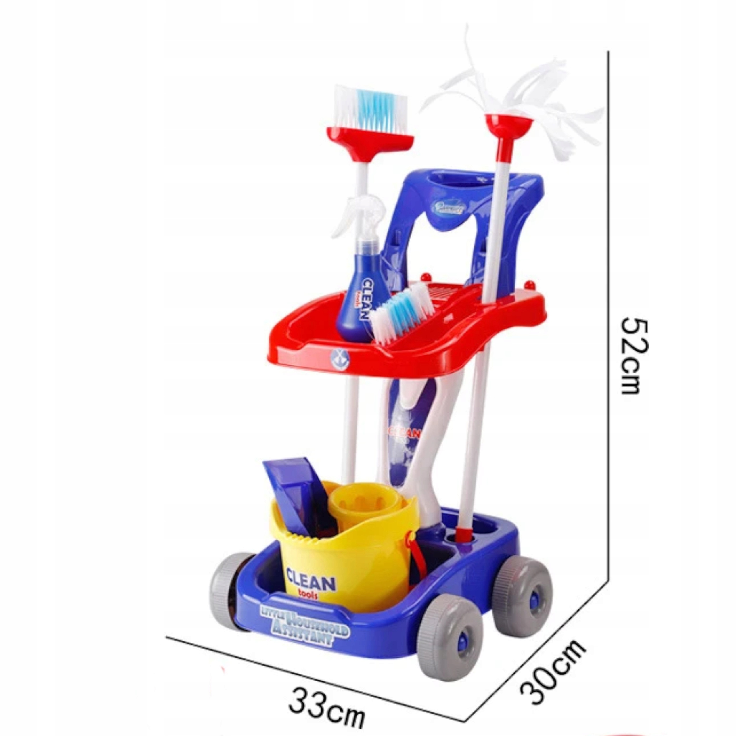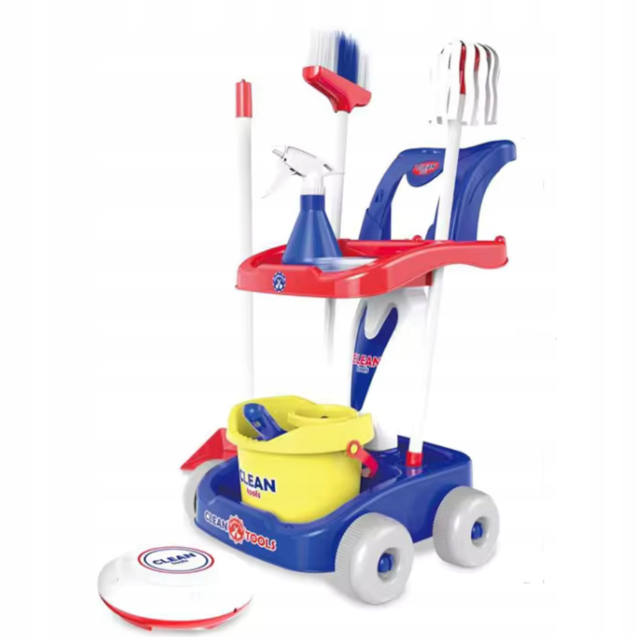 Elementy zestawu do sprzątania: szufelka, szczotka, odkurzacz oraz inne artykuły w zestawie są świetnym odwzorowaniem prawdziwych akcesoriów do sprzątana, które bardzo zaciekawią Twoją pociechę. Dołączony wózek pozwala na utrzymanie wszystkich niezbędnych elementów w jednym miejscu co ułatwia utrzymanie ładu i porządku.