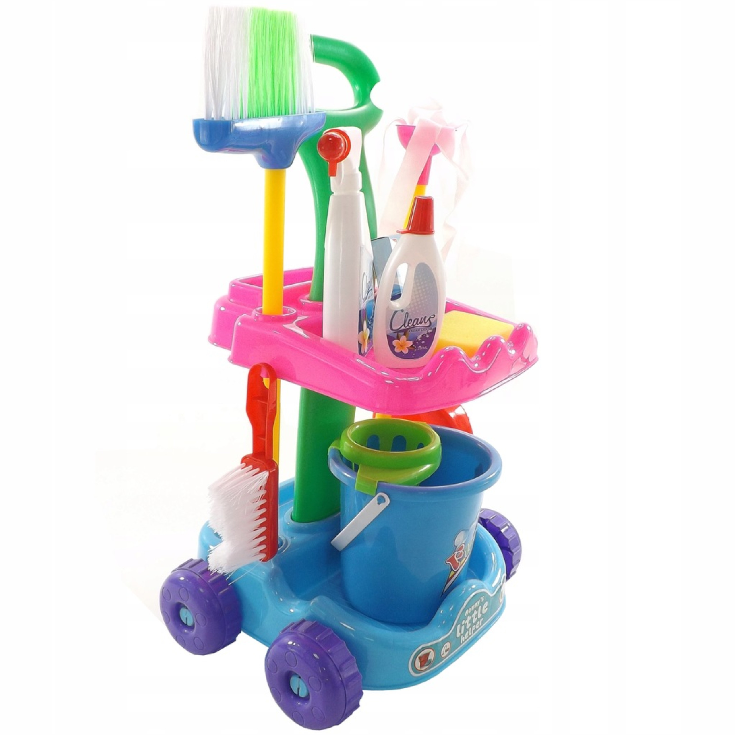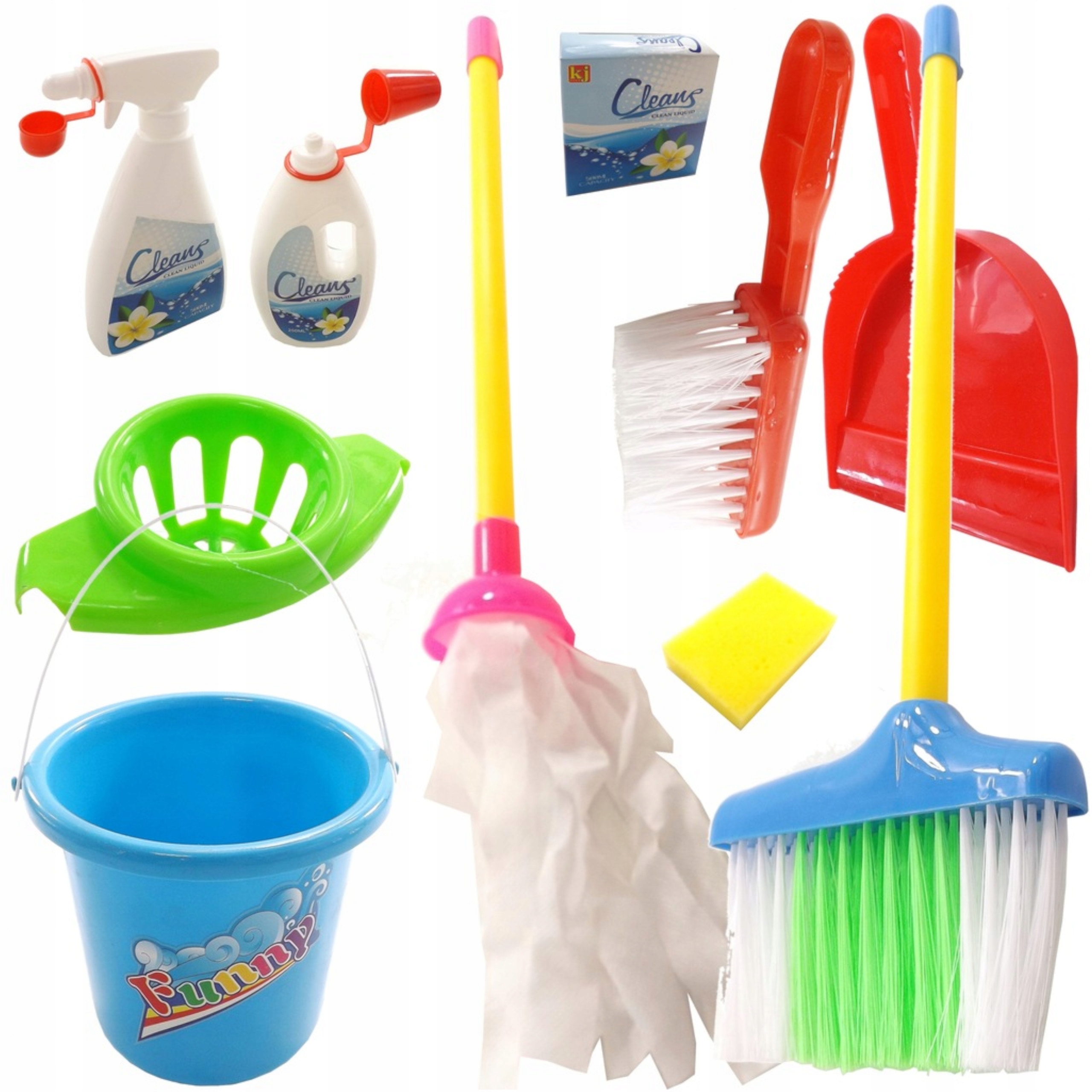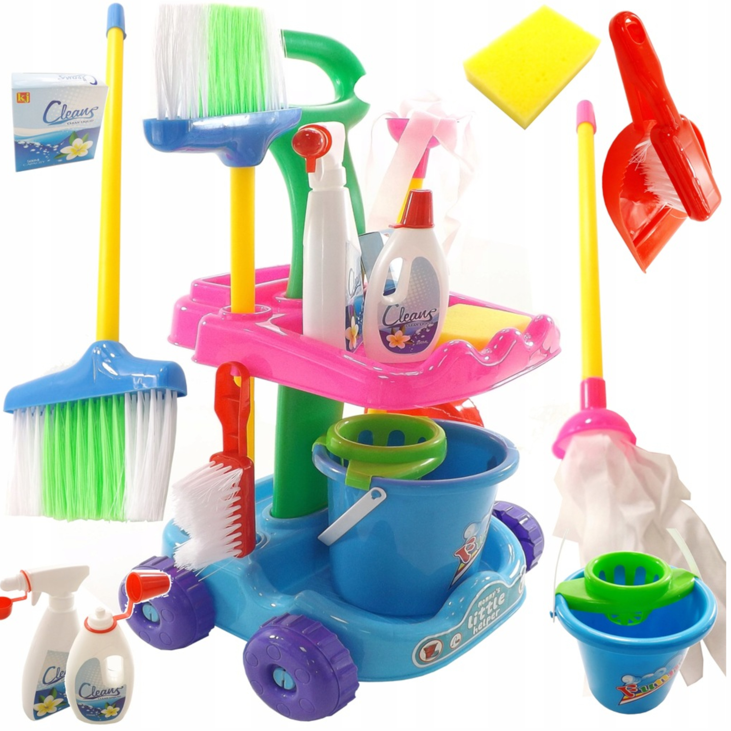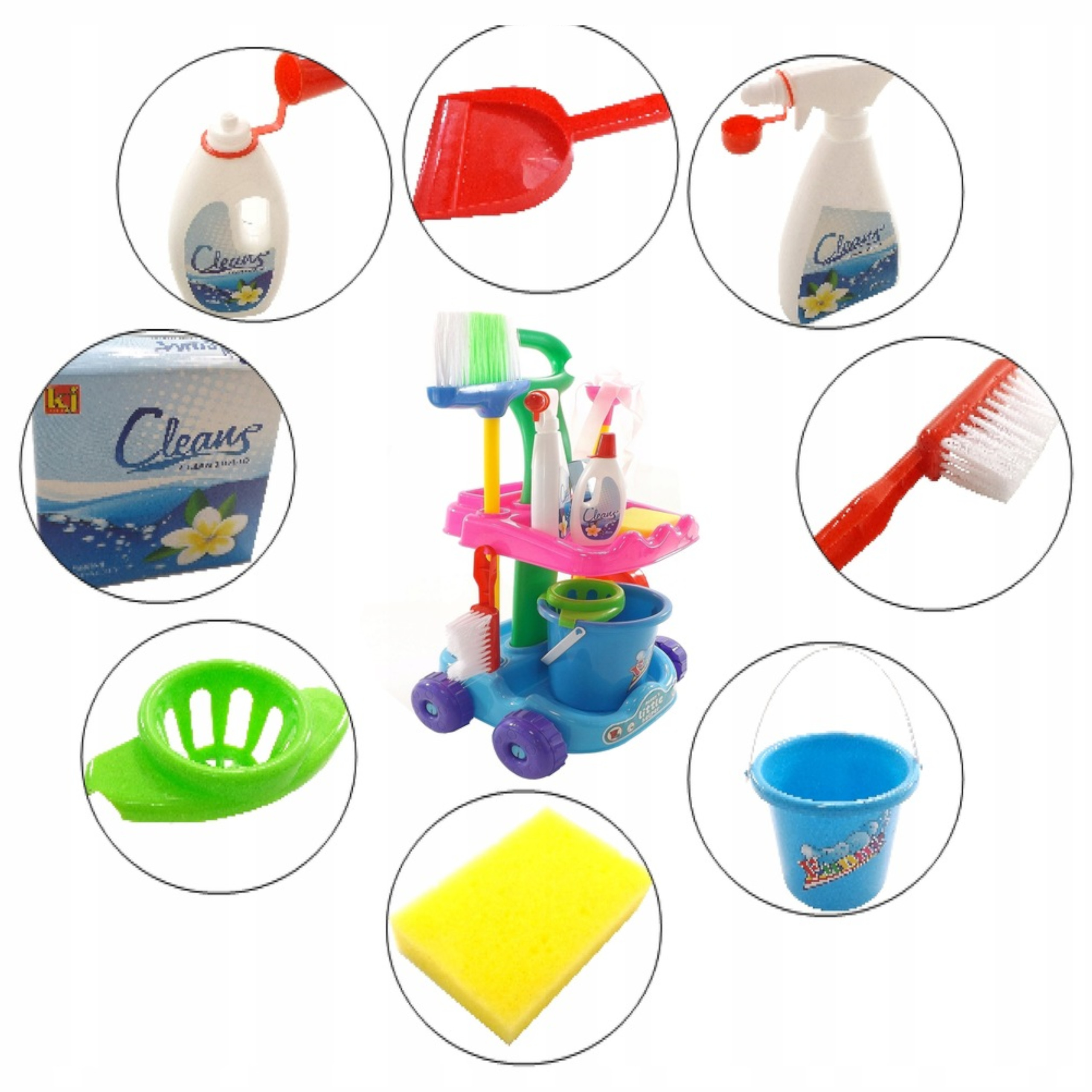 ŚLICZNY ZESTAW DO SPRZĄTANIA DLA DZIECI WIADERKO MOP WÓZEK SZUFELKA ZE ZMIOTKĄ PŁYNY GĄBKA