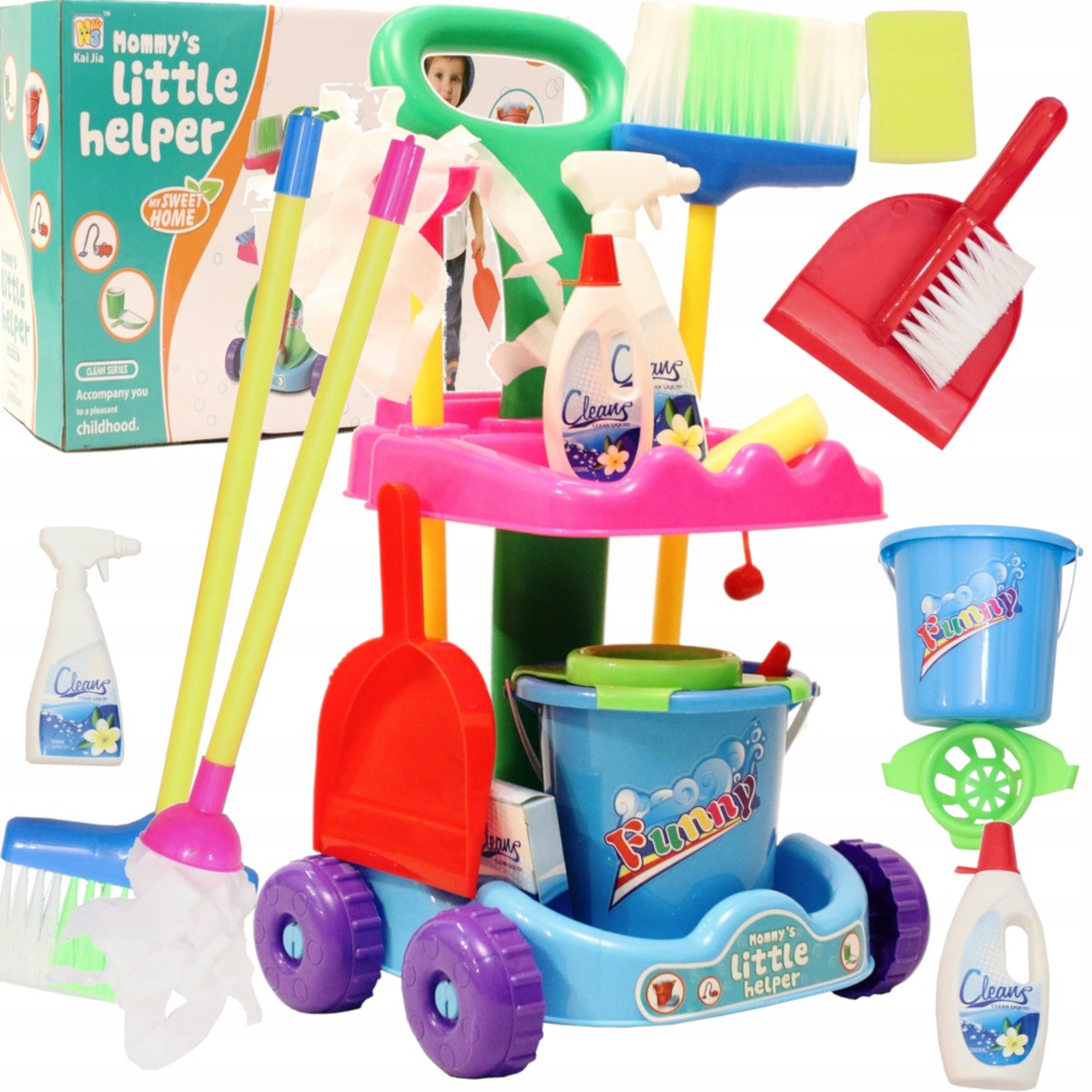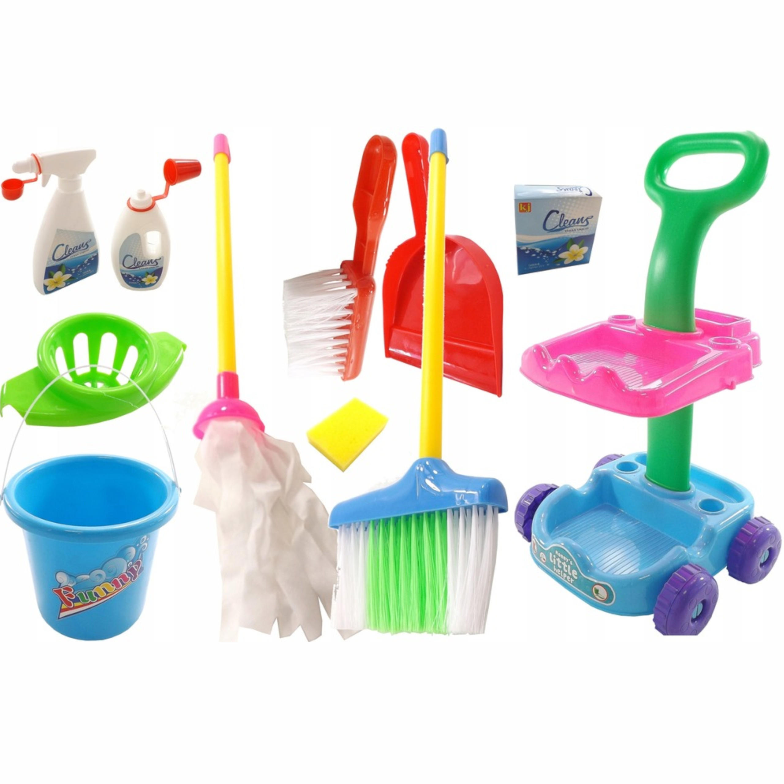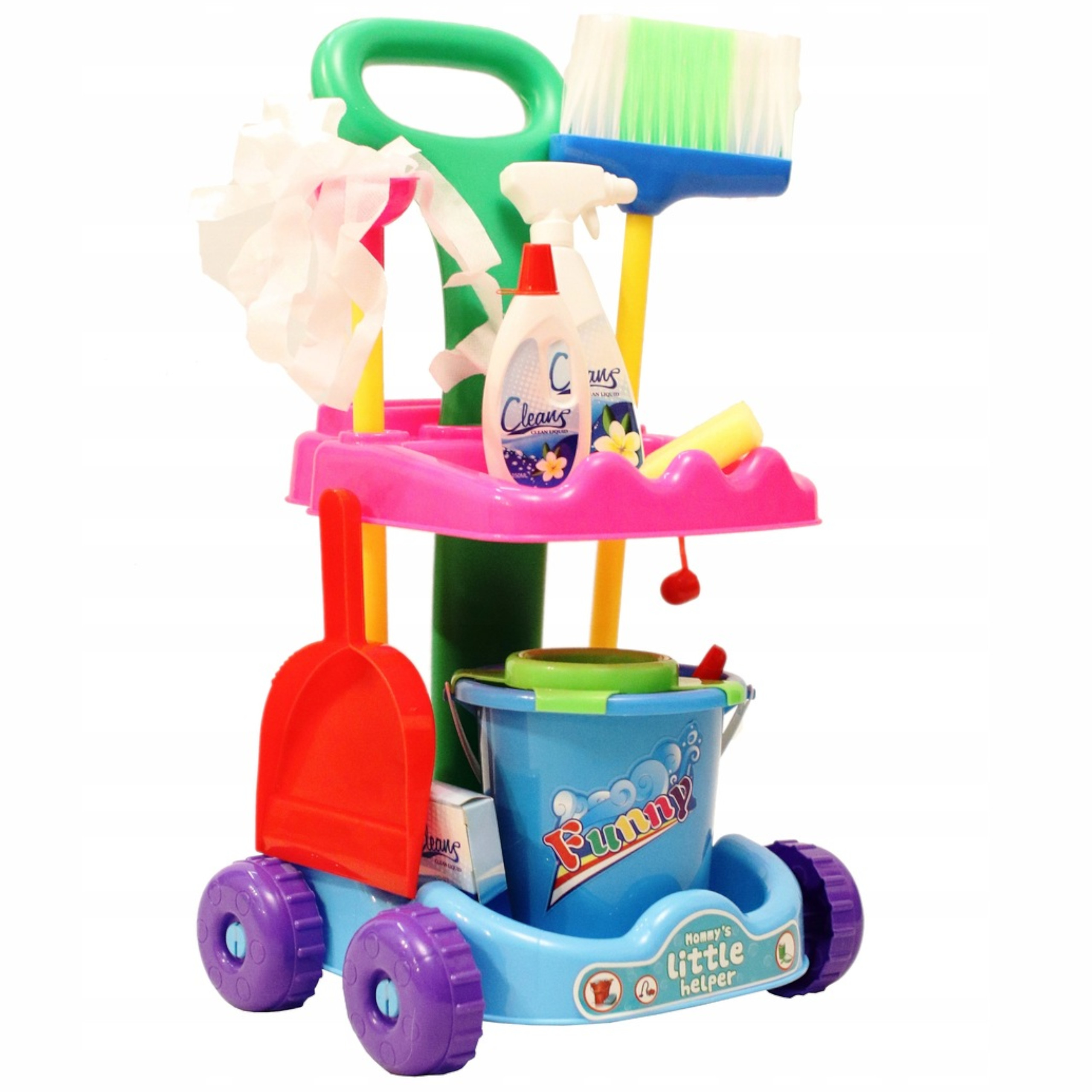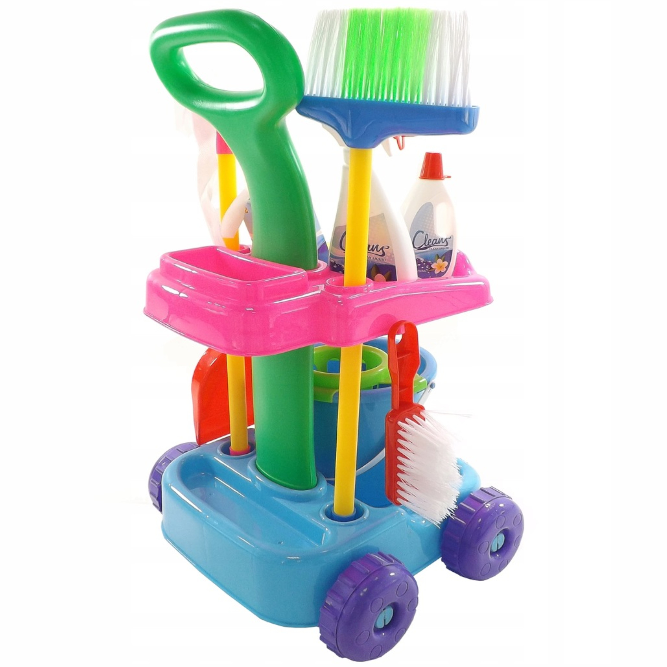 ŚLICZNY ZESTAW DO SPRZĄTANIA DLA DZIECI WIADERKO MOP WÓZEK SZUFELKA ZE ZMIOTKĄ PŁYNY GĄBKA