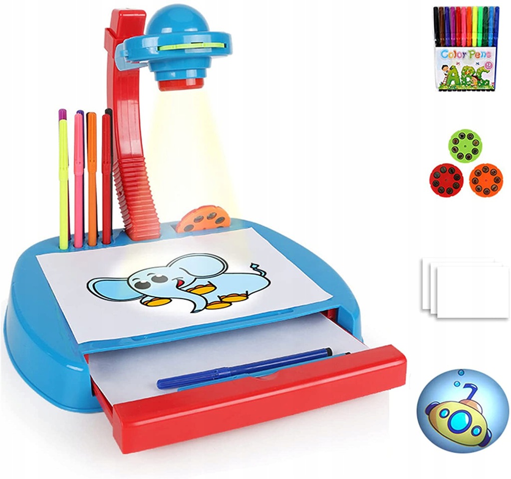 Projektor do nauki rysowania i malowania to świetny sposób na naukę poprzez zabawę dla Twojego dziecka. Już od najmłodszych lat pobudza wyobraźnie, ćwiczy spostrzegawczość oraz pamięć. Edukacyjna zabawka, która rozwinie w dziecku zdolności plastyczne, które zaowocują w dalszej nauce w przedszkolu, a później w szkole. Rzutnik w ładnych odcieniach niebieskiego z czerwonym to idealny prezent dla każdego dziecka, które lubi rysować.