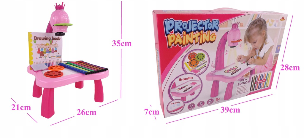 Projektor do rysowania na nóżkach rzutnik do nauki rysowania rzutnik do wyświetlania obrazków korona różowa dla dzieci