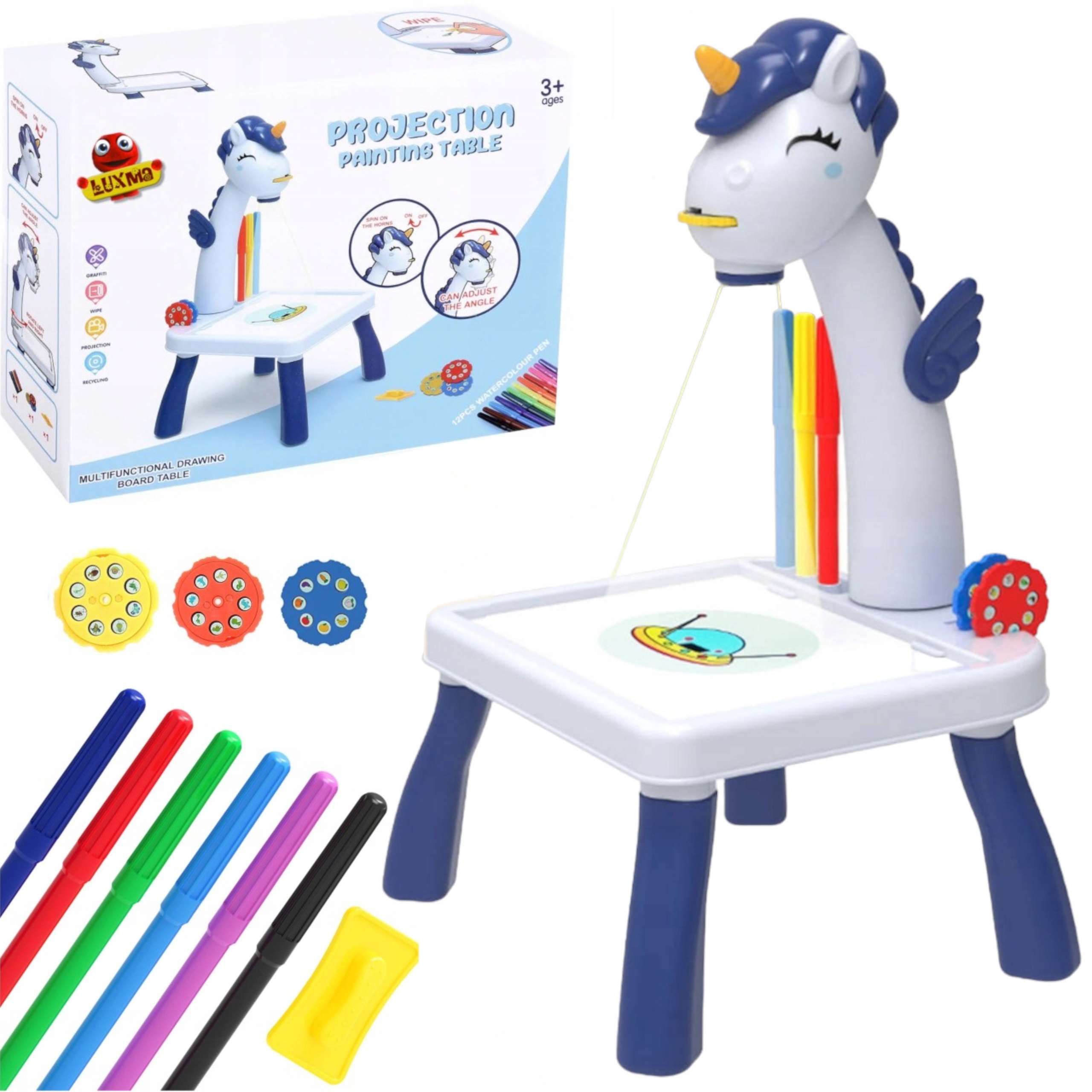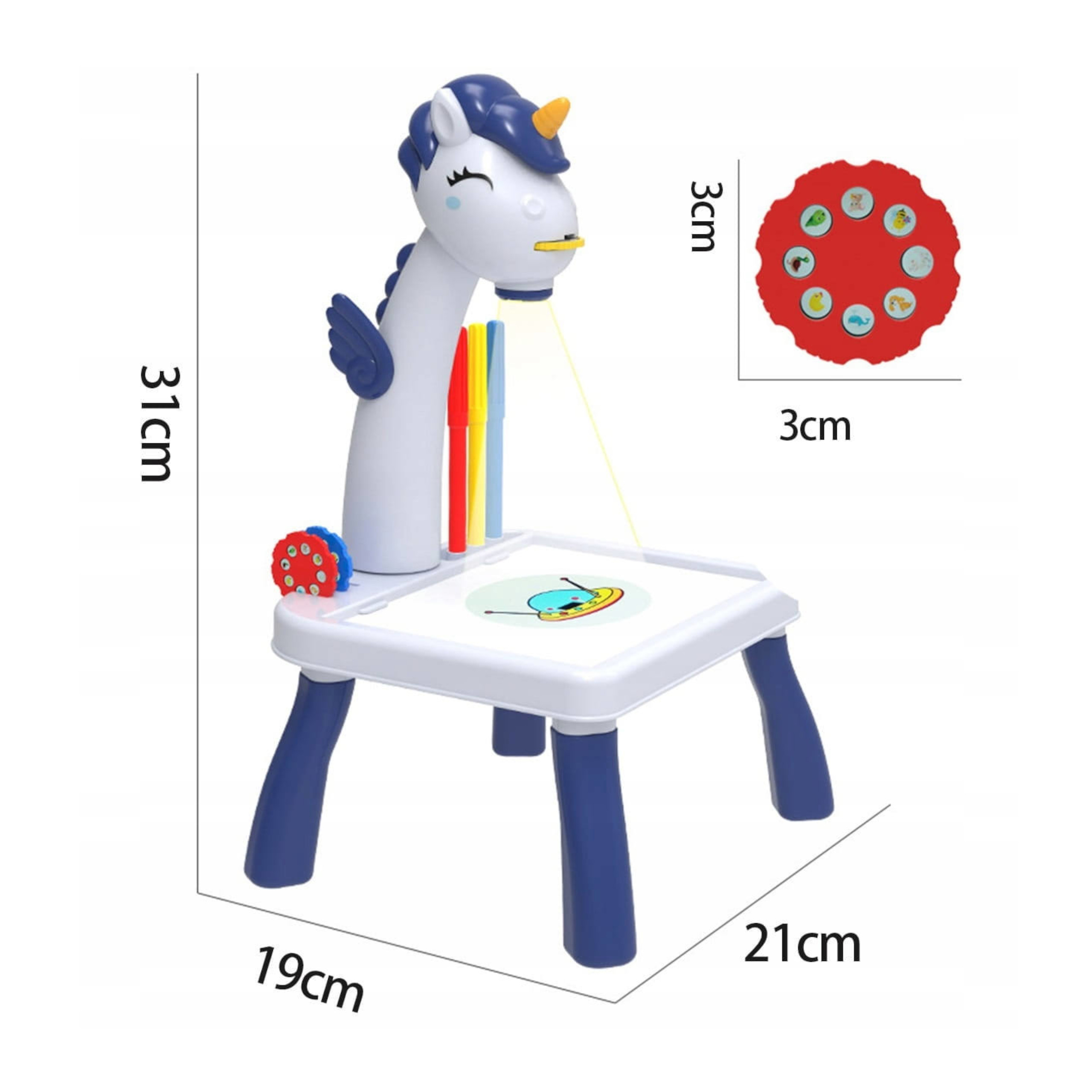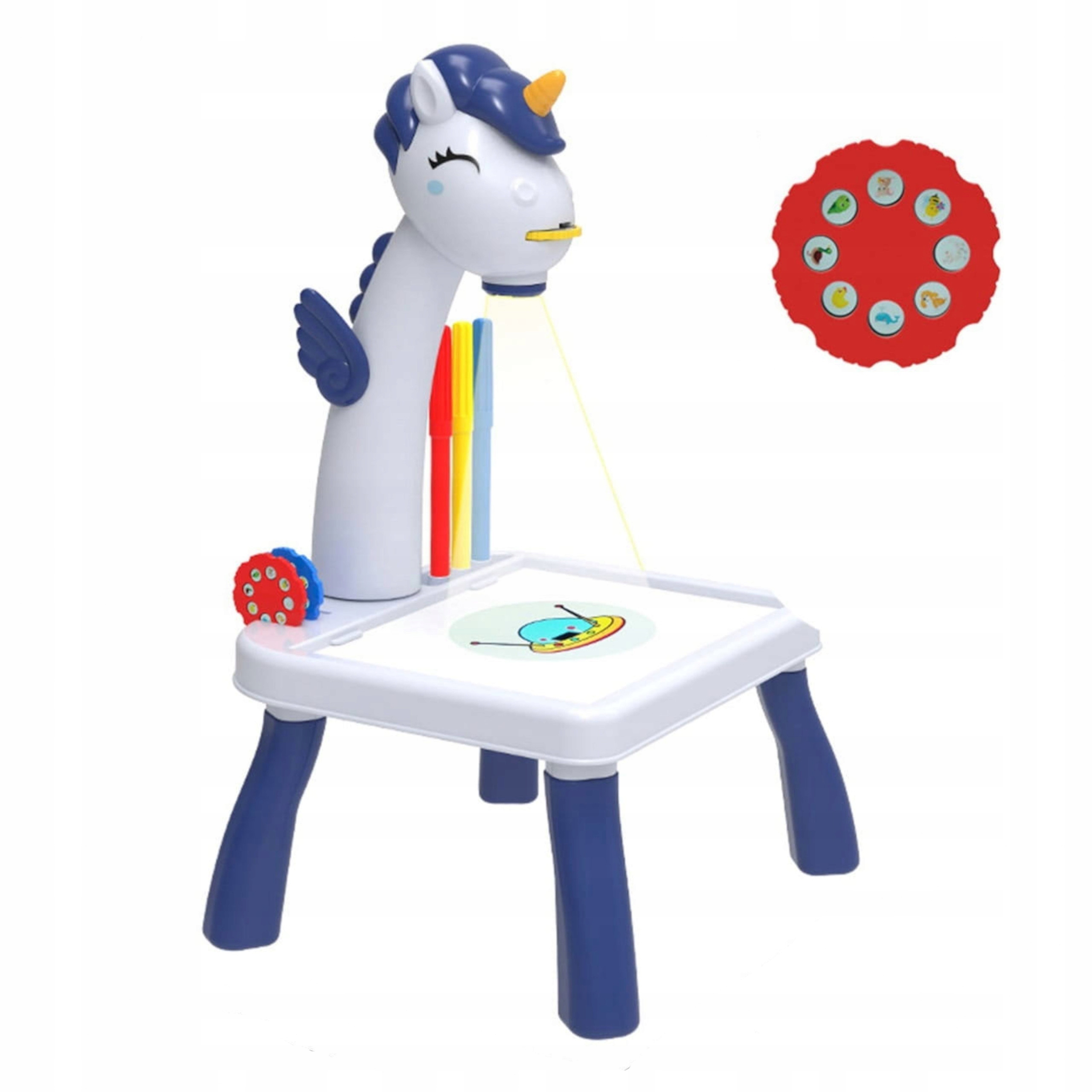 Projektor do rysowania stolik jednorożec niebieski