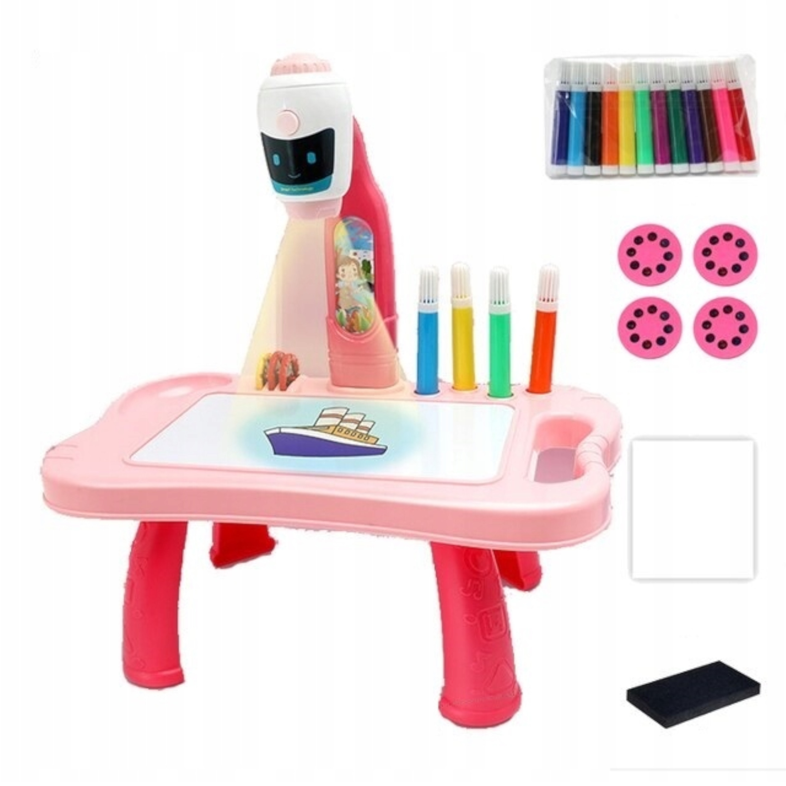 Śliczny projektor do rysowania w kształcie robota to idealna zabawka dla Twojej Małej Artystki.