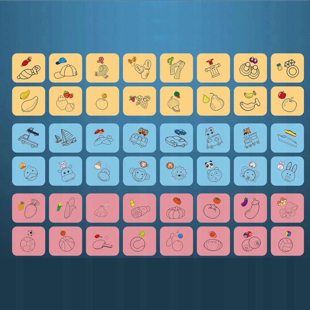 ✅ Projektor posiada 6 krążków z tematycznymi wzorami, dzięki którym dziecko uczy się kształtów kolorów i nazw warzyw, owoców, pojazdów, przedmioty sportowe, elementy stroju oraz twarze zwierzątek.