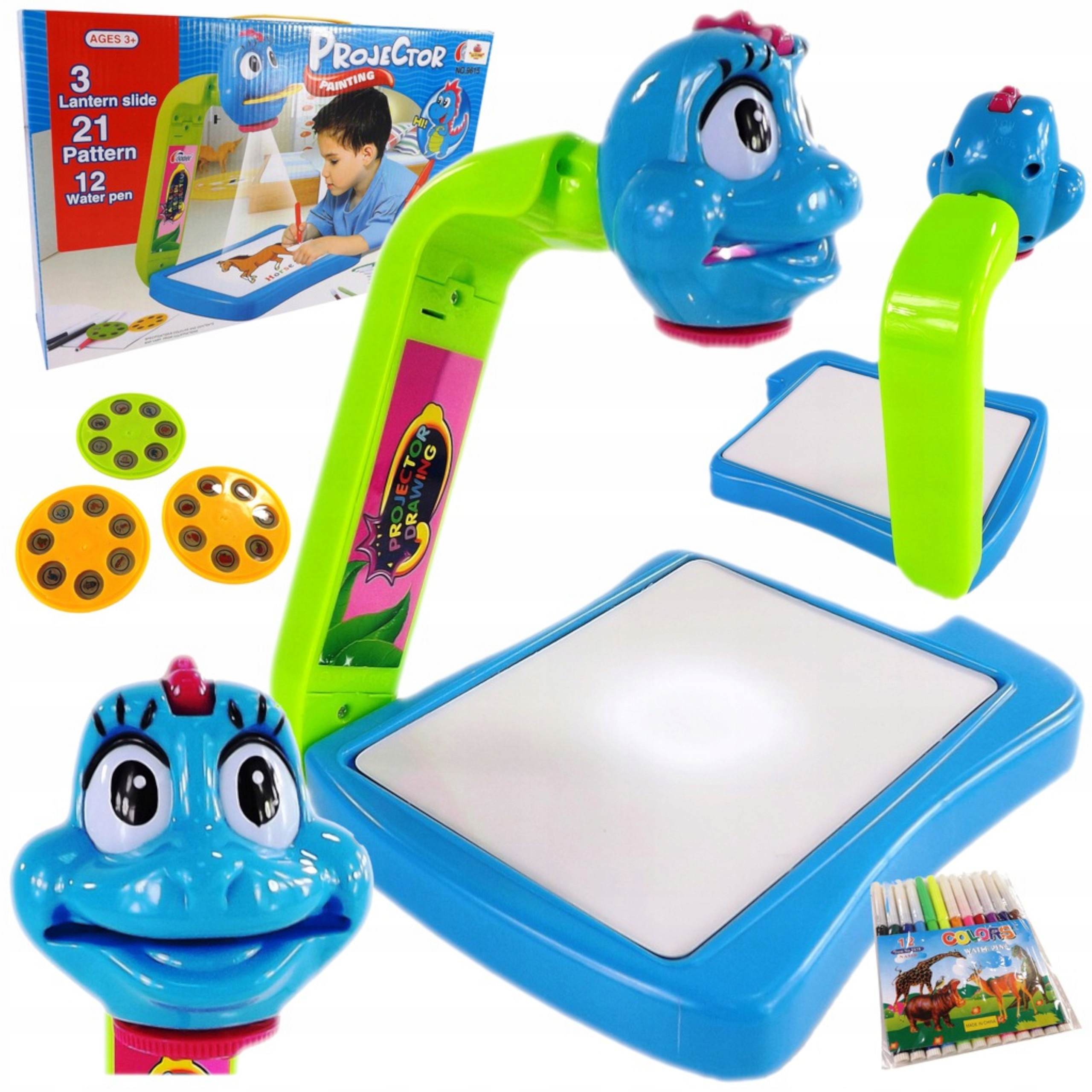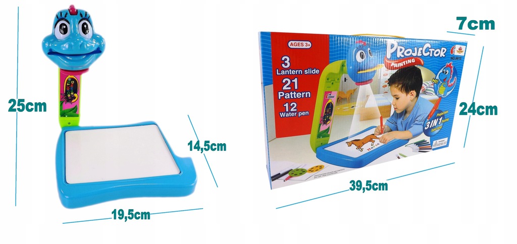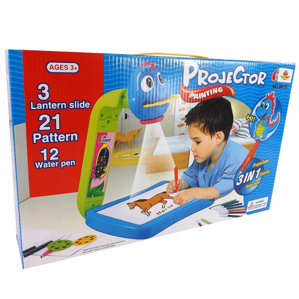 Projektor rzutnik do nauki rysowania mazaki dinozaur smok rzutnik na ścianę 3w1 9615