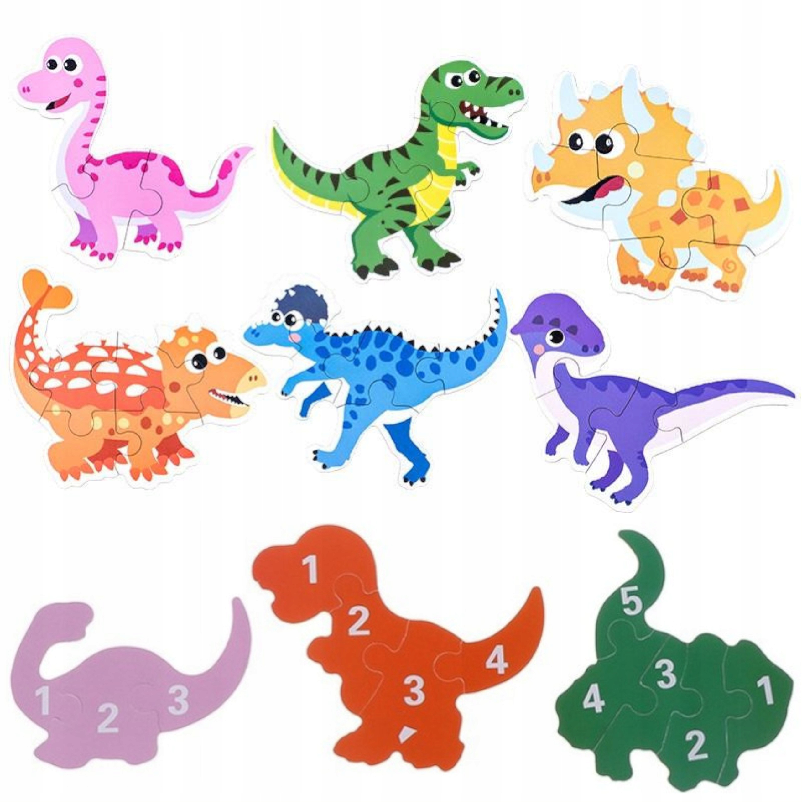 - 6 różnych układanek, dinozaury, w sumie 27 elementów