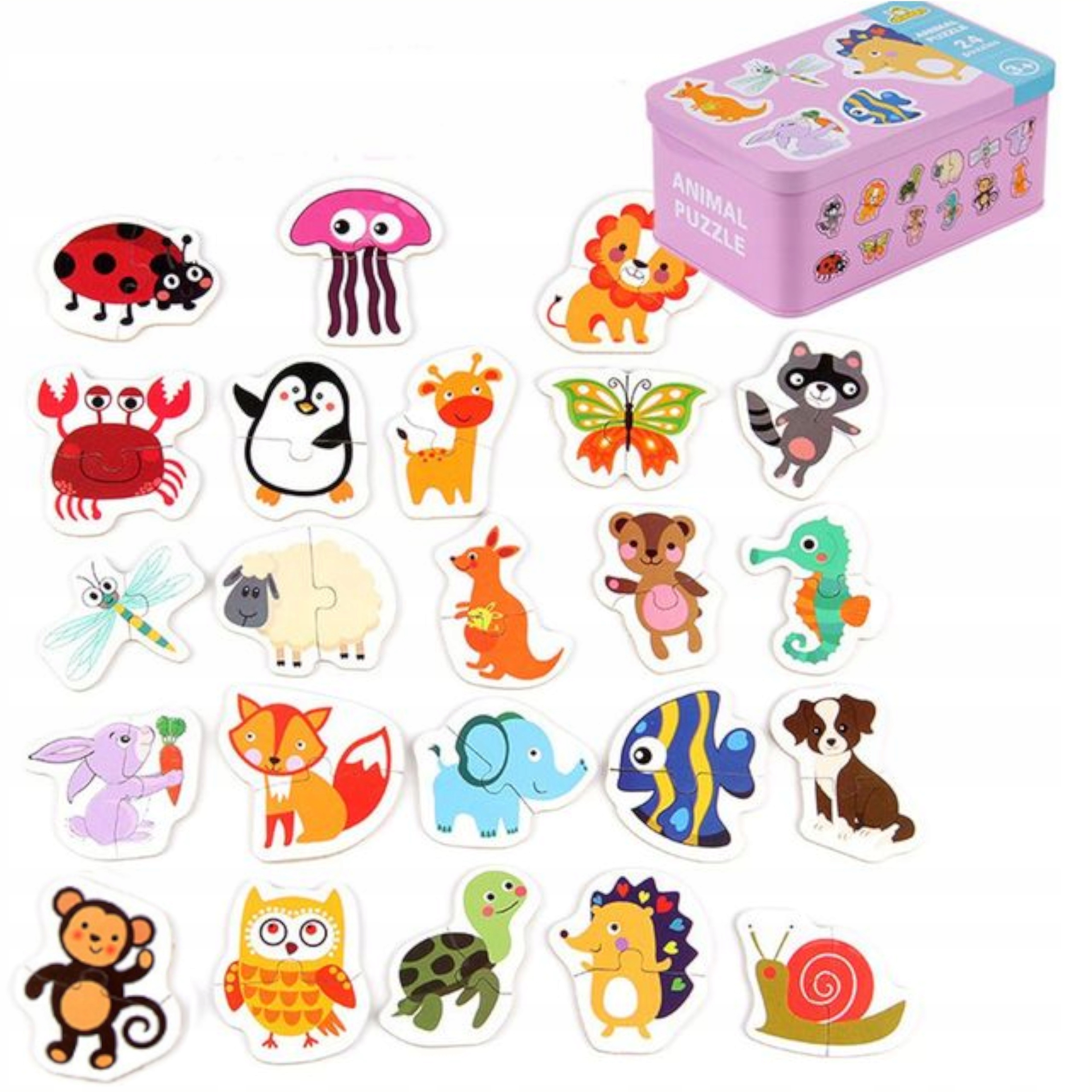 Moje pierwsze grube puzzle zwierzęta 48 sztuk, 24 układanki, kolorowa puszka