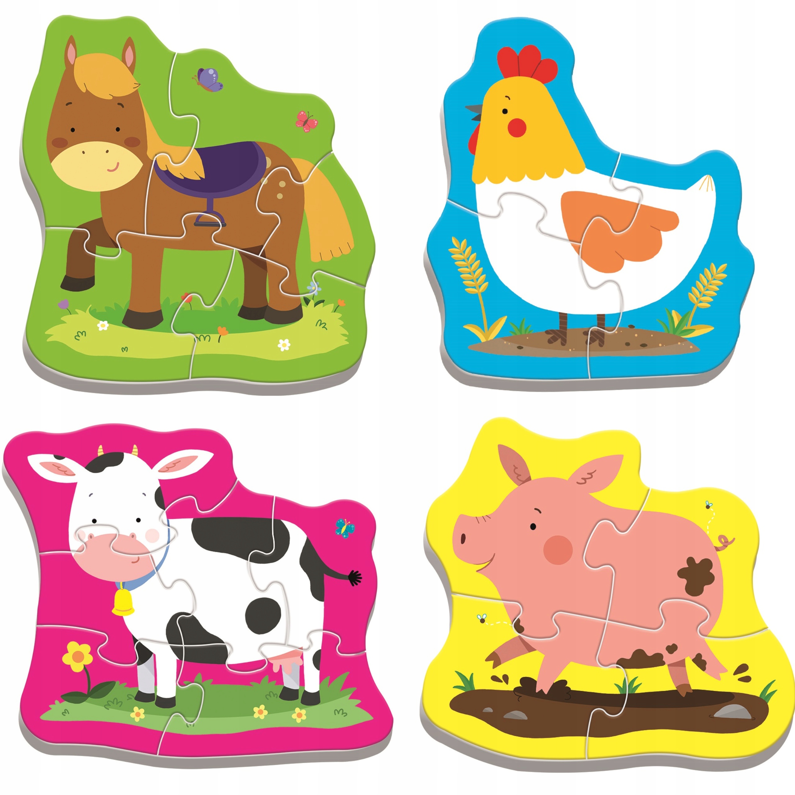 Puzzle 4w1 Baby Classic powstały na podstawie motywu zwierzątek żyjących na farmie. To duże układanki z bardzo grubego kartonu przeznaczone specjalnie dla najmłodszych dzieci. Żywe kolory i śliczne wzory zwierzaków zachęcają dzieci do zabawy.