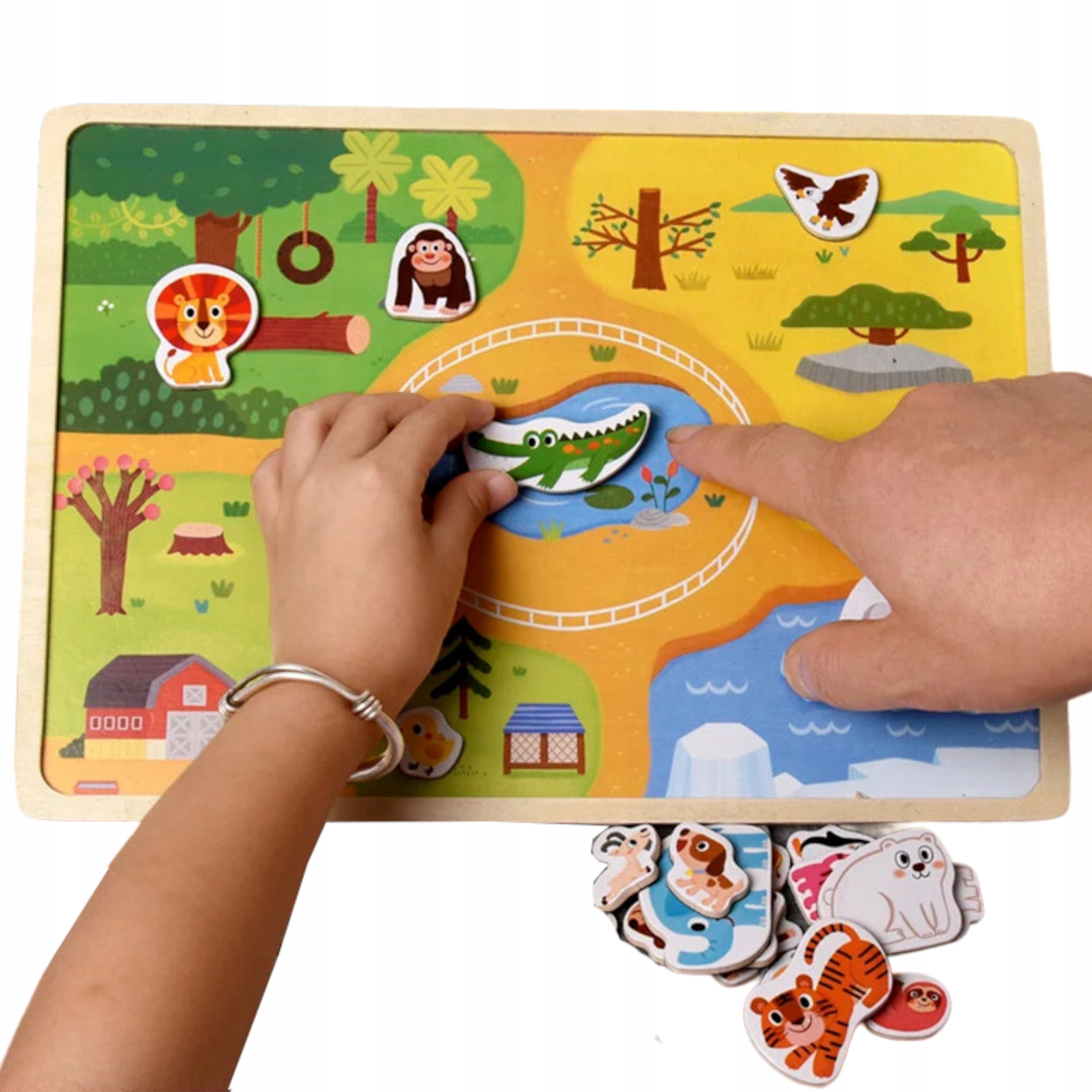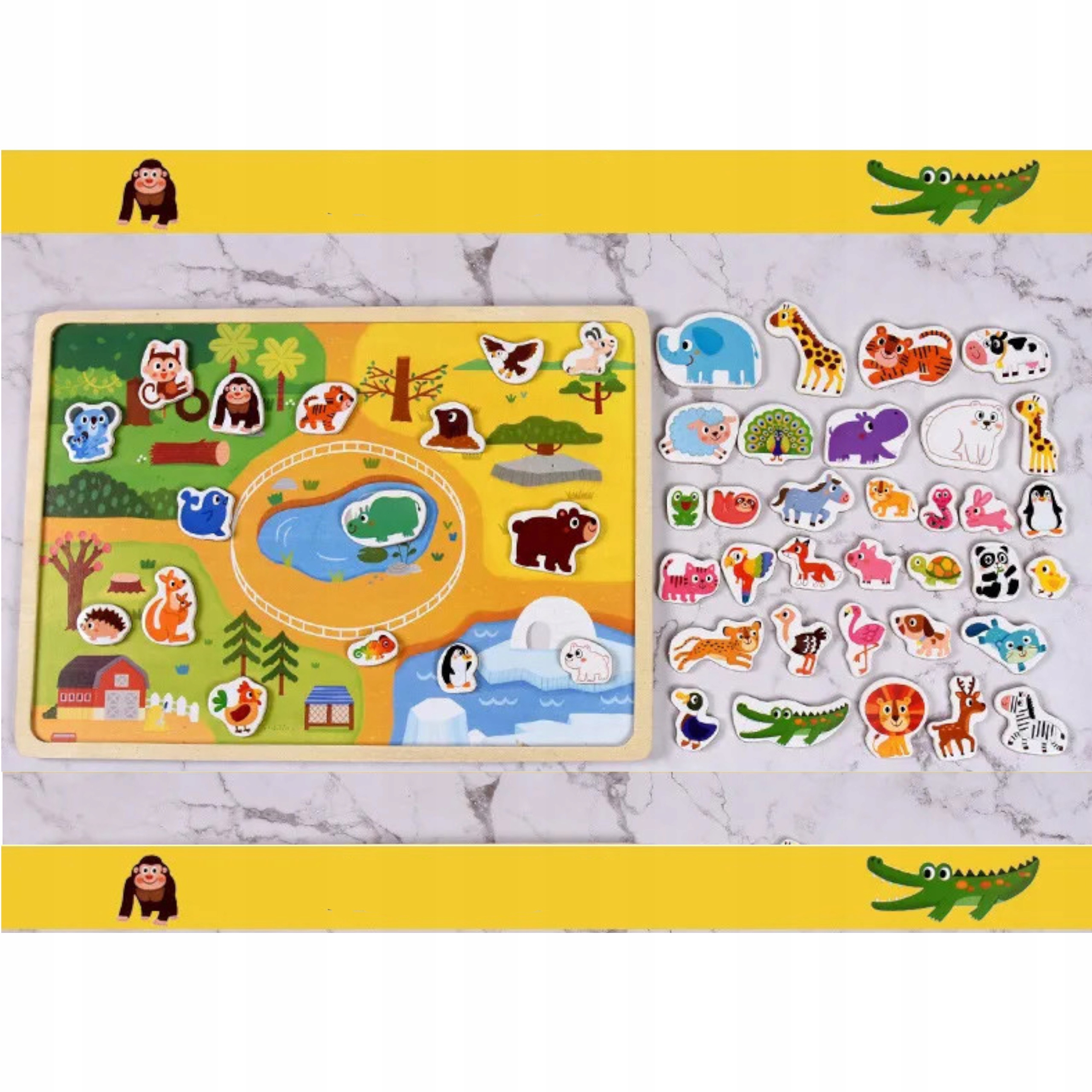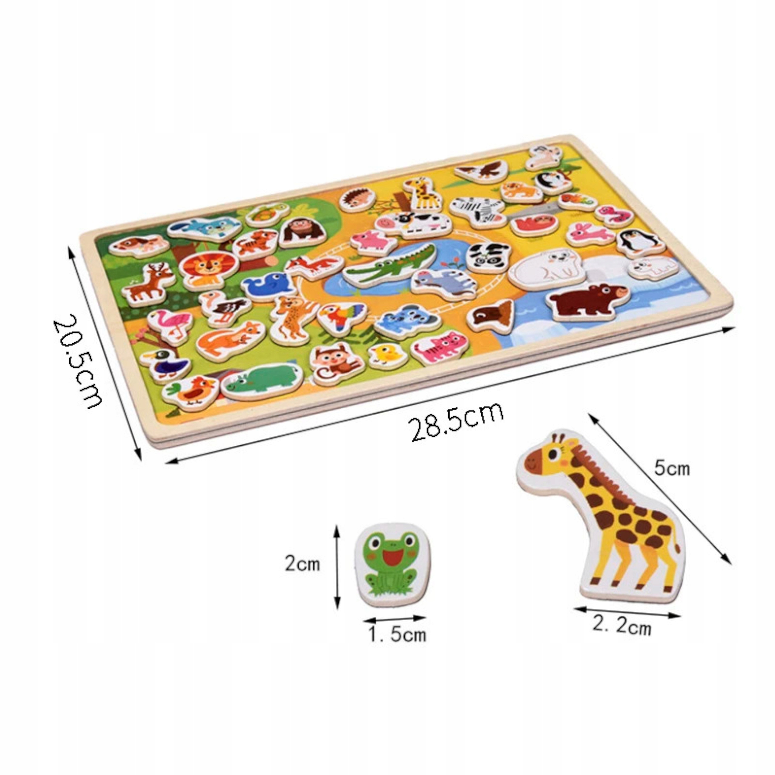 Tablica drewniana układanka puzzle magnetyczne zwierzęta
