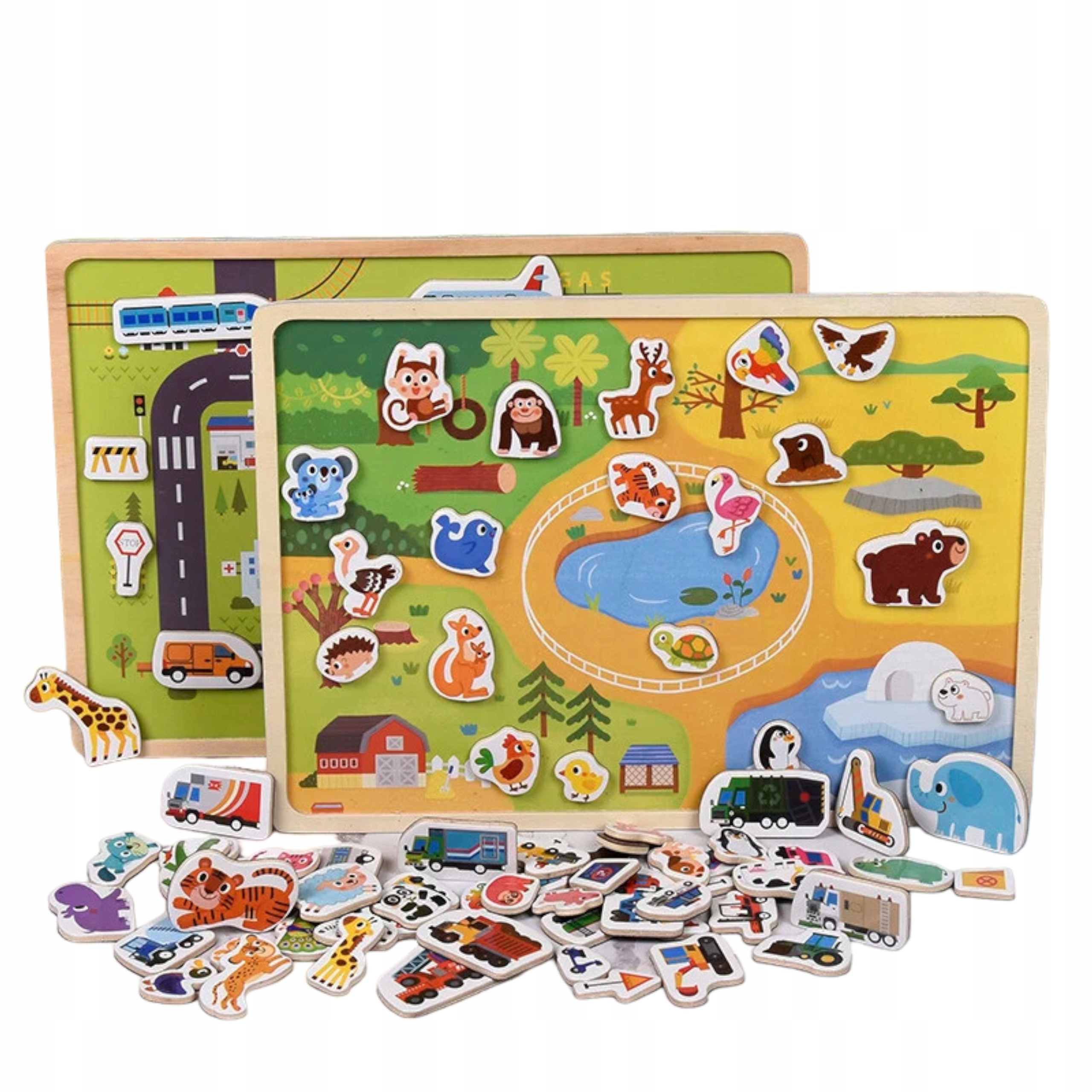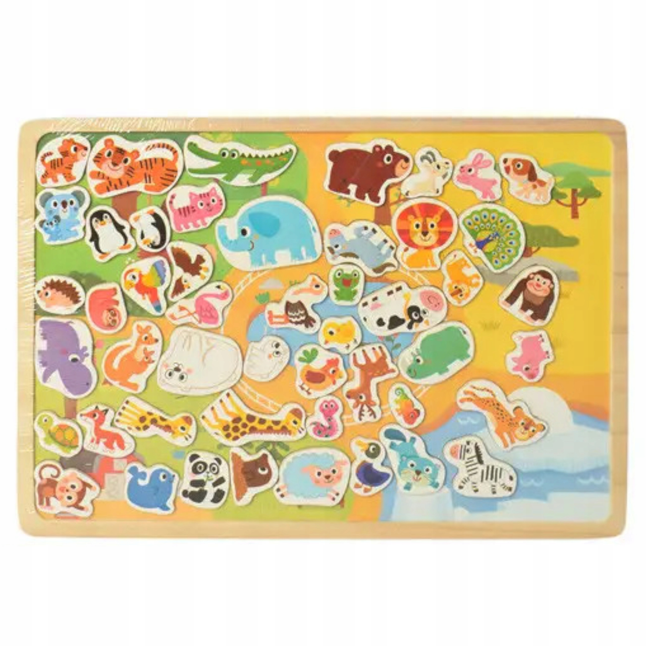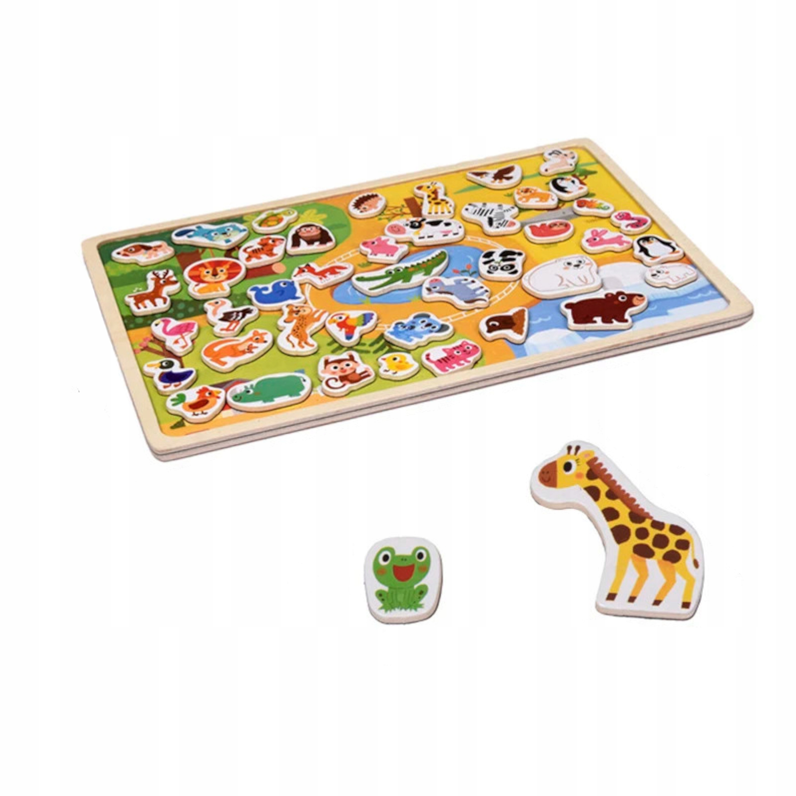 Tablica drewniana układanka puzzle magnetyczne zwierzęta