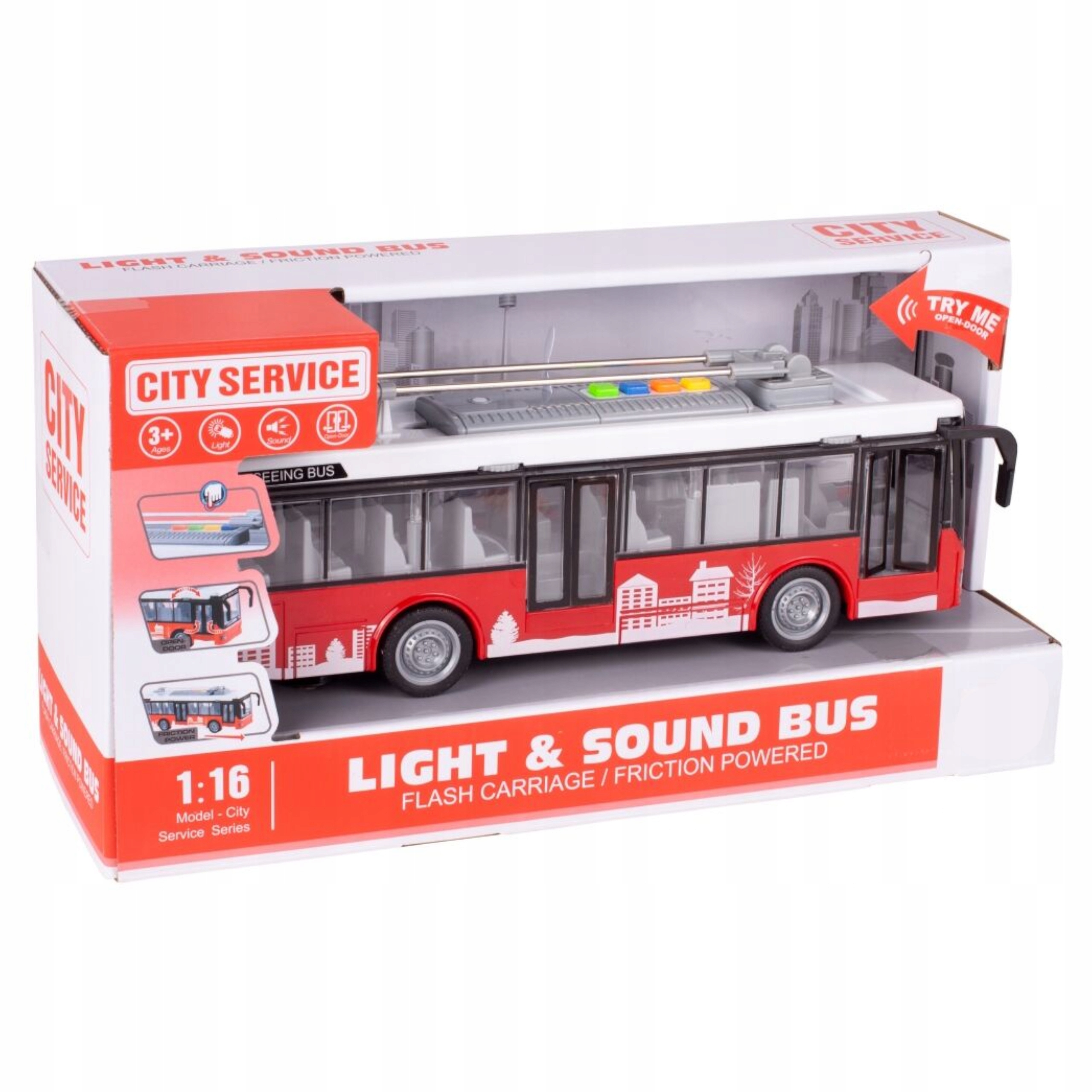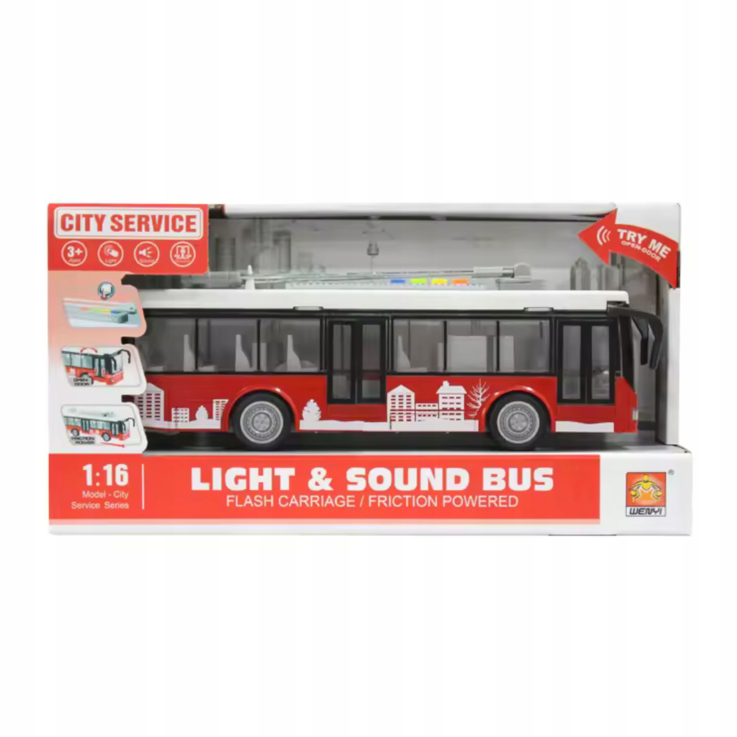 DUŻY TROLEJBUS MIEJSKI OTWIERANE DRZWI DŹWIĘKI ŚWIATŁA WY911A
