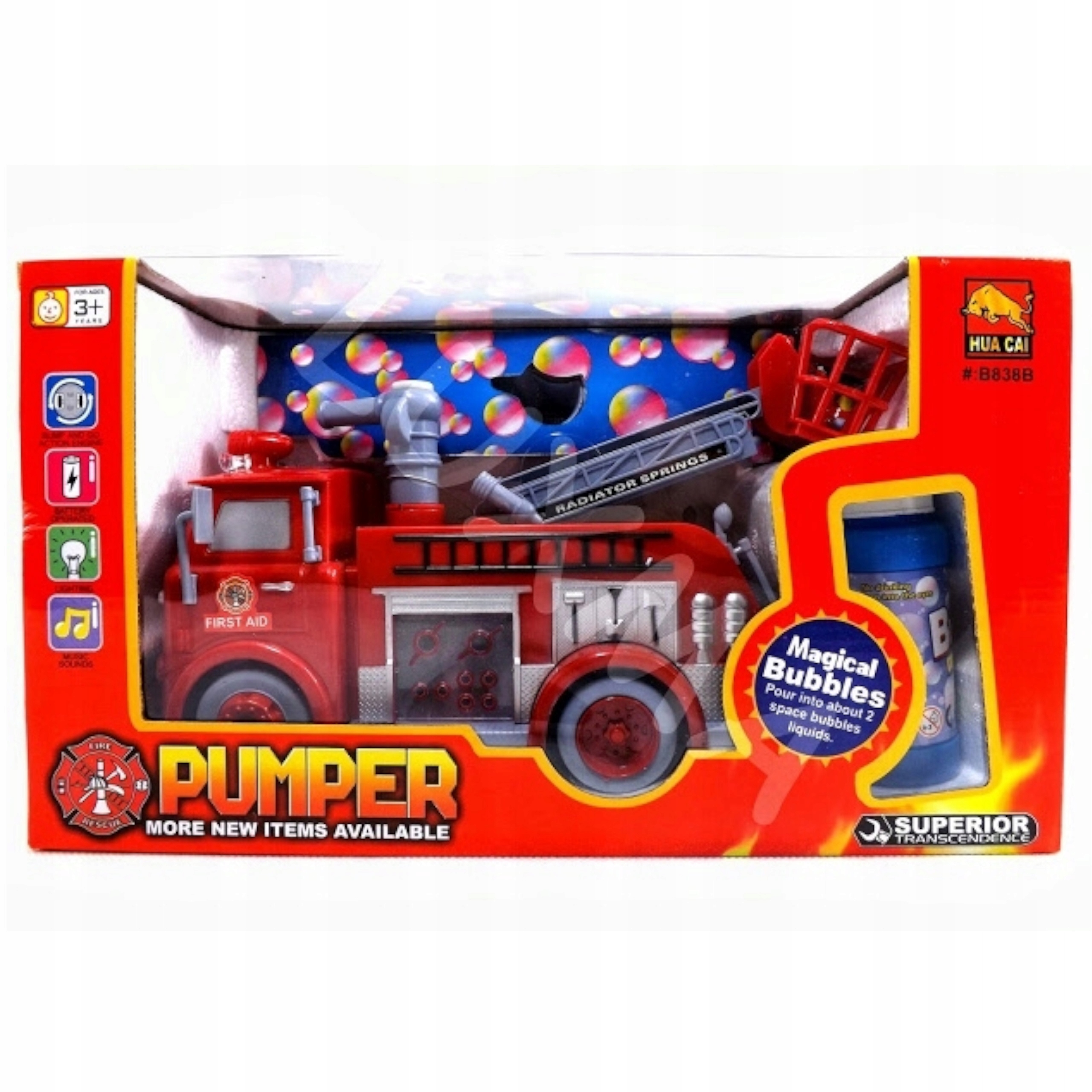 Pojazd straży pożarnej w ładnym czerwonym kolorze ma na dachu armatkę puszczającą prawdziwe bańki, a przód autka to wesoła ruszająca się buzia. To idealny prezent dla każdego dziecka, które chce pobawić się w strażaka czy przeprowadzić strażacką akcję. Samochodzik sam jeździ, ma ruchome elementy i wiele detali charakterystycznych dla pojazdów strażackich, dzięki czemu zapewni świetną zabawę na długi czas.