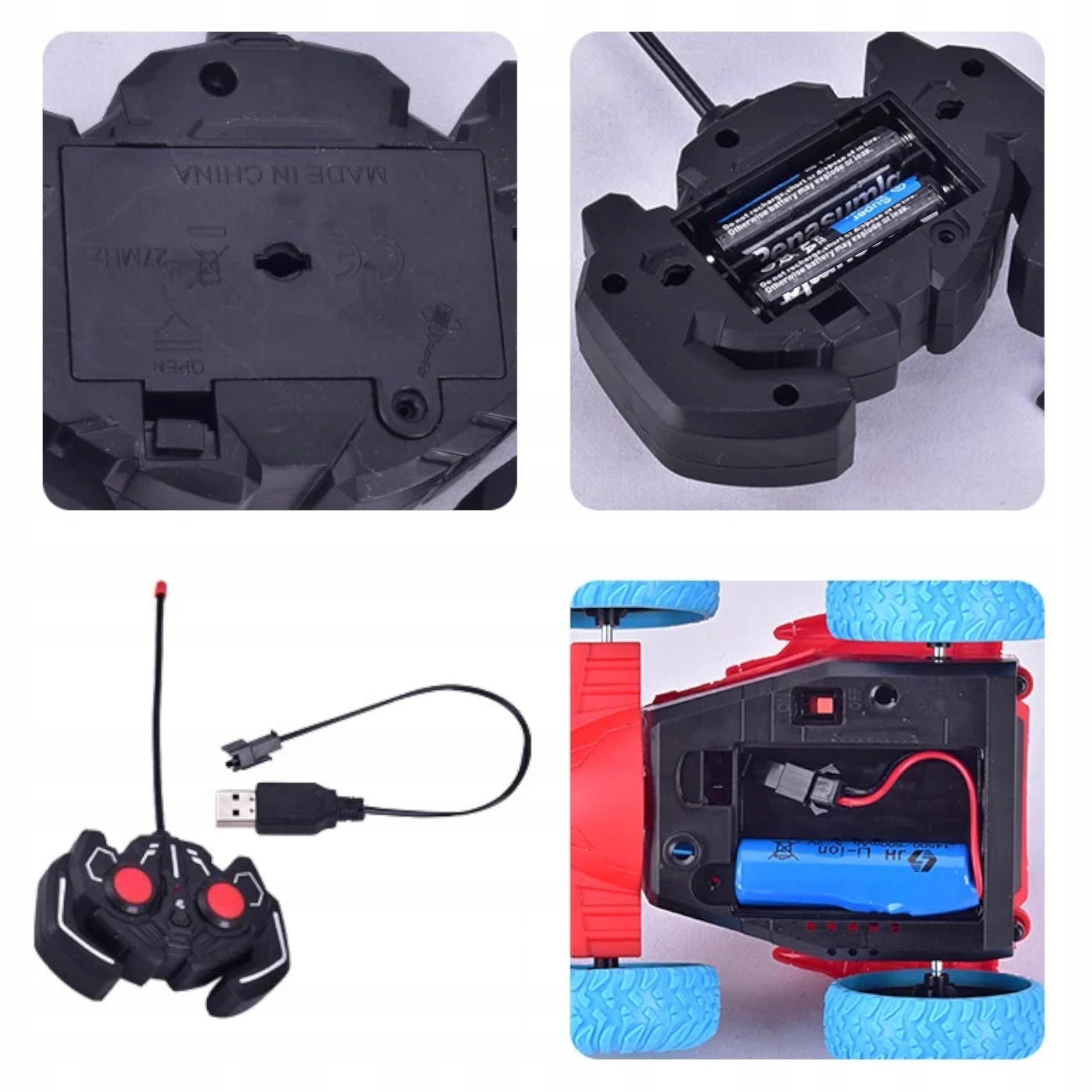 • Samochód jeździ do przodu, do tyłu, Przednie koła na osi obracają się o 360 stopni, dzięki czemu przewraca się i maa możliwość jazdy w pozycji pionowej