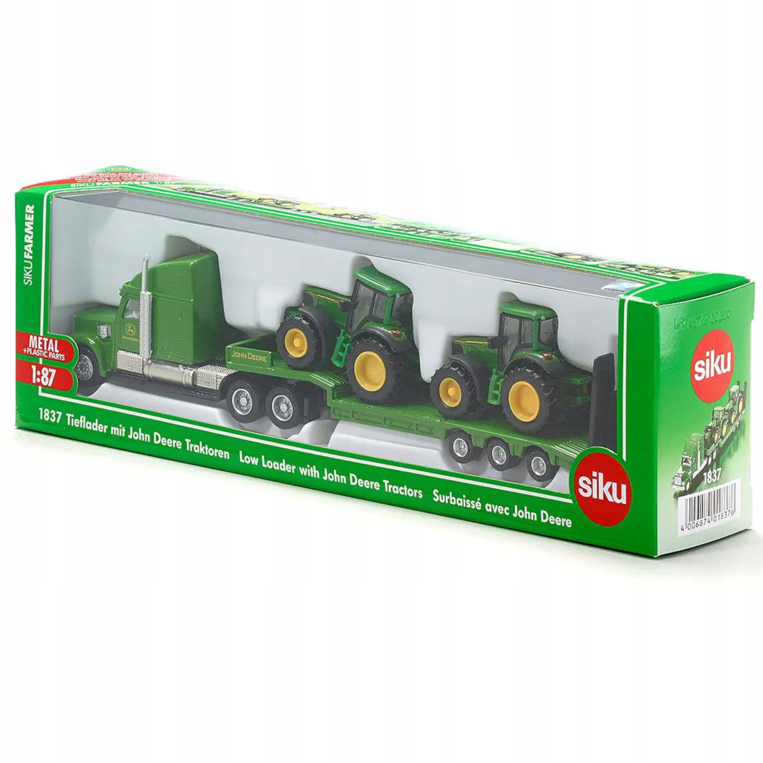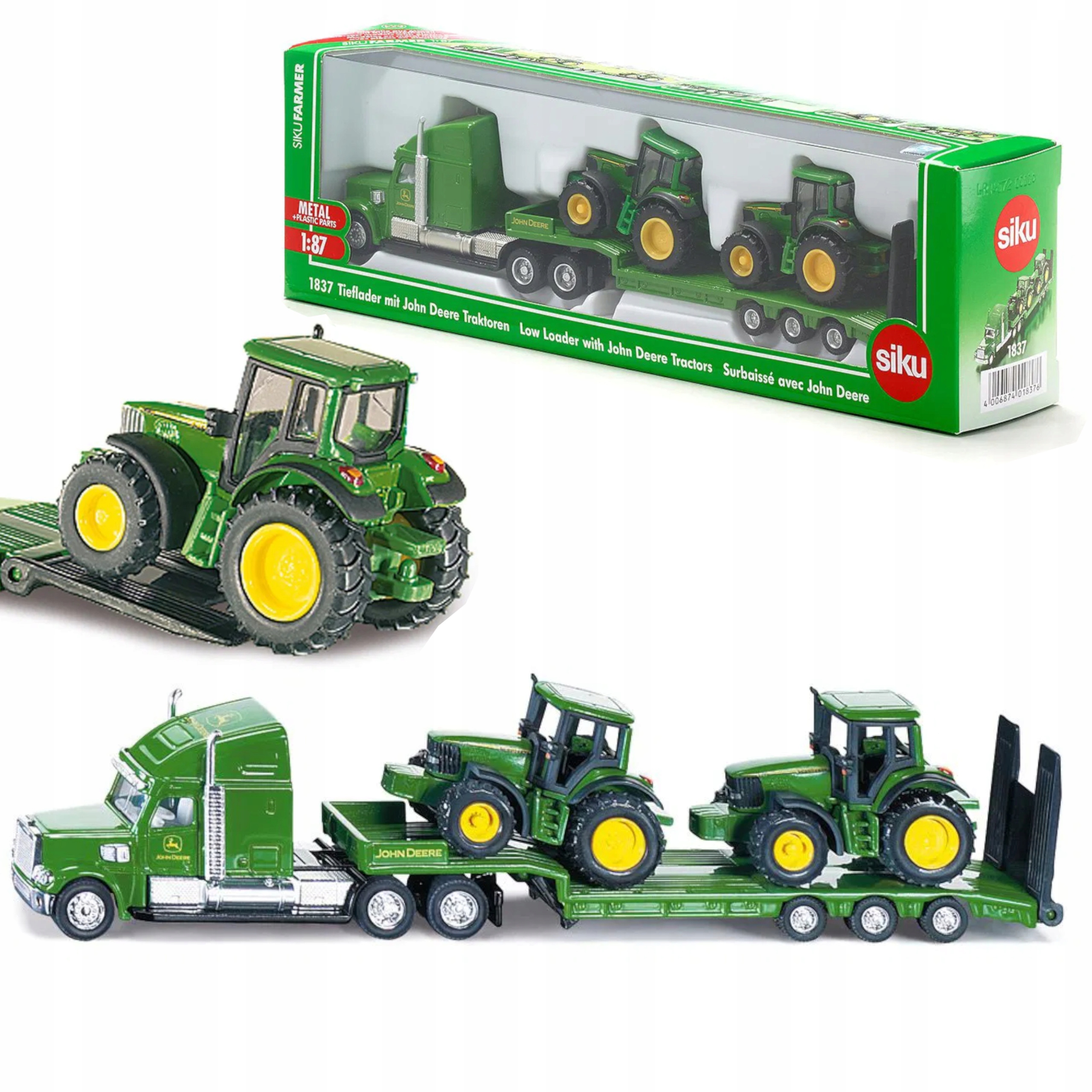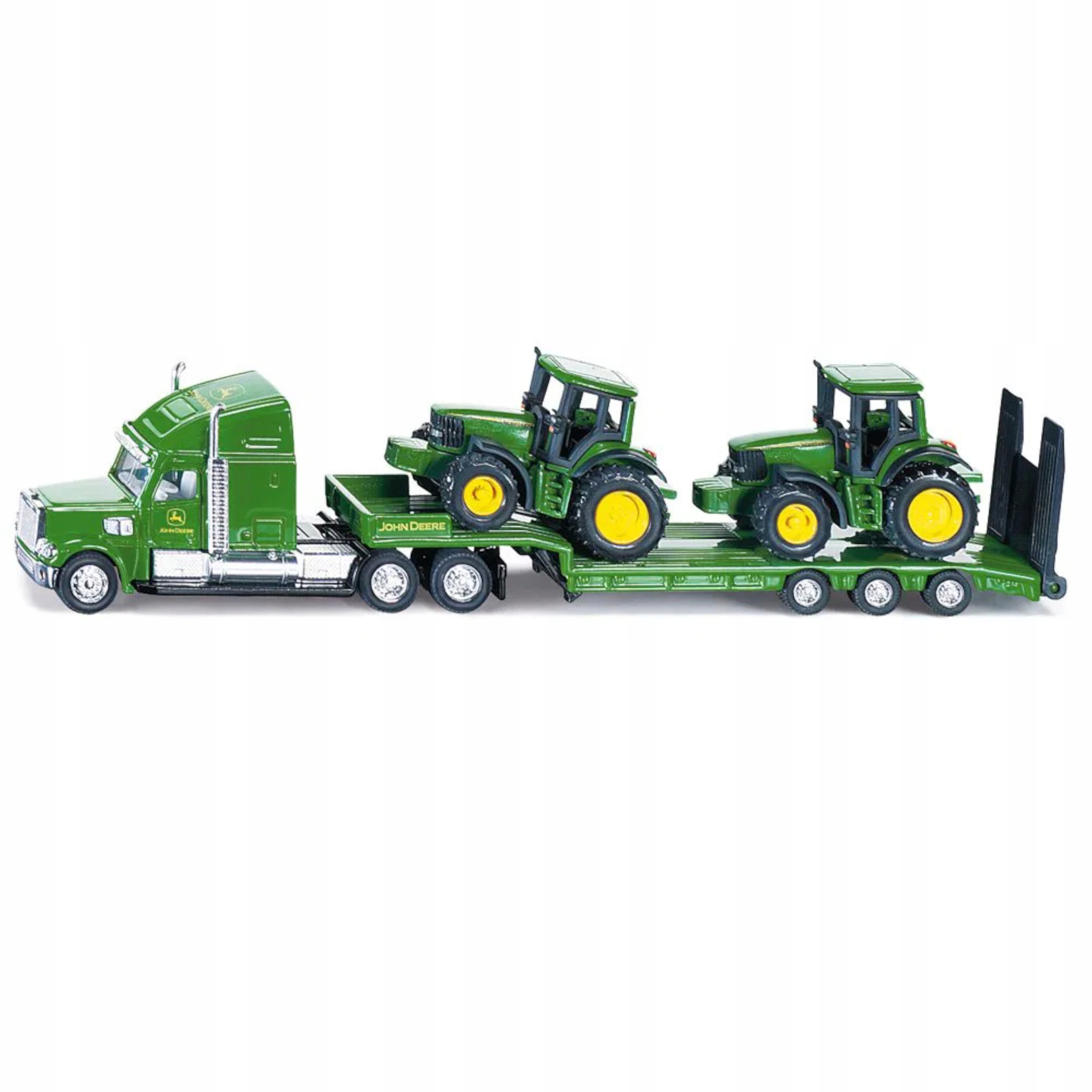 Zabawka została wykonana na wzór prawdziwej ciężarówki i wyposażona jest w odczepianą naczepę i ruchomą rampę, co pozwoli dziecku poczuć się jak rolnik. W zestawie są dodatkowo dwa traktory do przewożenia na naczepie, a dzięki ruchomej rampie mogą zjeżdżać z ciężarówki.