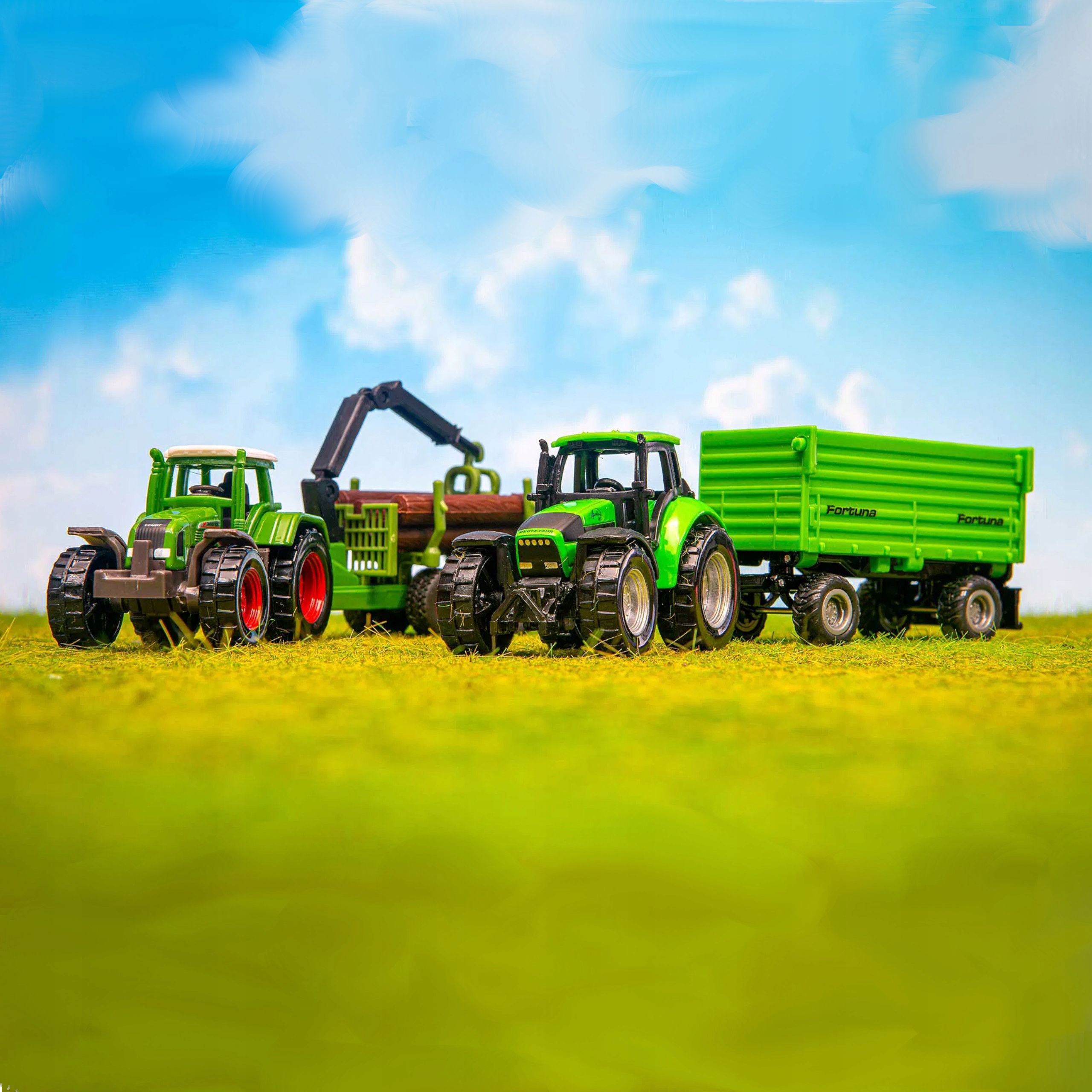 ✅Zestaw 2 traktorów: traktor z odpinaną przyczepą i traktor do przewozu ściętych drzew