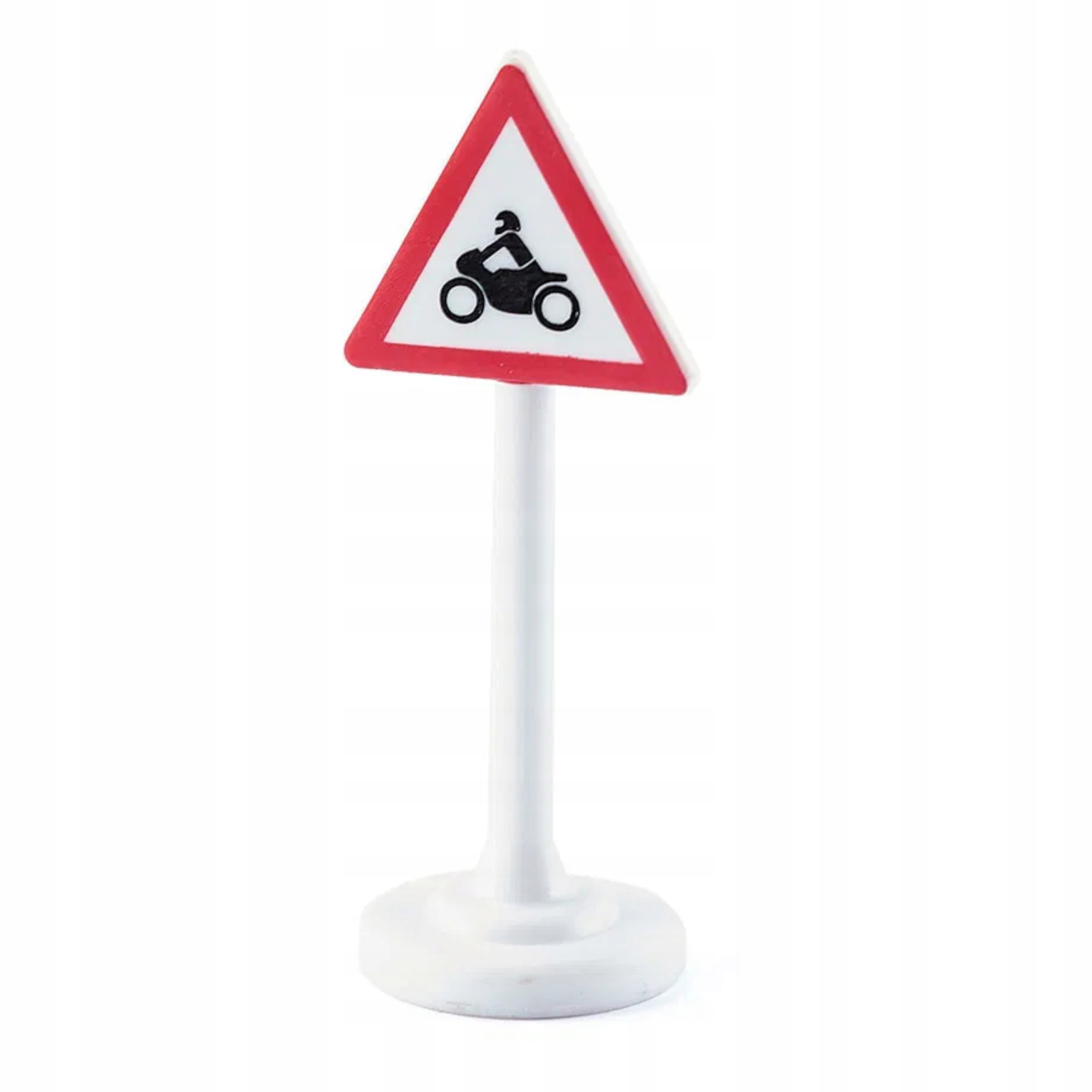 W zestawie znajduje się znak drogowy i taśma z nadrukowaną jezdnią. Taśmę można nakleić na gładkiej powierzchni i tworzyć trasy do jazdy.