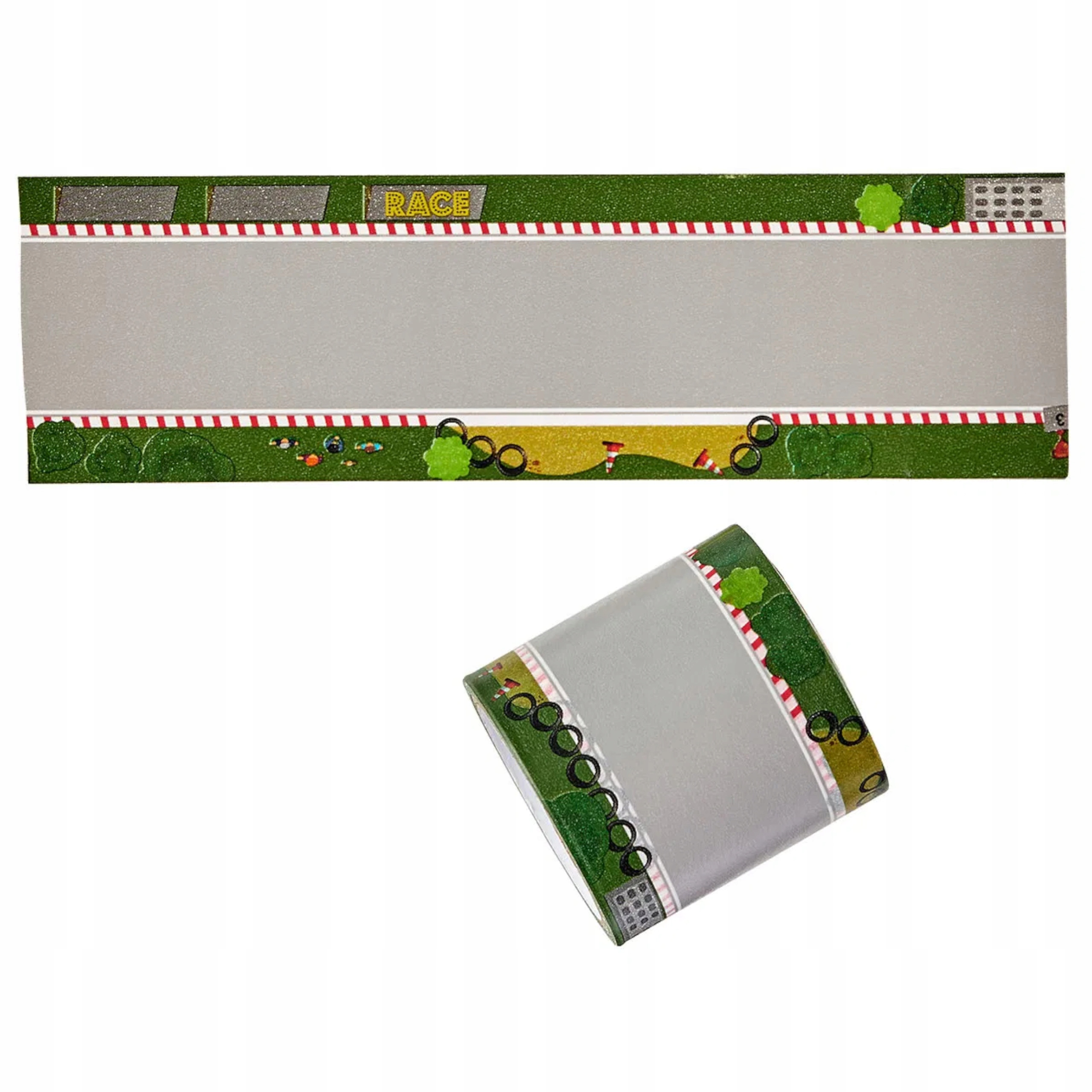 ✅ 5 metrów taśmy imitującej jezdnię, dzięki której można tworzyć własne trasy, po których można bawić się pojazdami