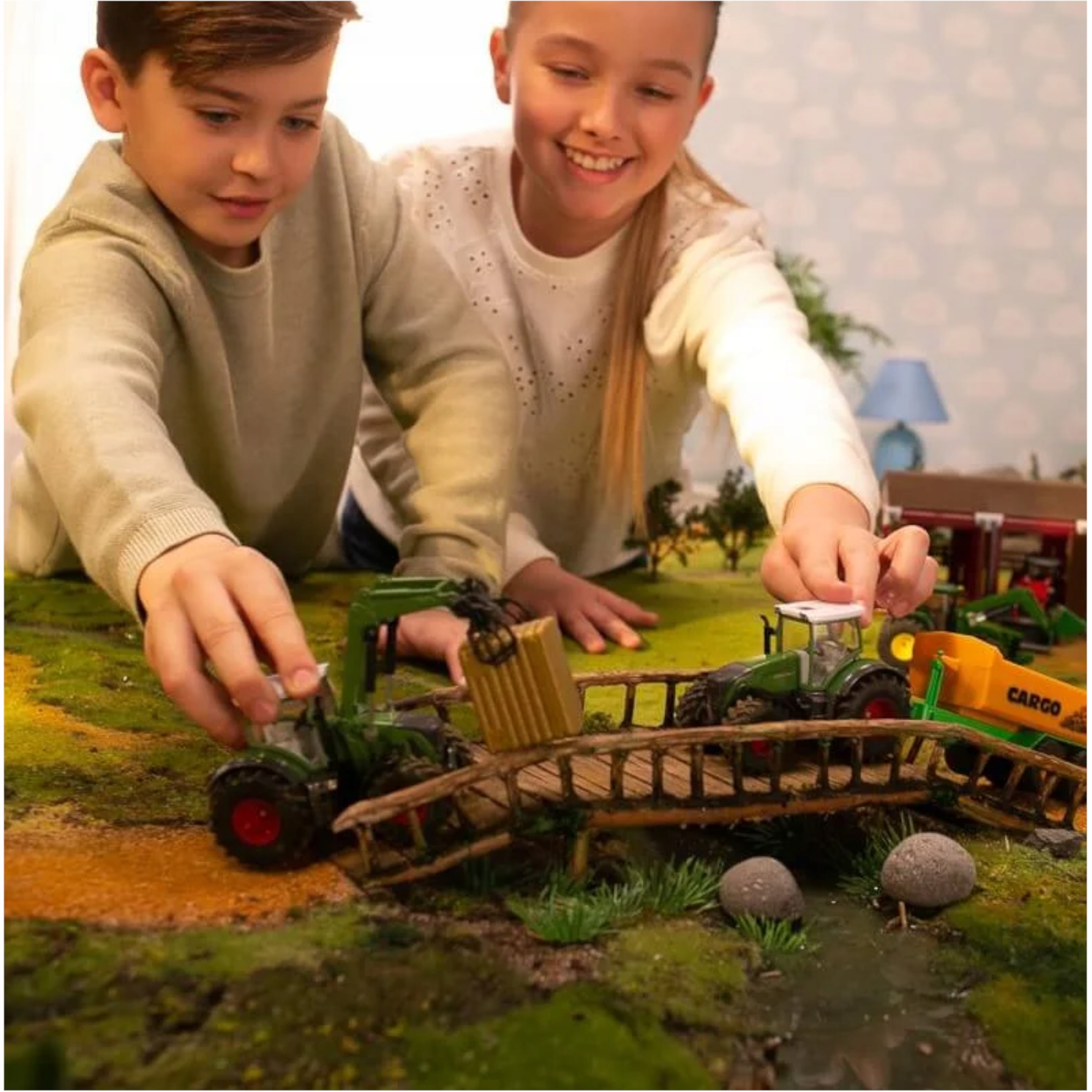 Zabawka została wykonana na wzór prawdziwego traktora i wyposażonego w przyczepę oraz zdejmowaną kabinę, co pozwoli dziecku poczuć się jak rolnik.
