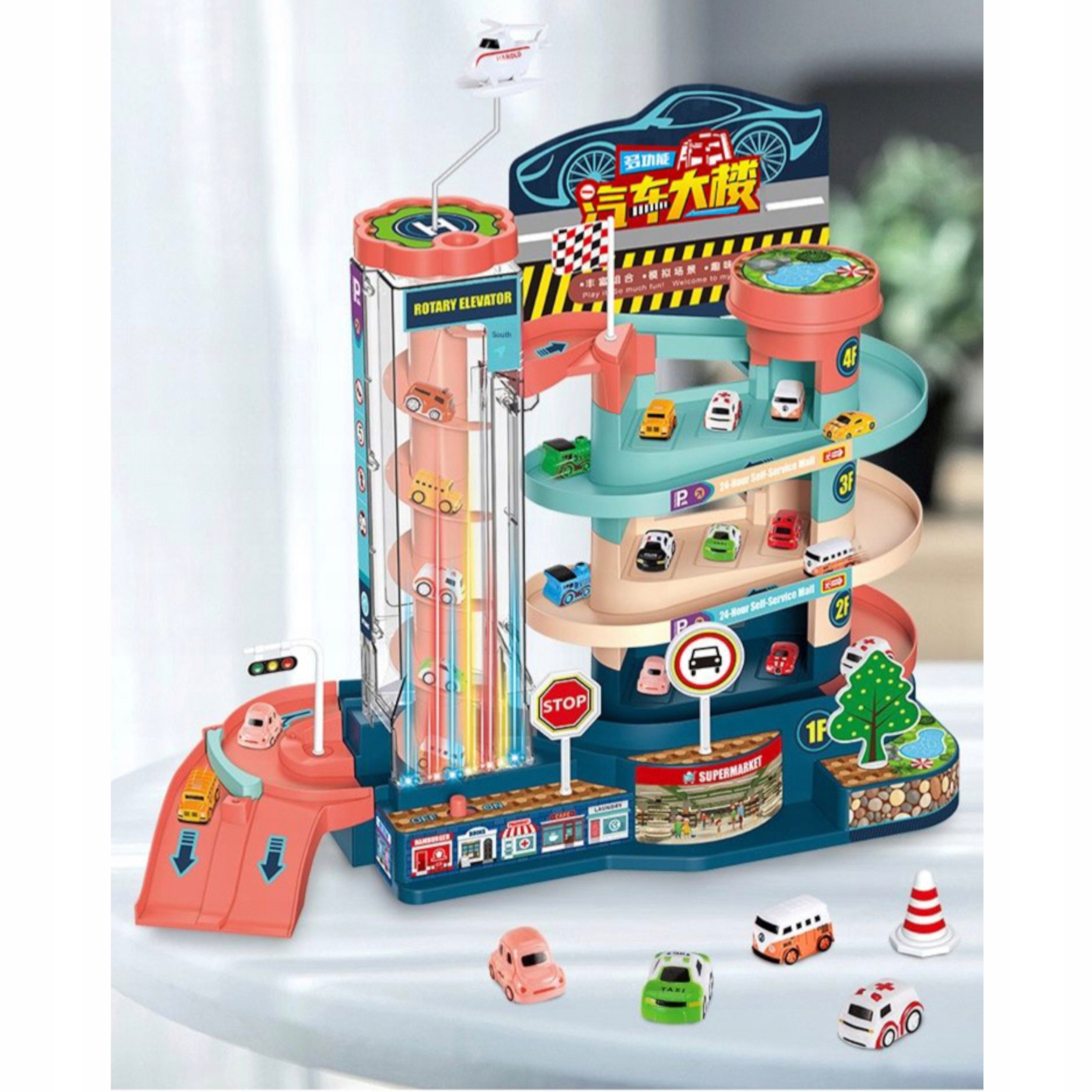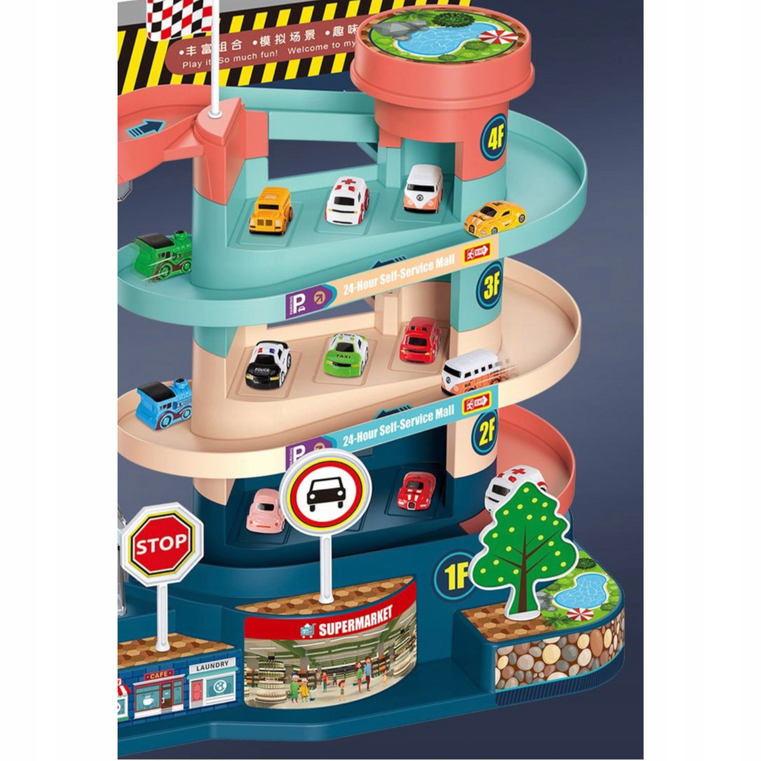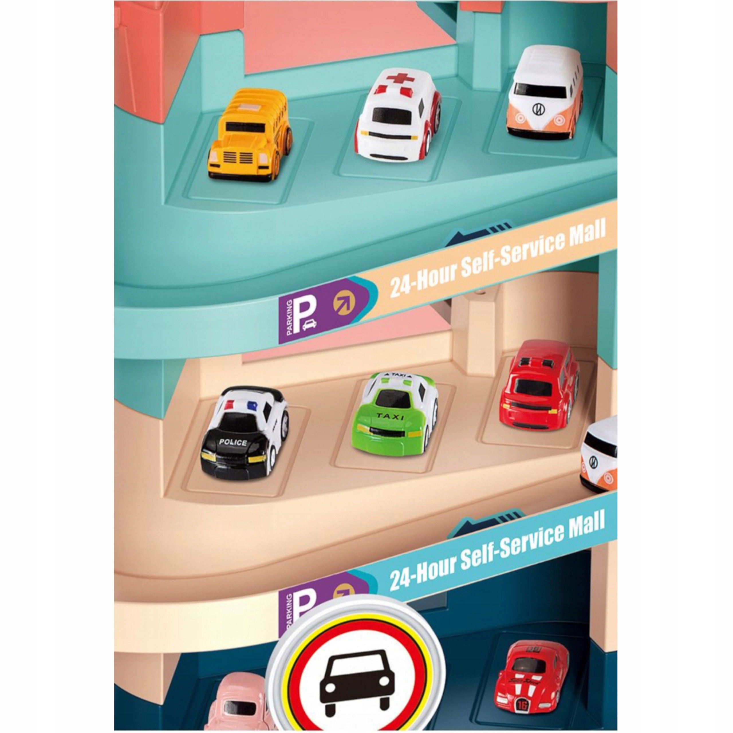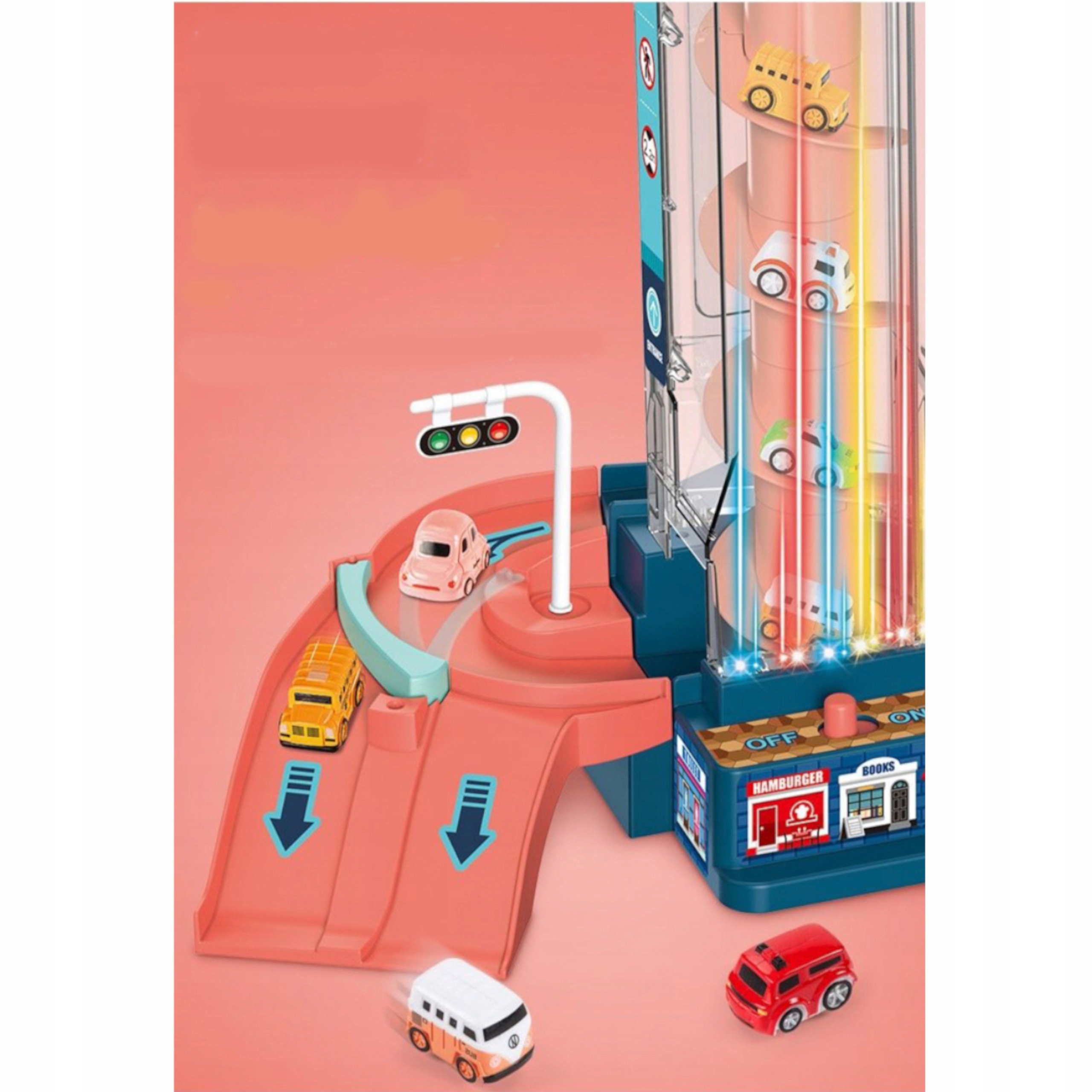 Tor przeszkód samochodowy zjeżdżalnia z autami winda parking 2004