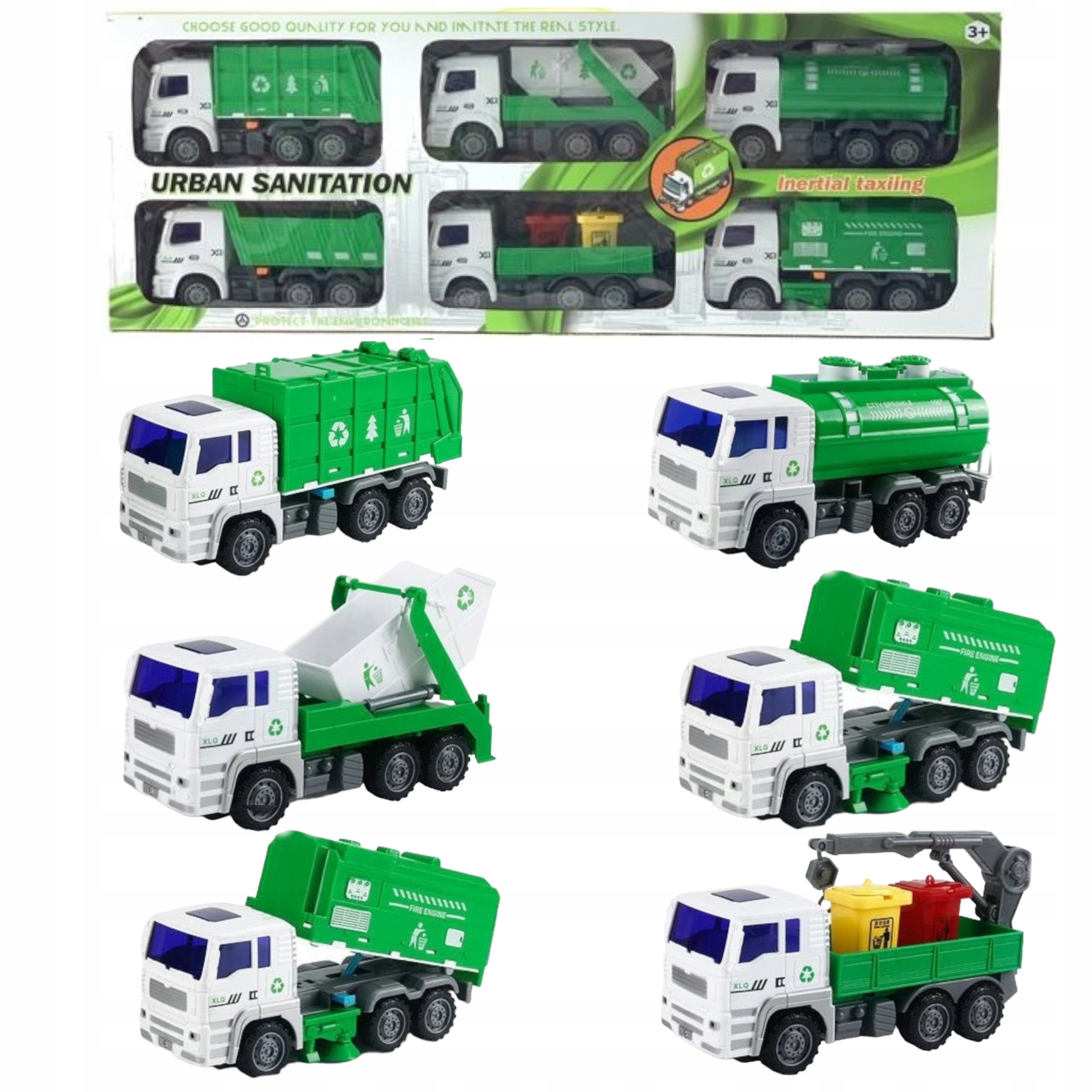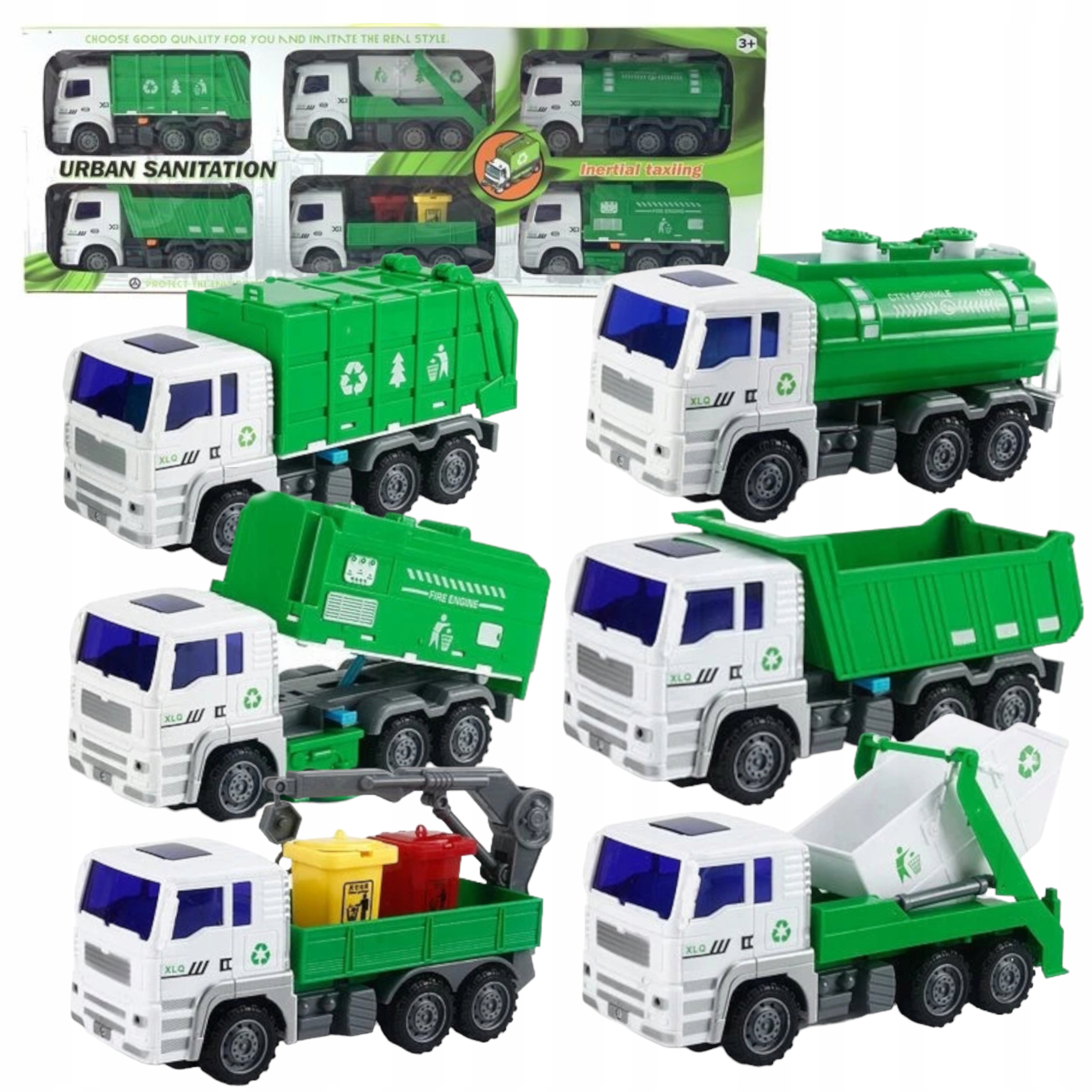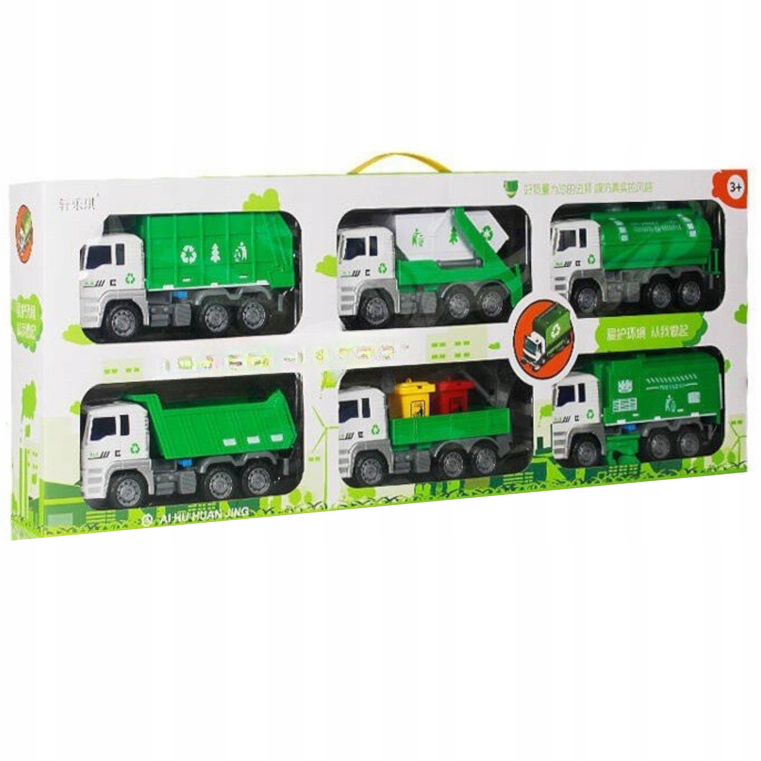 Zestaw 6 pojazdów do wywozu śmieci ruchome elementy śmieciarka 6H