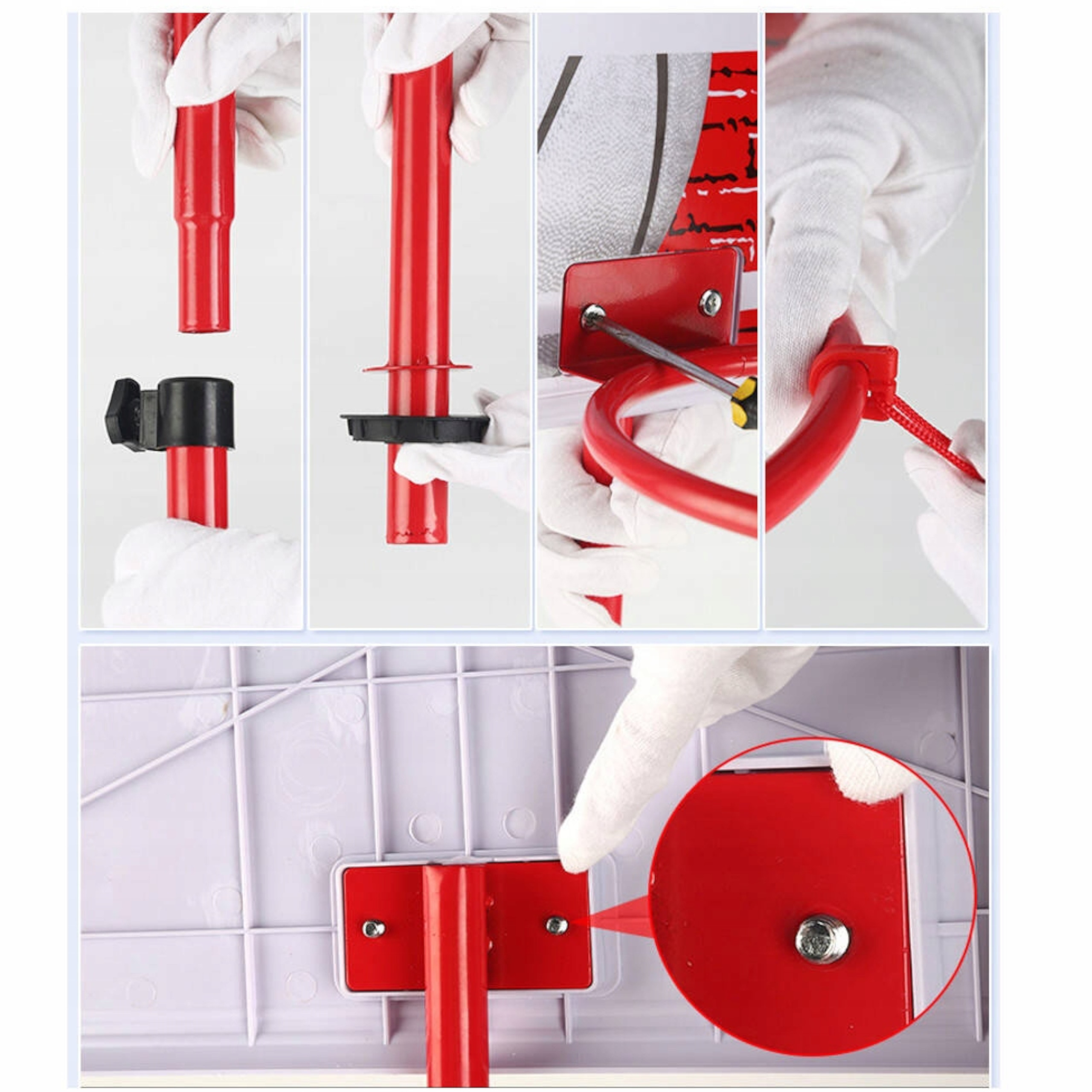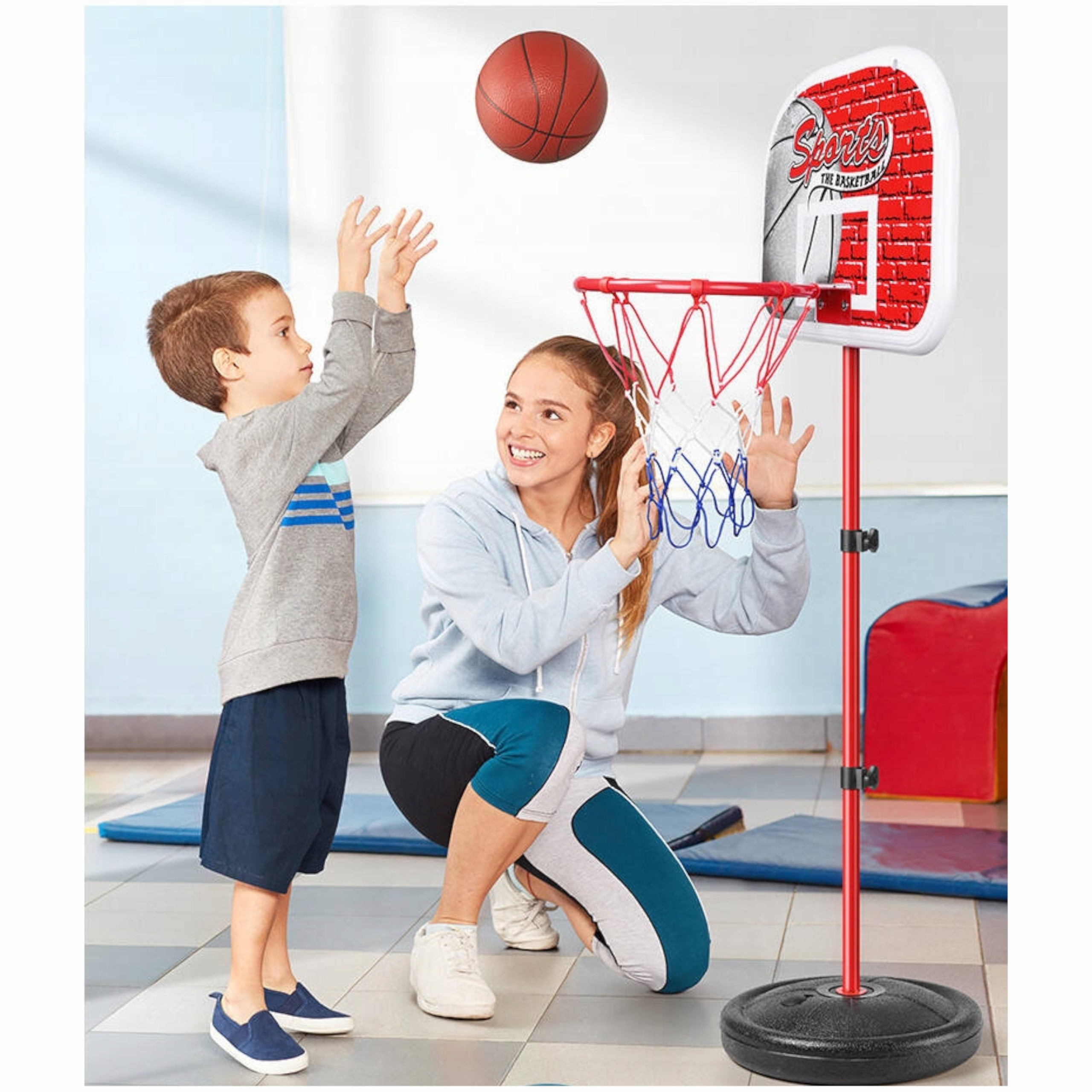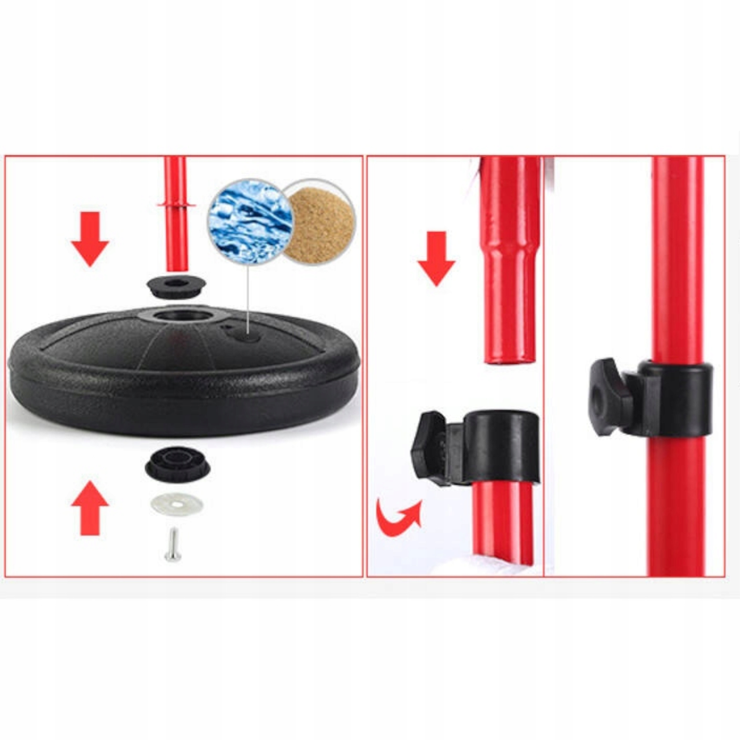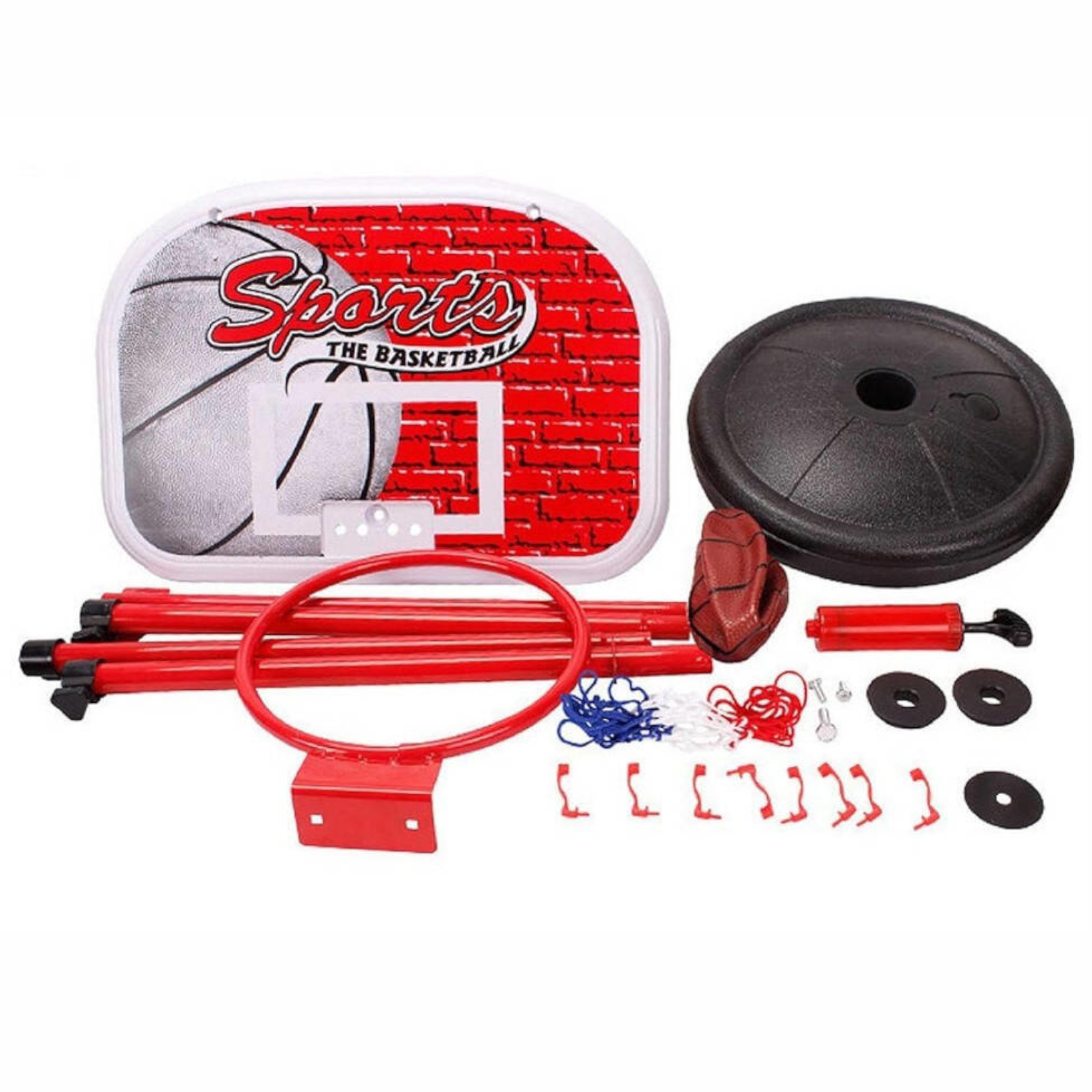 Cała konstrukcja zestawu składa się z tarczy z koszem, 4 rurek które stoją na czarnej, dużej podstawie o średnicy 26cm, do której można nalać wody lub wsypać piasku. Wysokość stojaka jest regulowana od 39 cm aż do 170 cm. Dzięki temu całość jest stabilna i dziecko może grać na podwórku, w domu lub w innym dowolnym miejscu.